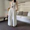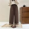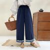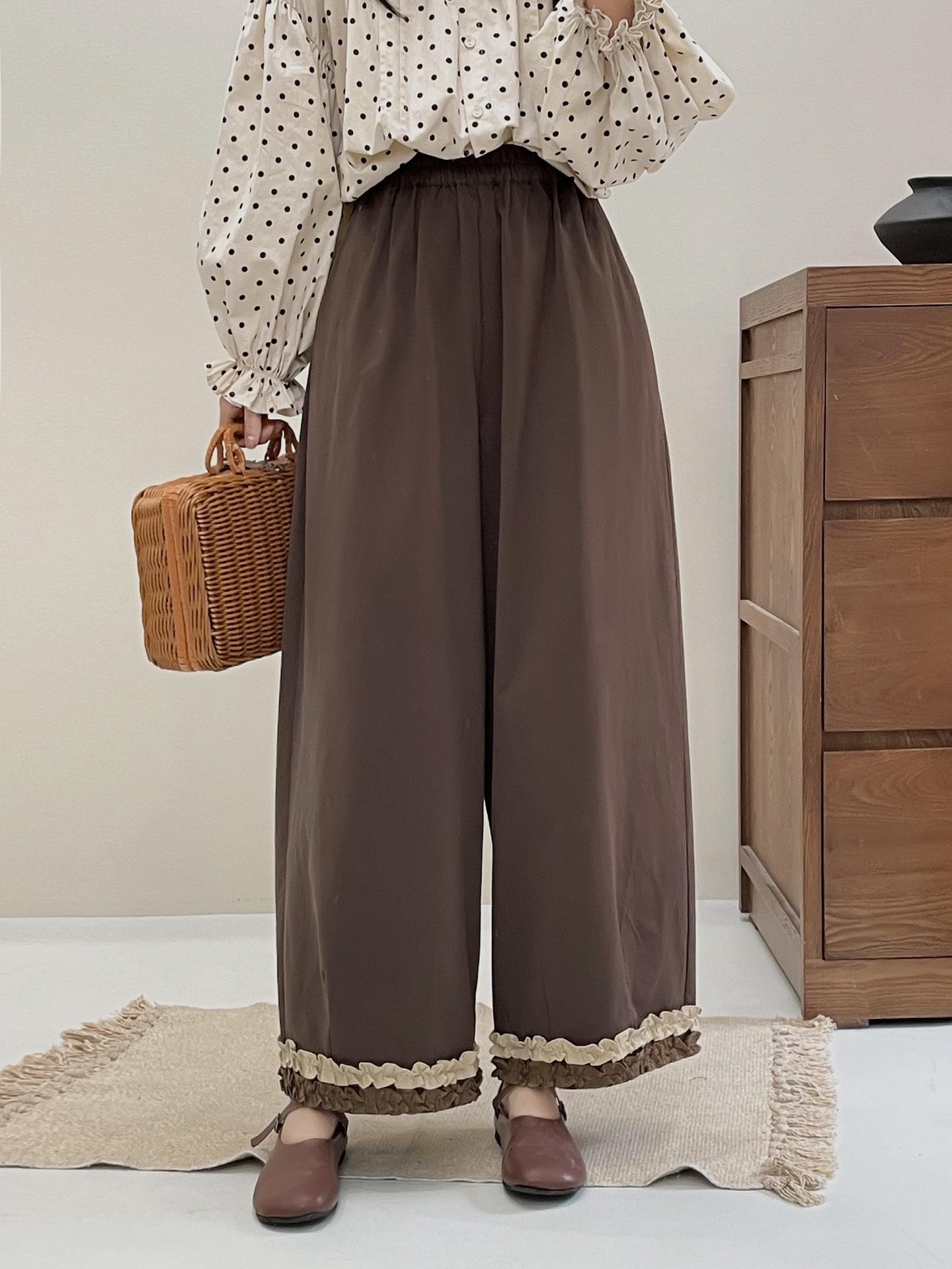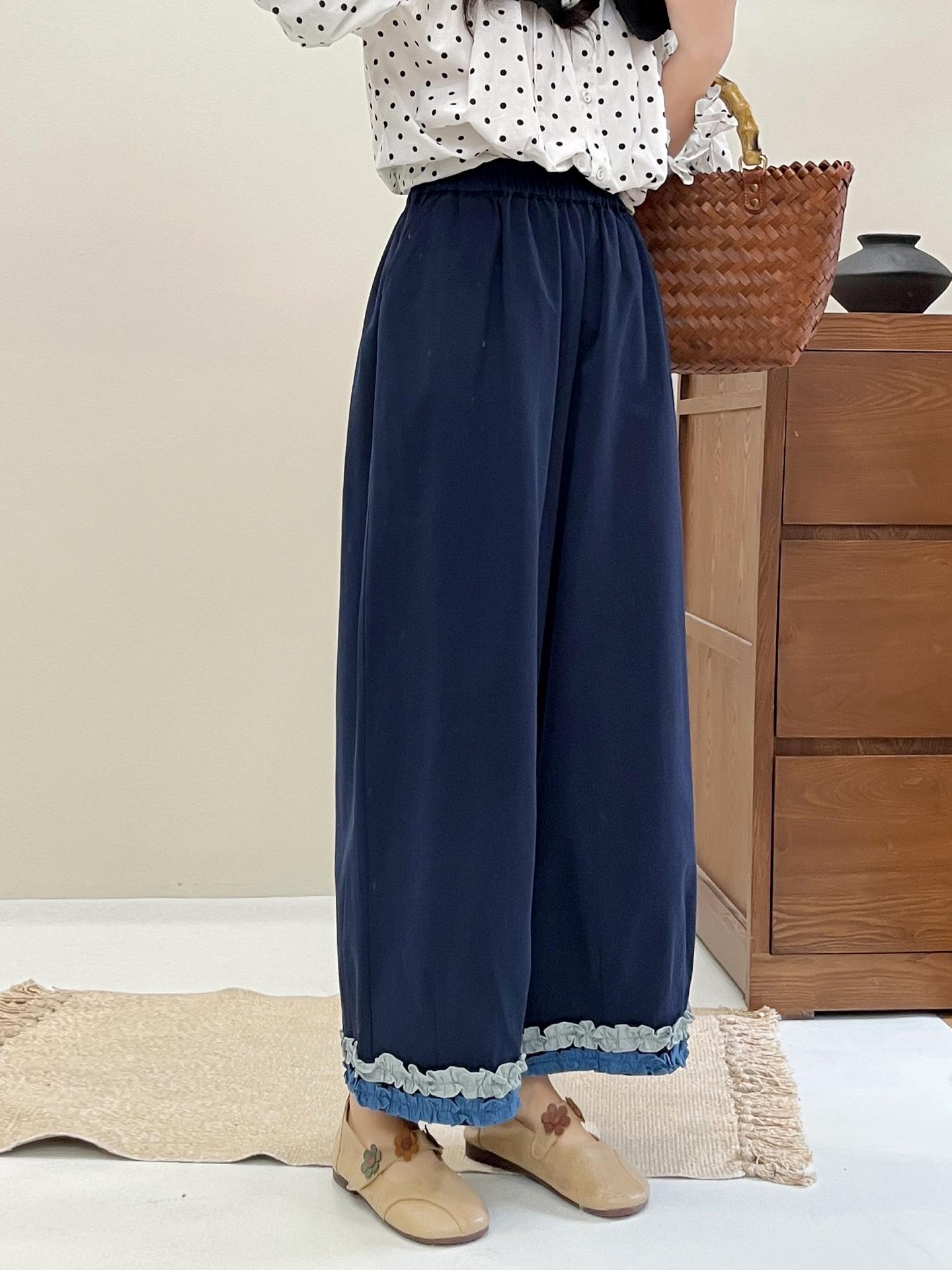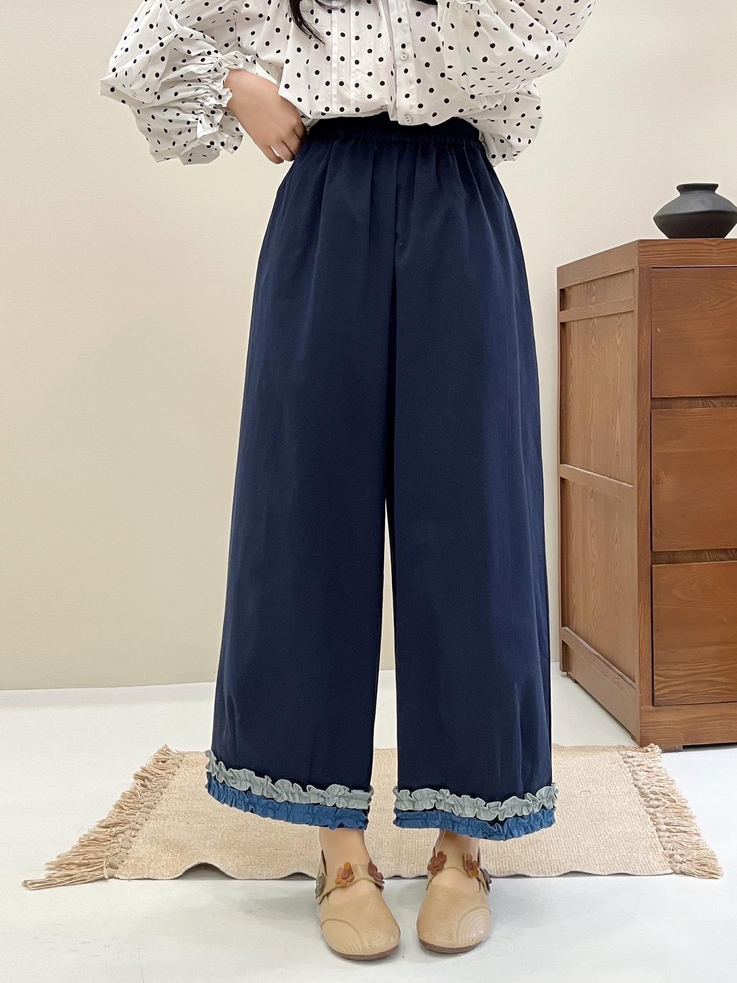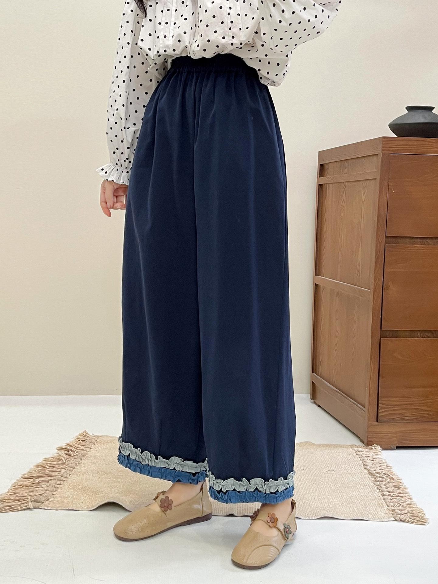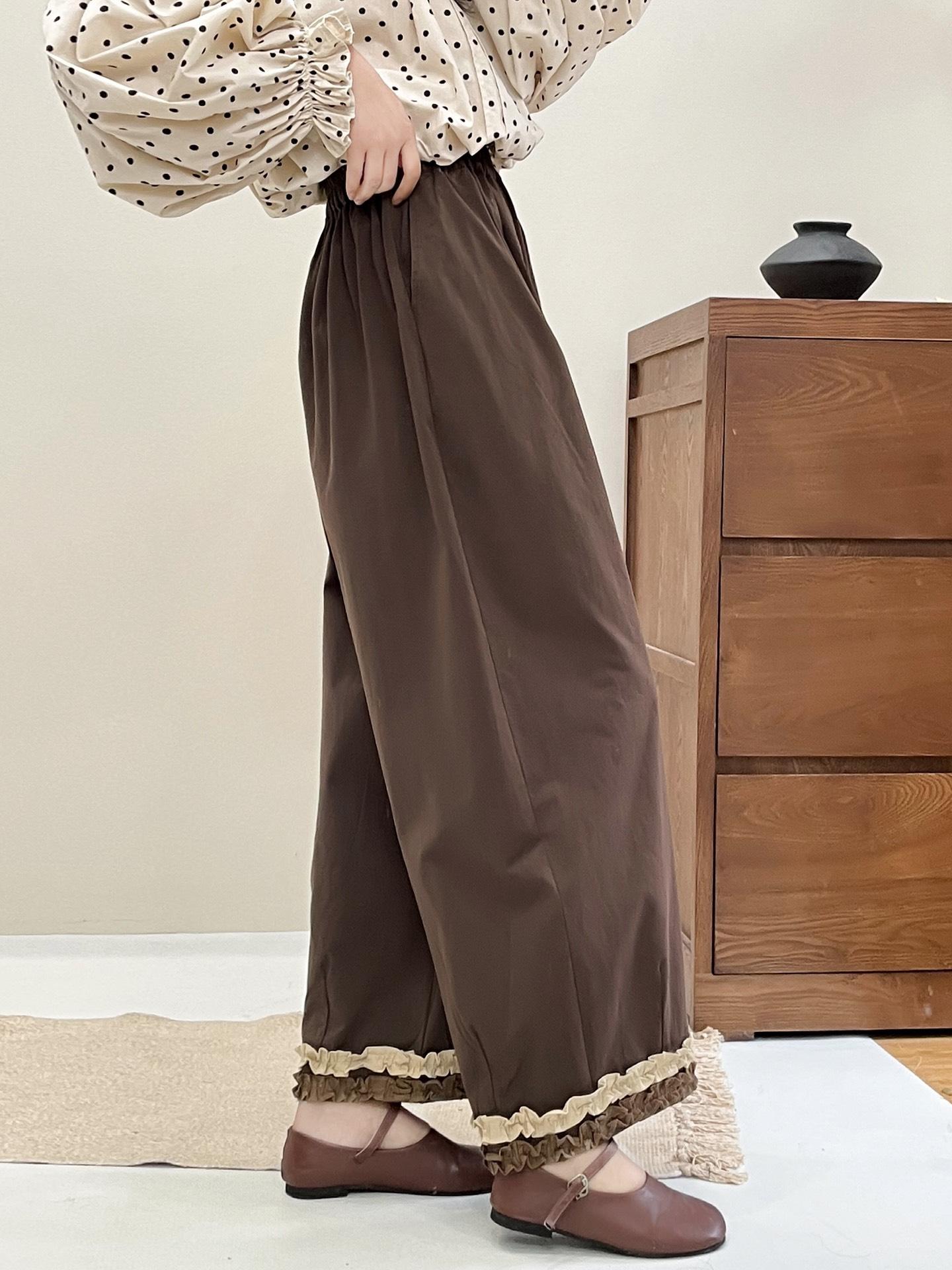 Pantalones de Moda Cortos de Pierna Ancha Estilo Bosque con Dulces Volantes y Empalmes Sueltos Versátiles Casuales de Algodón Rectos de Cintura Alta para Mujer