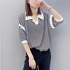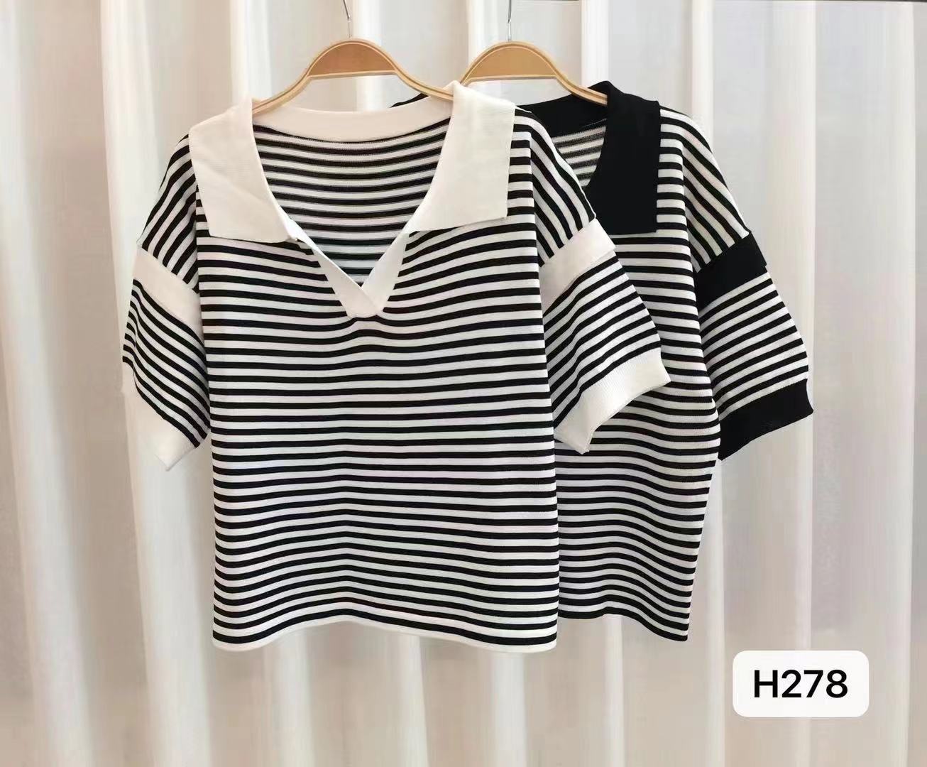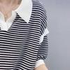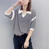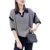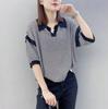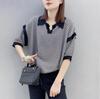 Moda Europea y Coreana Elegante Verano Nuevo Top Holgado Rayas Finas Cuello Polo Estilo Lazy Tejido Mangas Cortas para Mujer