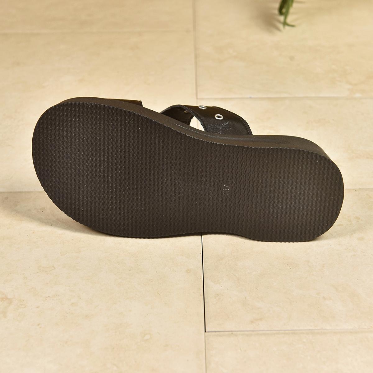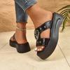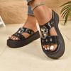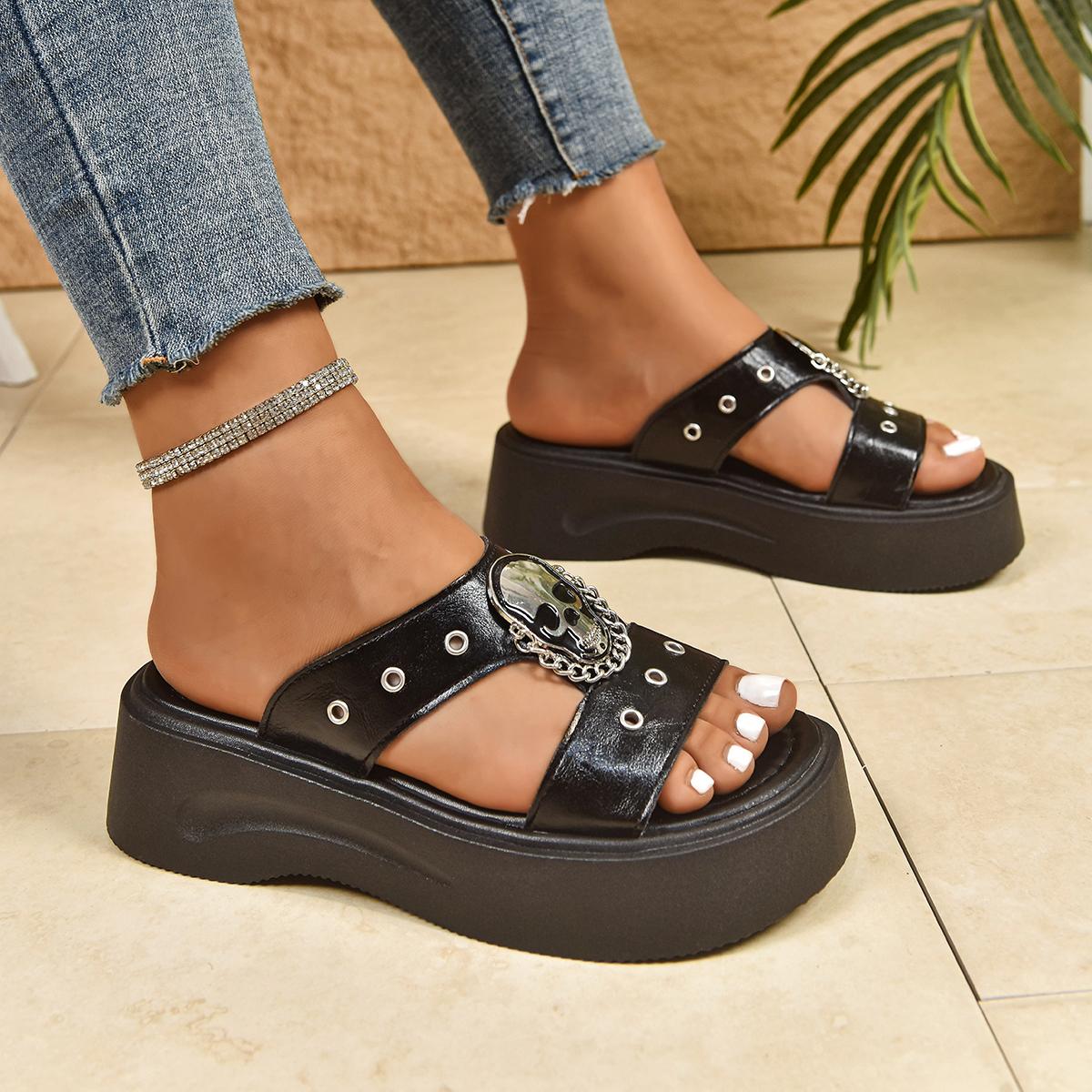 Sandalias de plataforma para mujer, decoración de calavera Sandalias de plataforma negras
