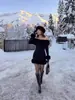 Europeo y Americano nuevo temperamento alto felpa manga larga hombros descubiertos otoño e invierno sin espalda Sexy Slim color sólido chica caliente falda de cadera
