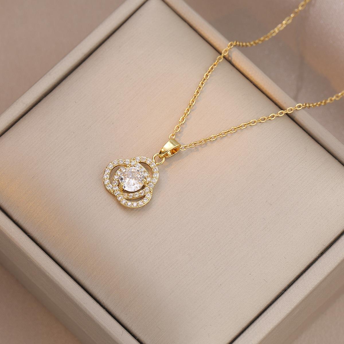 Collar para Mujer Transfronterizo Nueva Moda Diamante Incrustado Redondo Acero de Titanio Collar Personalidad Nicho Tendencia Estilo Europeo y Americano Versátil Clavícula