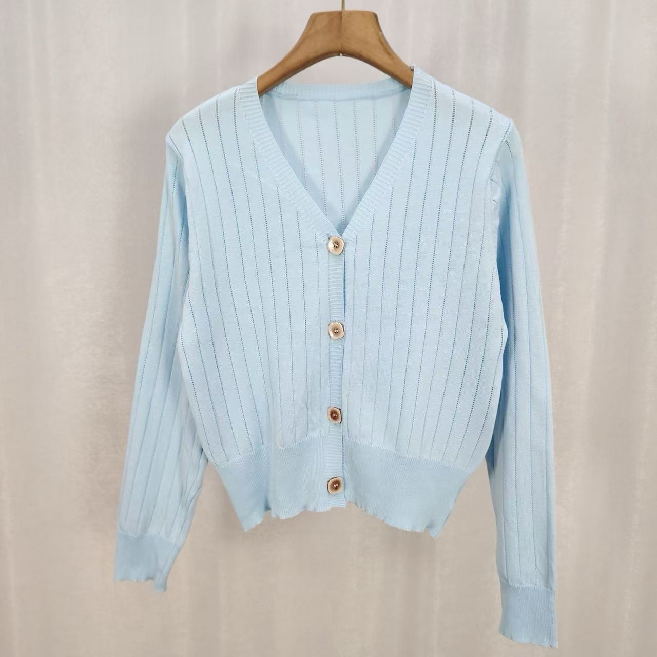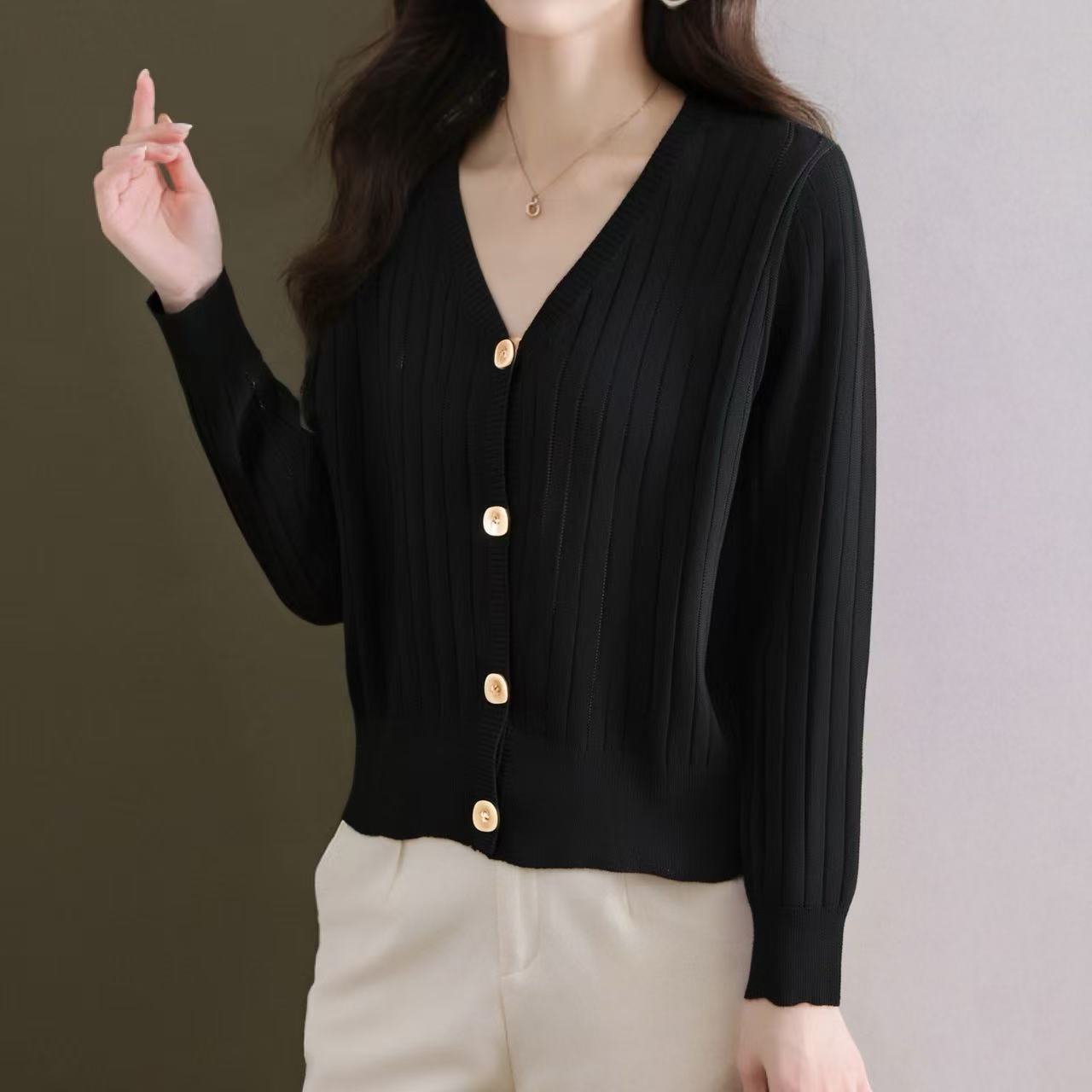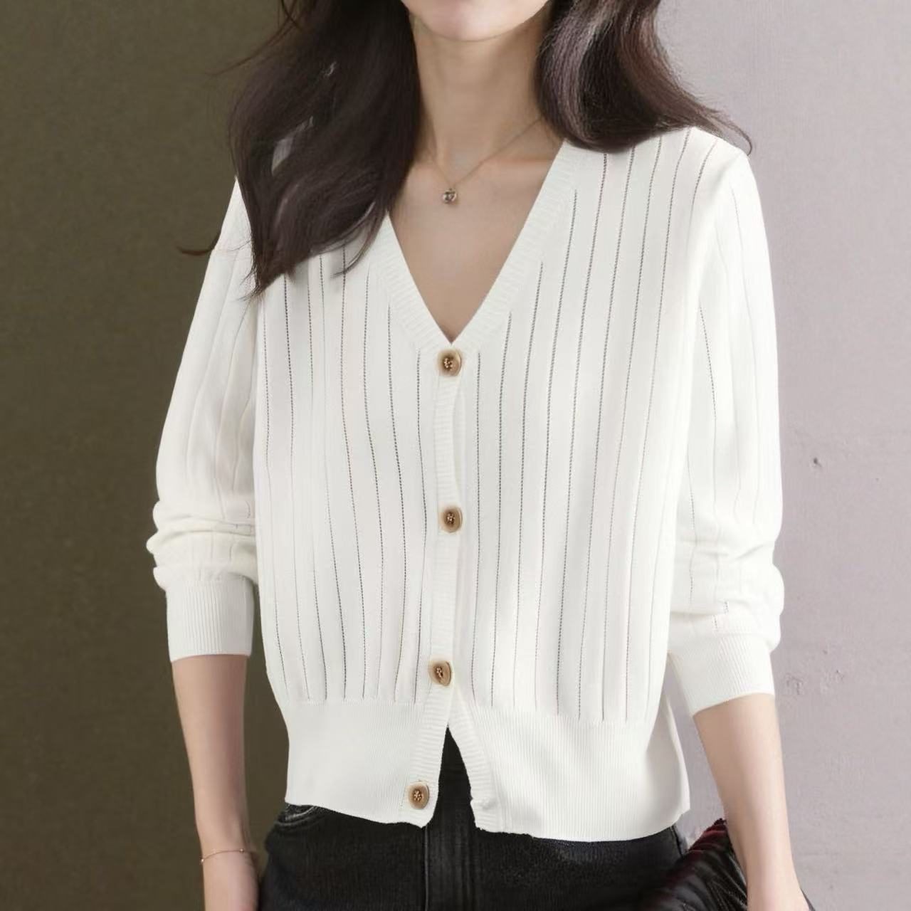 Otoño 2026 Nuevo Diseño Coreano Cuello en V Versátil Adelgazante Manga Larga Tejido Cárdigan Corto Abrigo Top de Mujer
