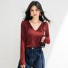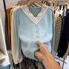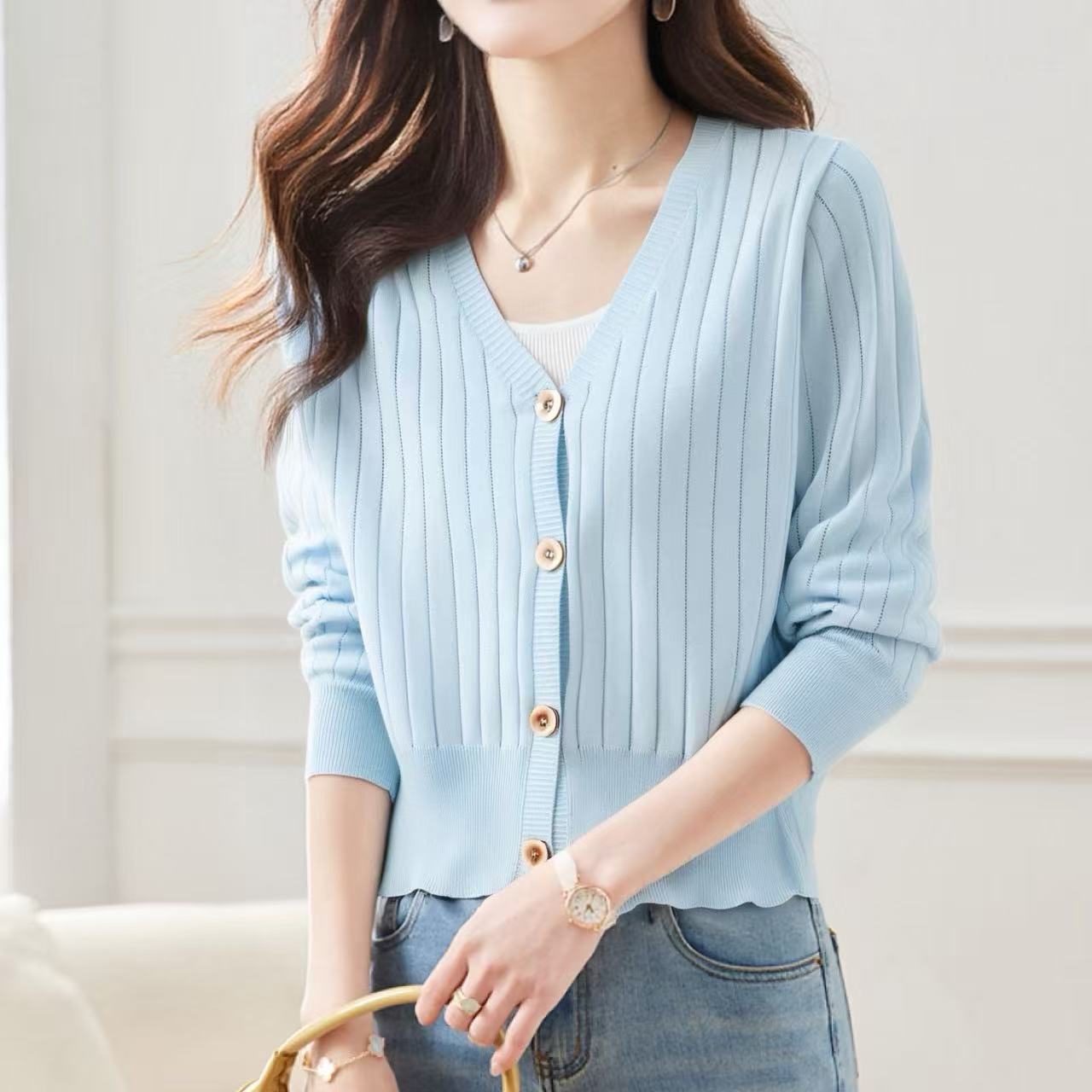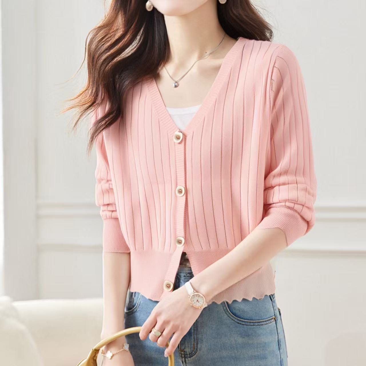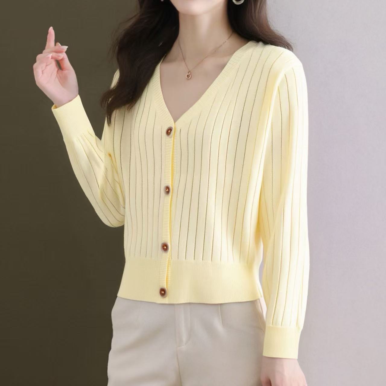 Otoño 2026 Nuevo Diseño Coreano Cuello en V Versátil Adelgazante Manga Larga Tejido Cárdigan Corto Abrigo Top de Mujer