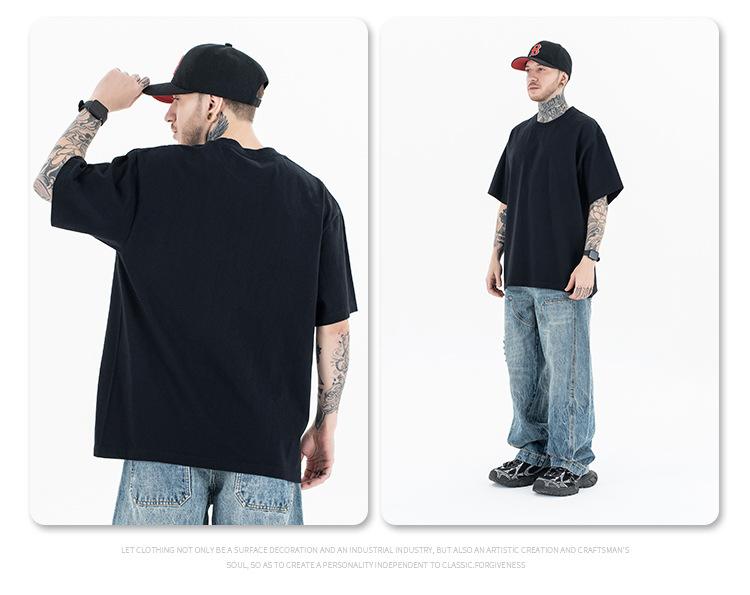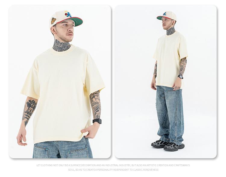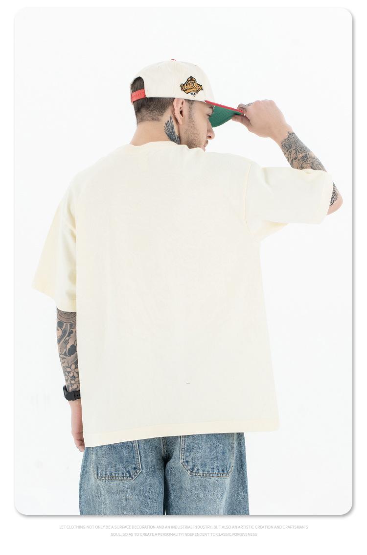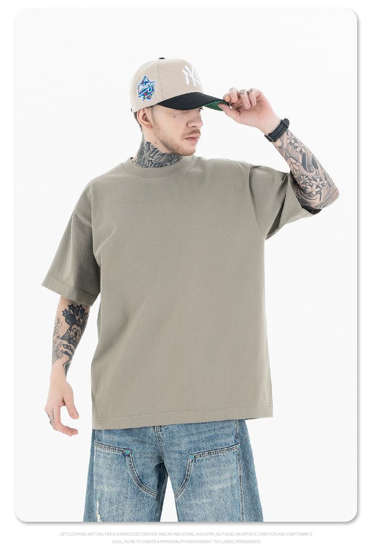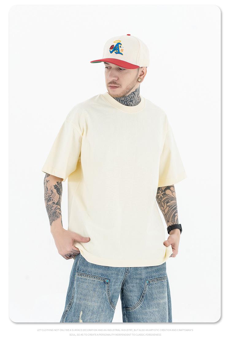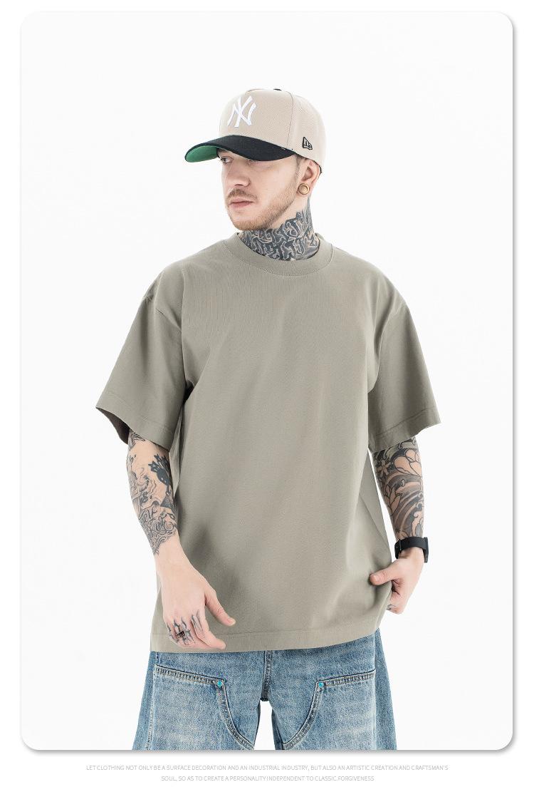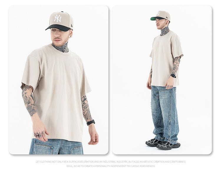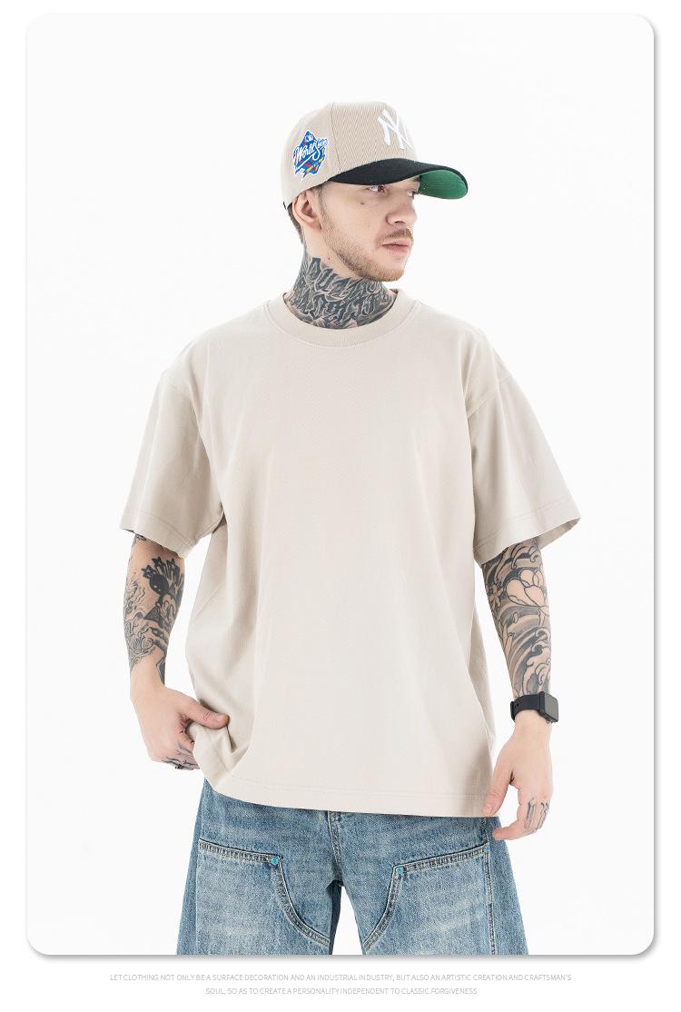 Lanhai Camiseta Deportiva de Algodón Pesado de 260 g para Hombre Primavera/Verano 2025 Marca de Moda Americana Transpirable Manga Corta
