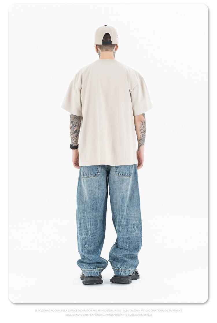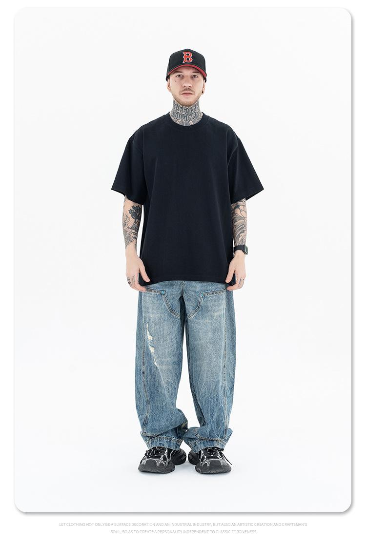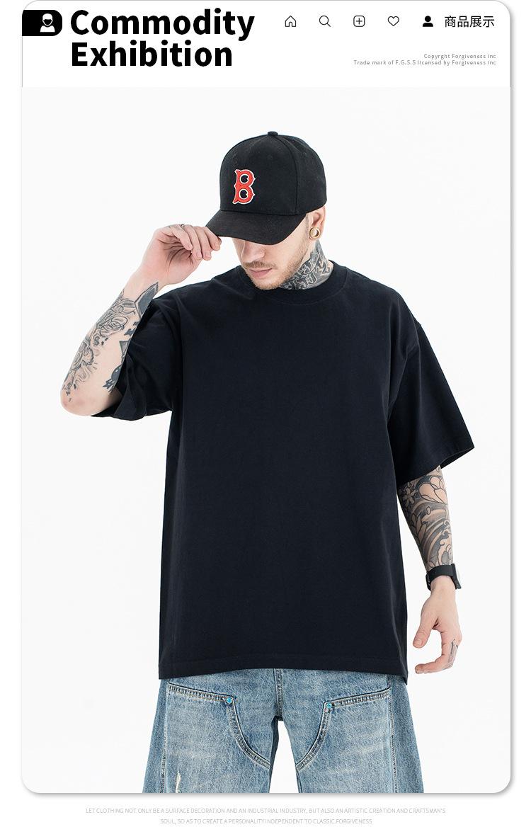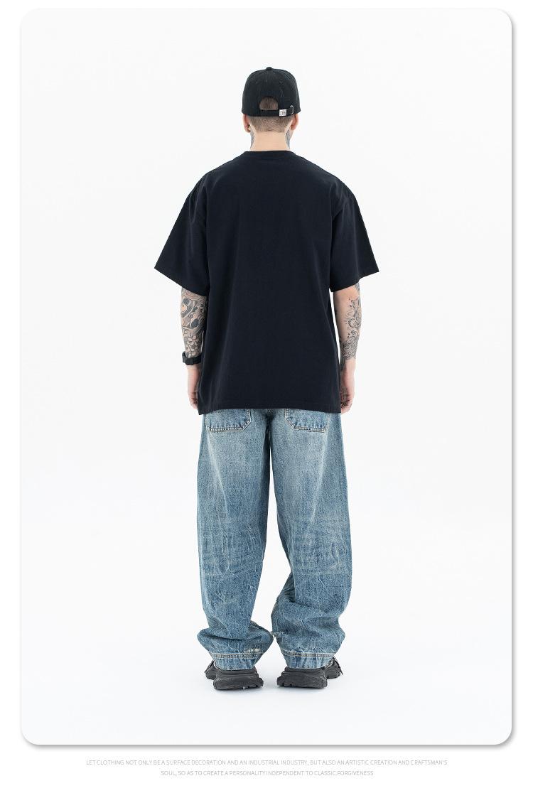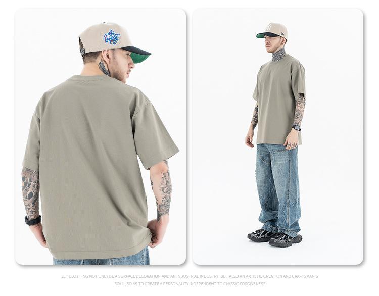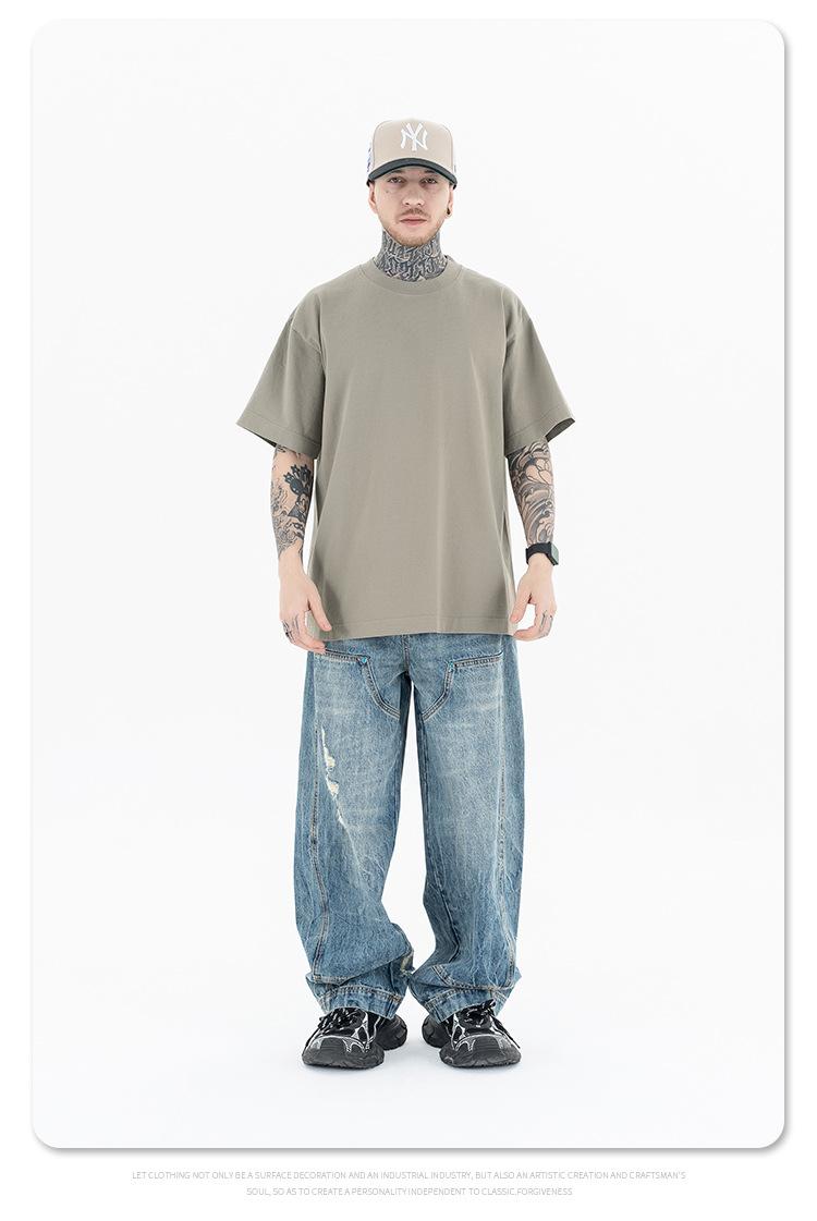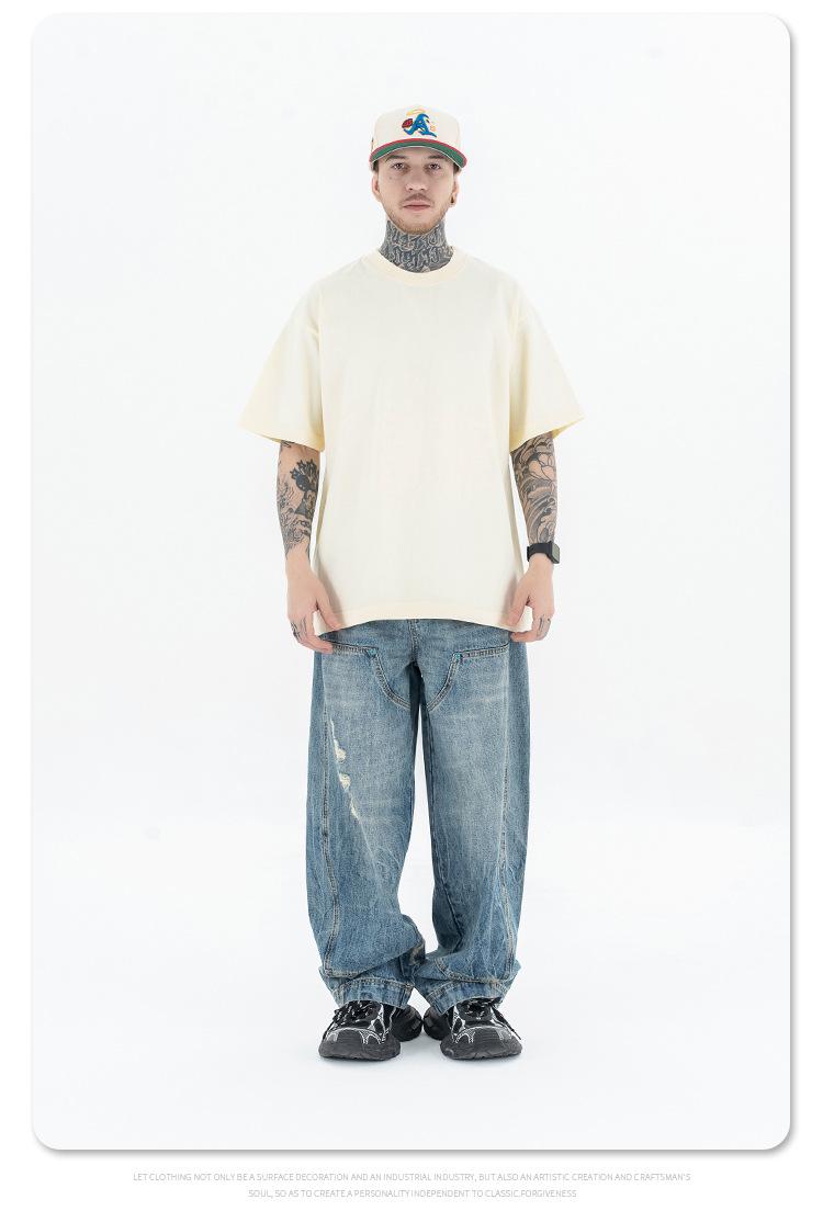 Lanhai Camiseta Deportiva de Algodón Pesado de 260 g para Hombre Primavera/Verano 2025 Marca de Moda Americana Transpirable Manga Corta
