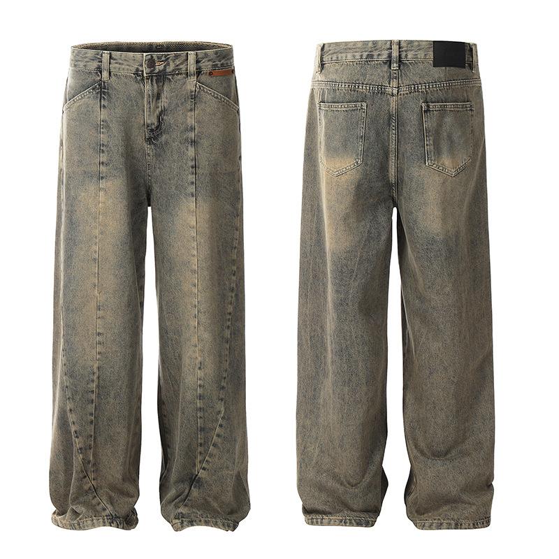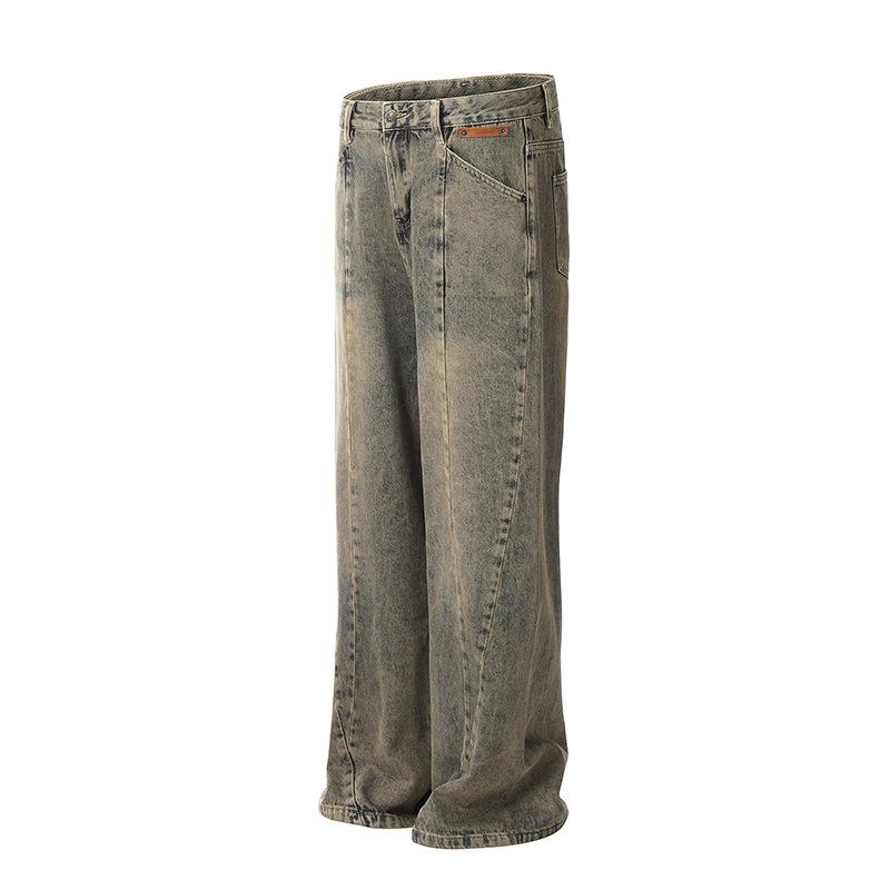 Jeans Rectos Retro de Estilo Americano con Costuras Antiguas para Hombre y Mujer, Diseño Moderno, Nicho, Pierna Ancha, Pantalones Holgados