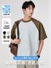[Amoníaco líquido antibacteriano T] camiseta de algodón mercerizado de manga raglán de manga corta de alta gama americana de color contrastante cuello redondo top holgado de verano