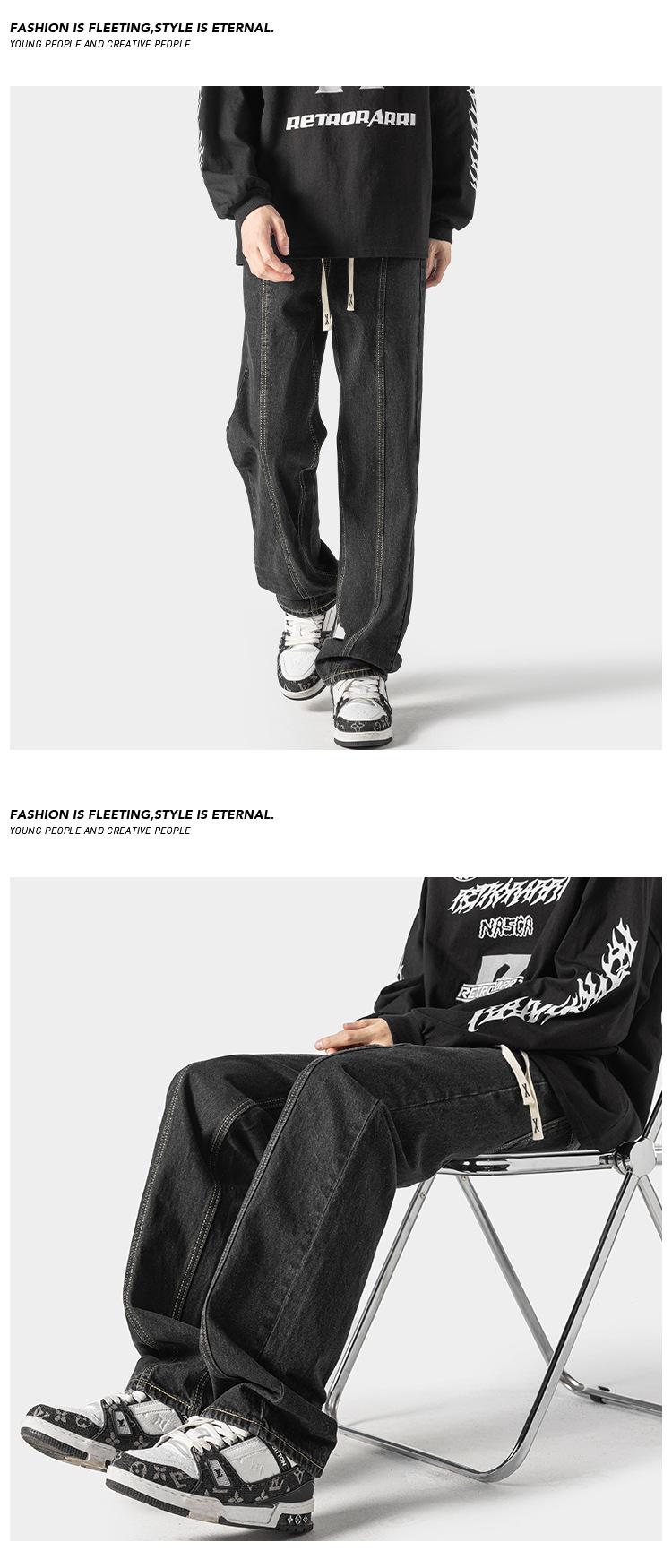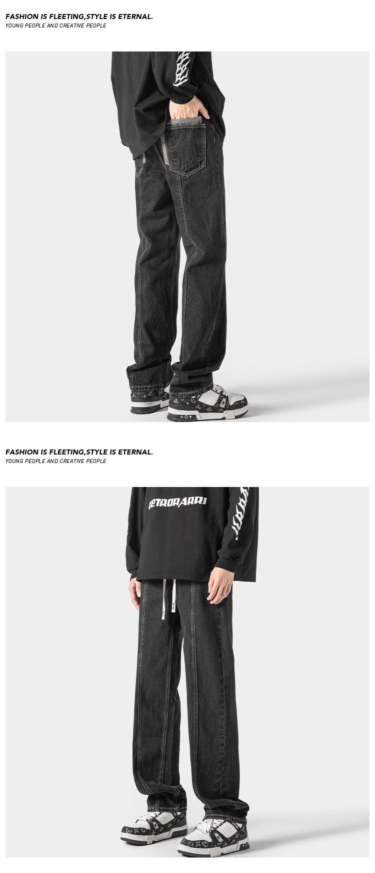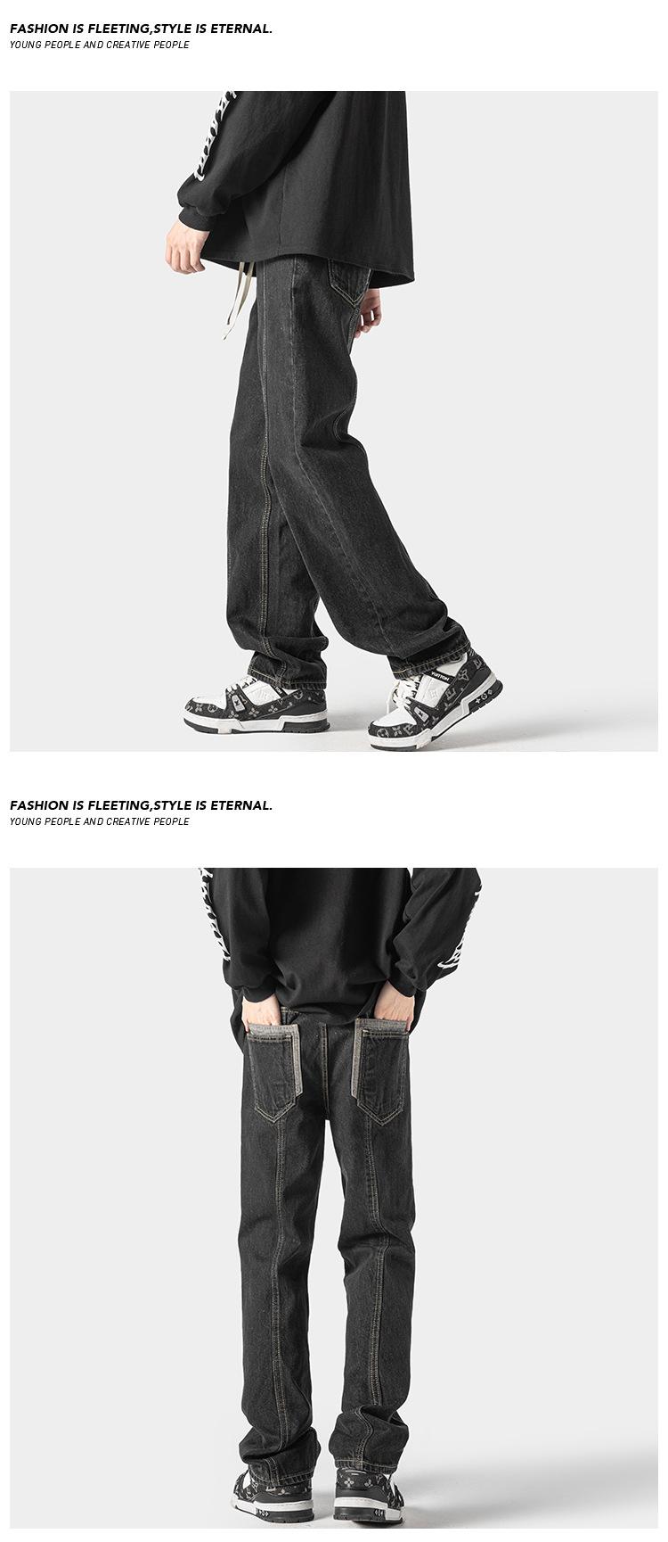 Jeans retro americanos para hombre, diseño de bolsillo trasero, pantalones rectos holgados, casuales, sencillos, negros, ajustados, largos
