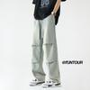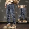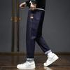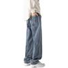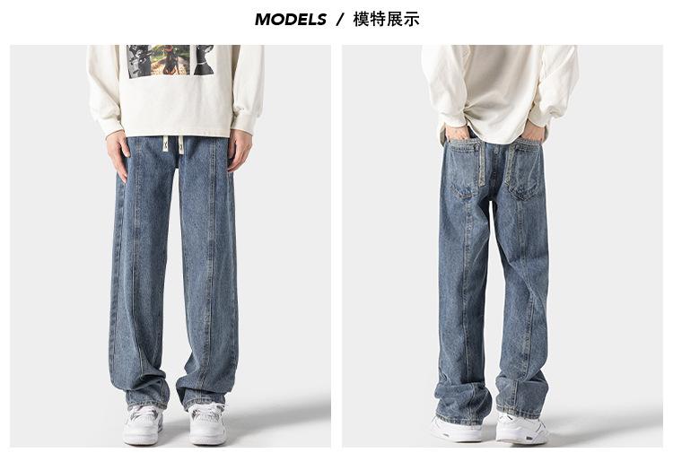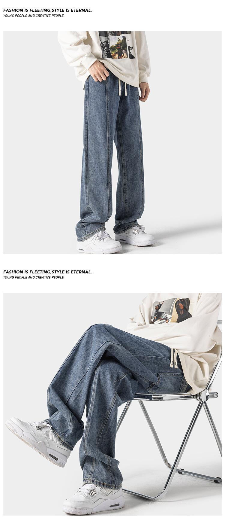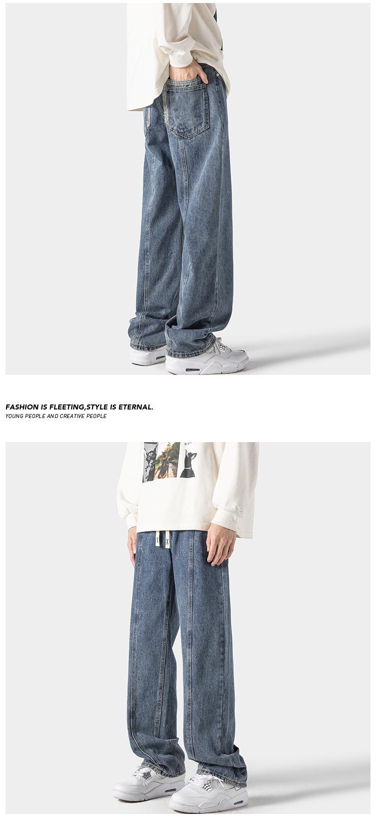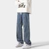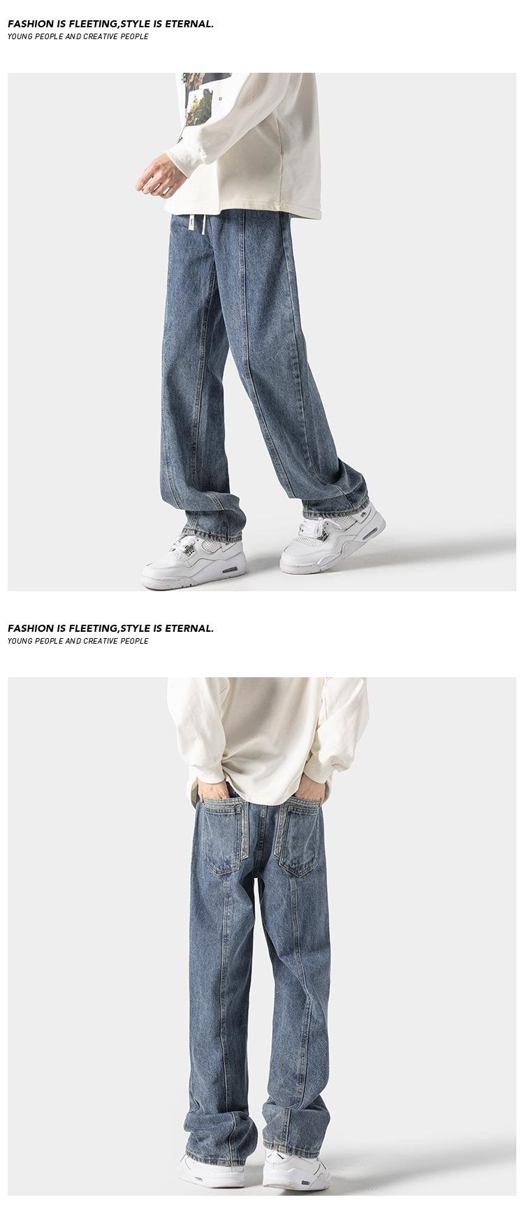 Jeans retro americanos para hombre, diseño de bolsillo trasero, pantalones rectos holgados, casuales, sencillos, negros, ajustados, largos