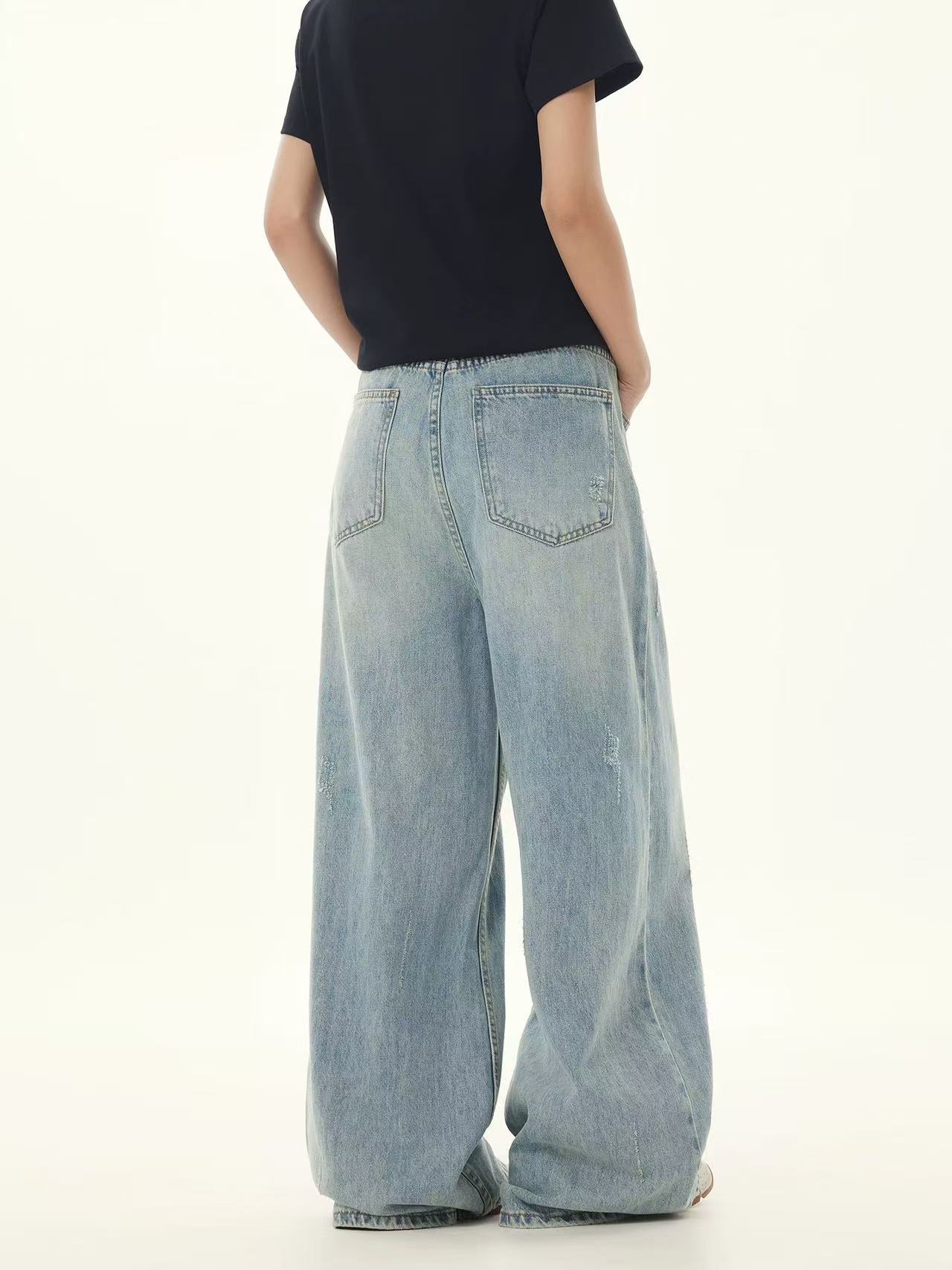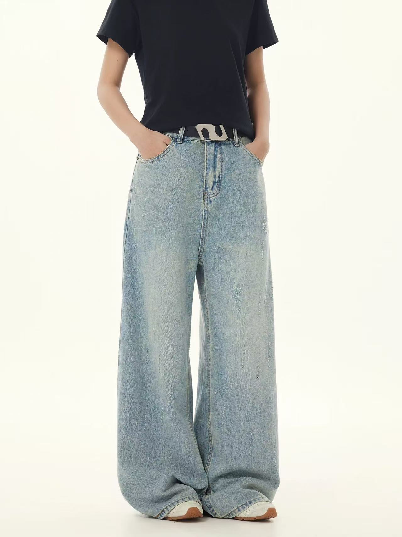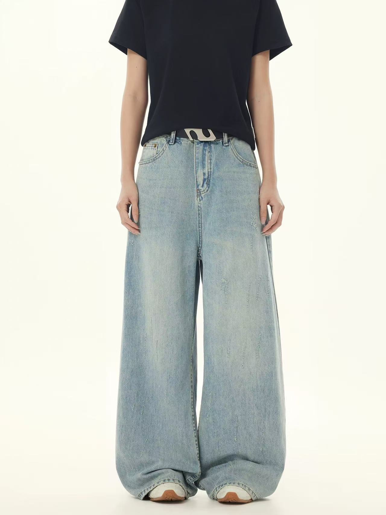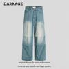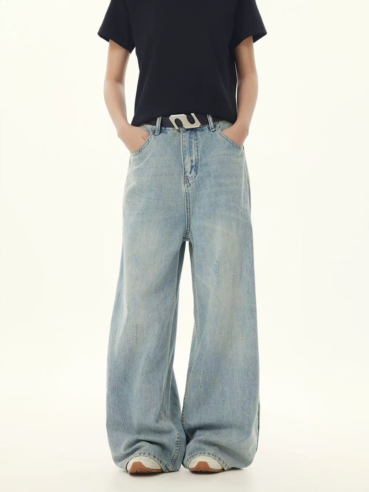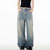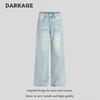 Jeans Rectos Vintage Lavado Antiguo cleanfit Marca de Moda Estilo Americano Sueltos Pierna Ancha Casual Pantalones Largos