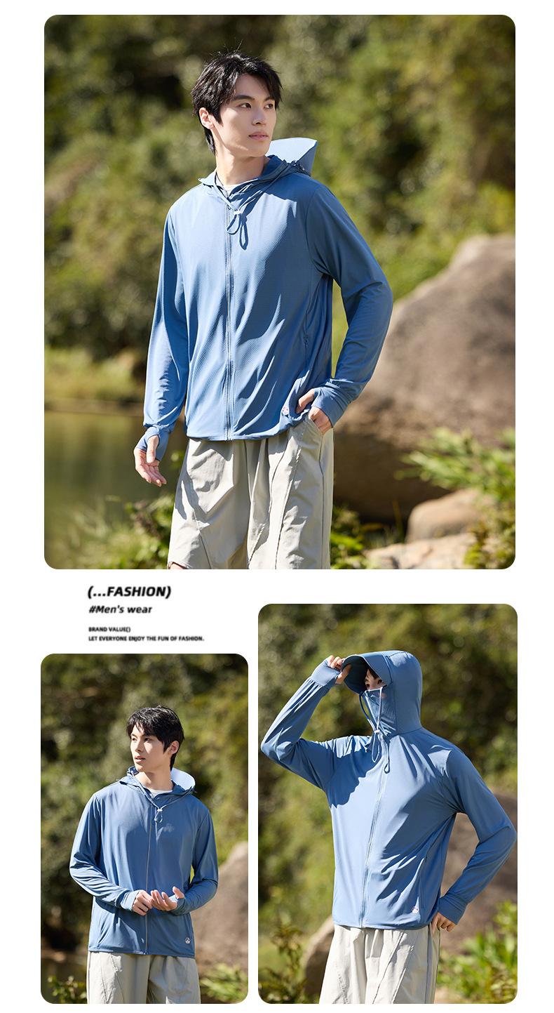 [Protector Solar de Hilo Original UPF50] Ligero y Fresco Verano con Capucha para Montar al Aire Libre Transpirable Ropa Protectora Solar Integrada para Hombres y Mujeres