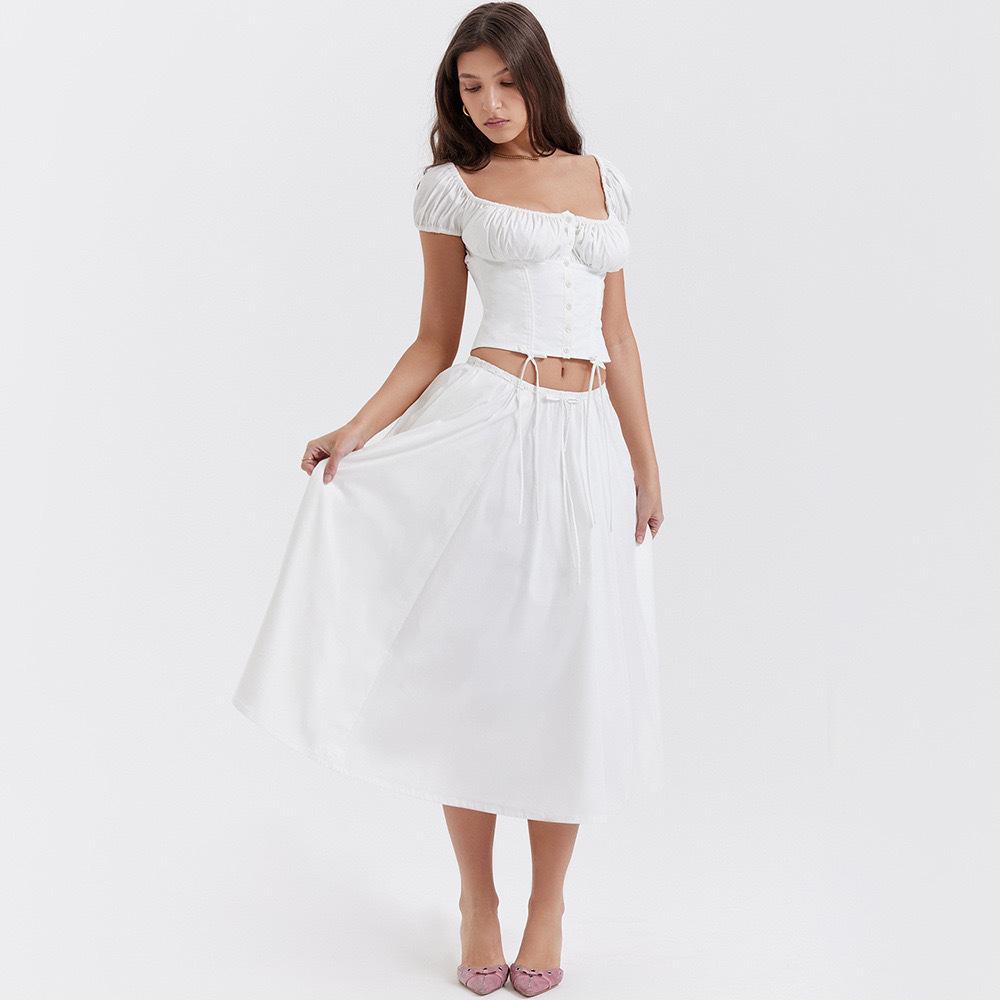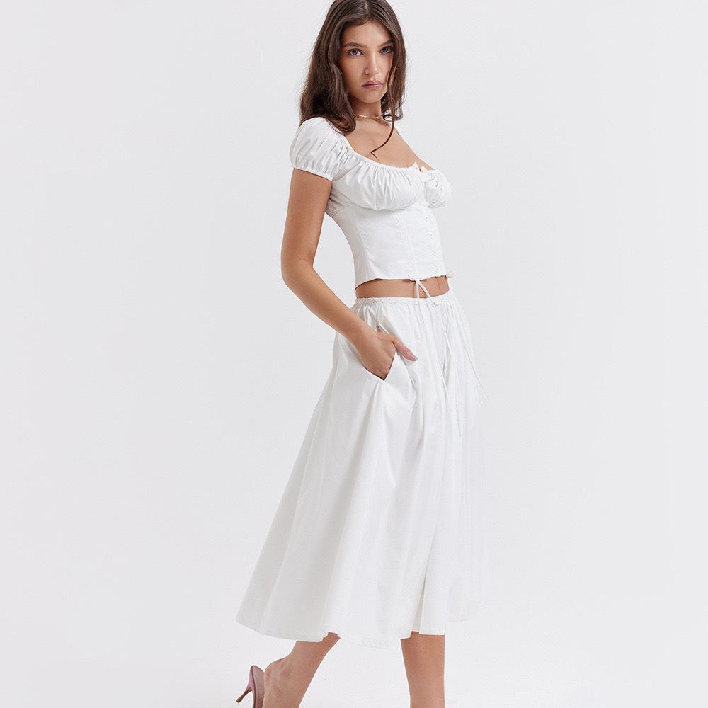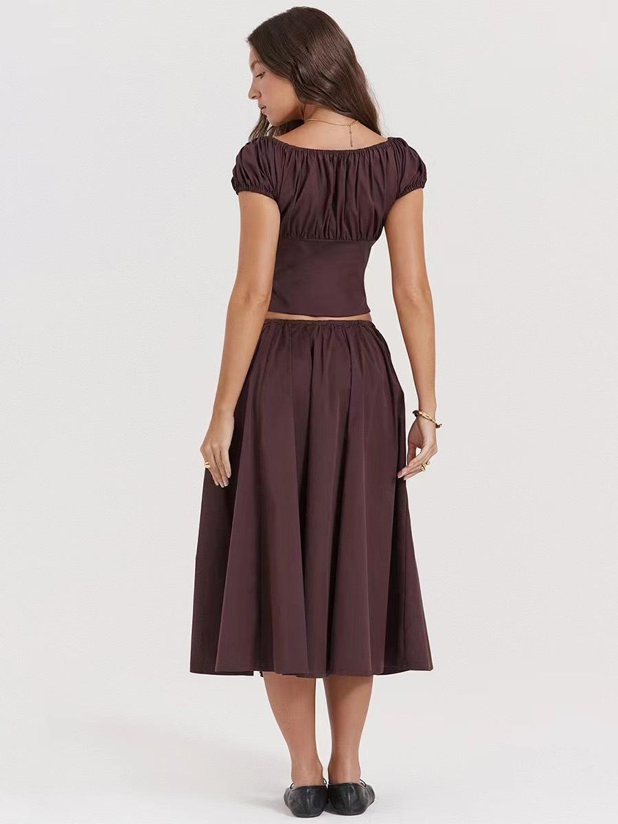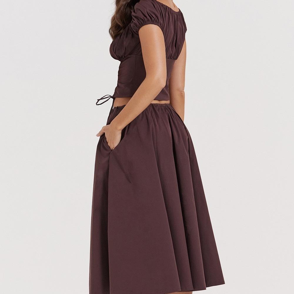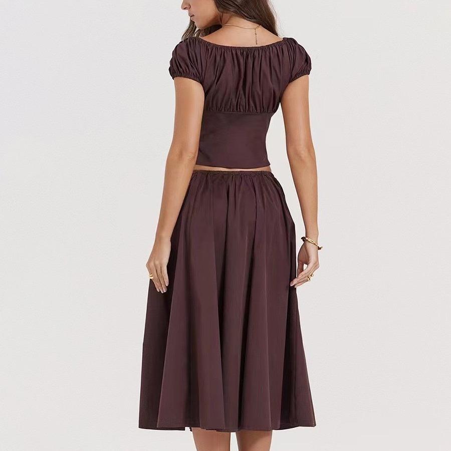 Verano 2023 nuevo Amazon superventas color sólido Sexy Slim moda sexy vestido de chica caliente falda de dos piezas
