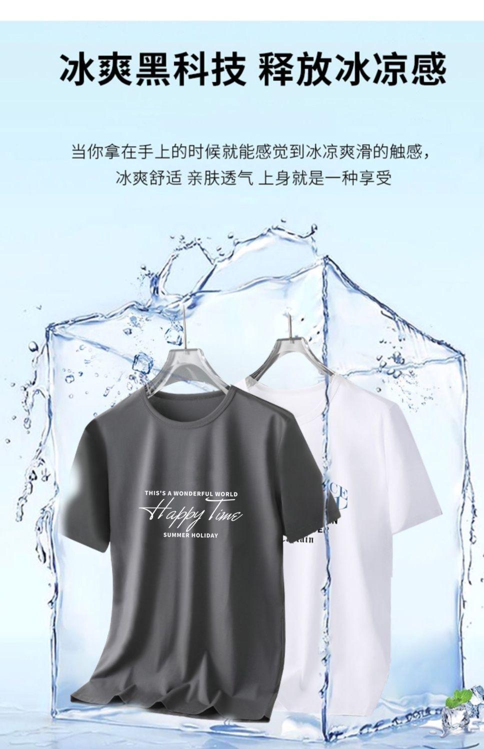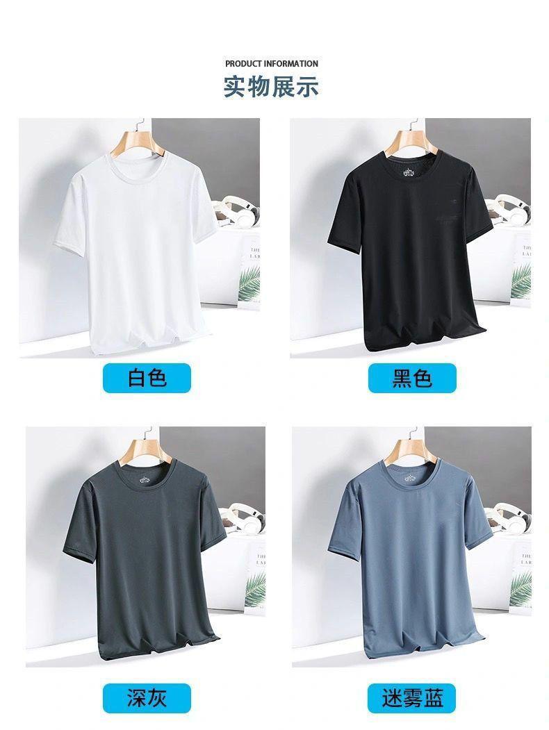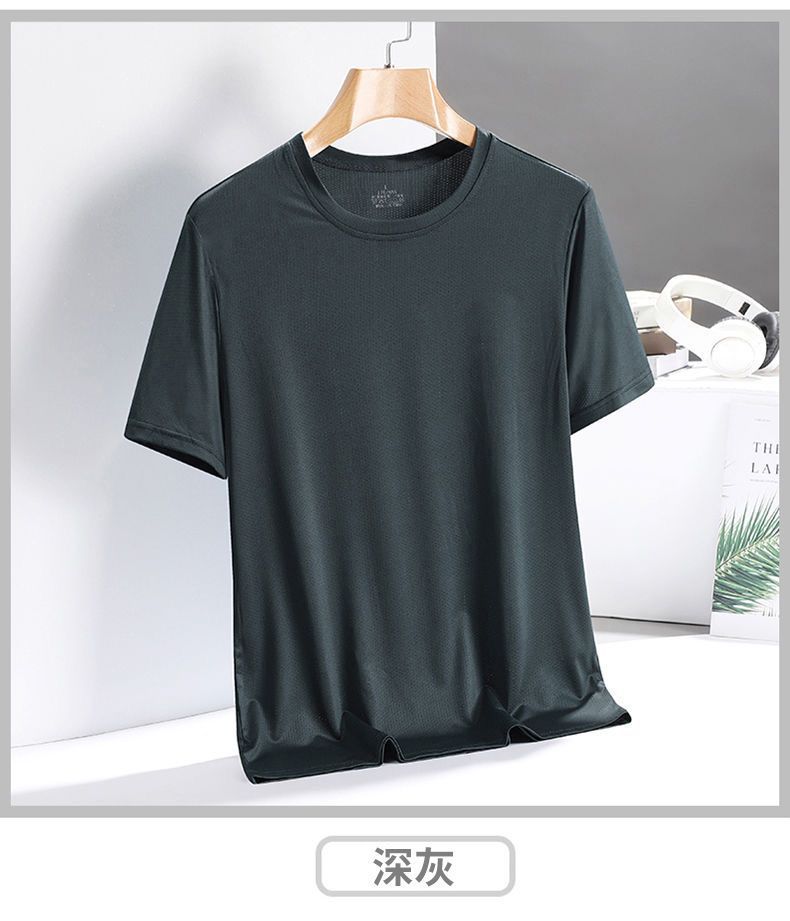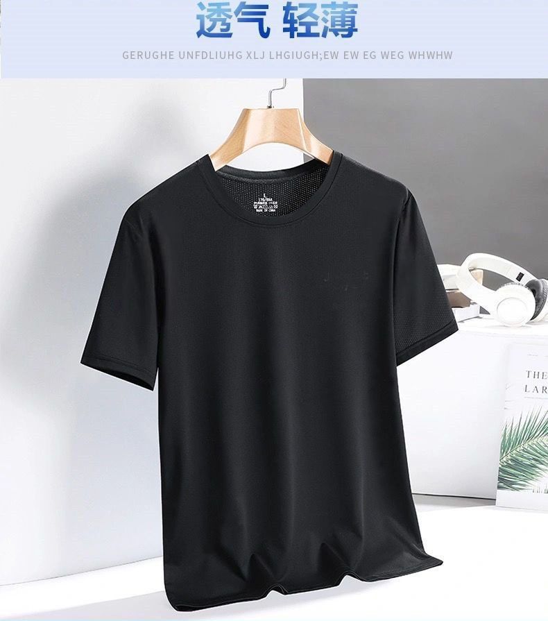 Camiseta de Malla de Seda de Hielo Verano 2025 Estampada Combinable Delgada Cuello Redondo Secado Rápido Manga Corta Camiseta Estilo Deportivo para Hombre