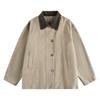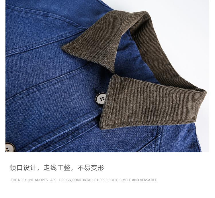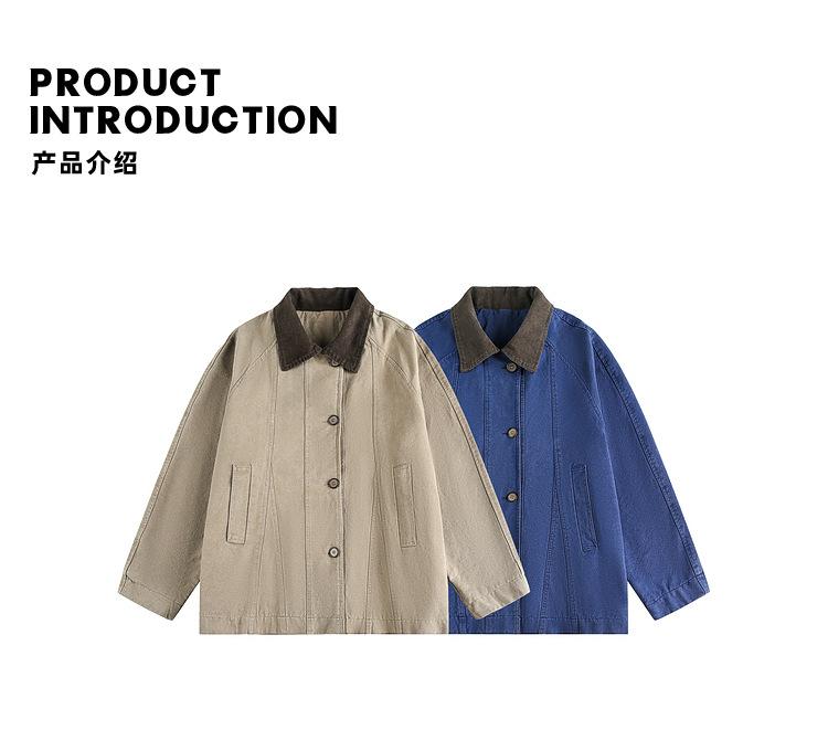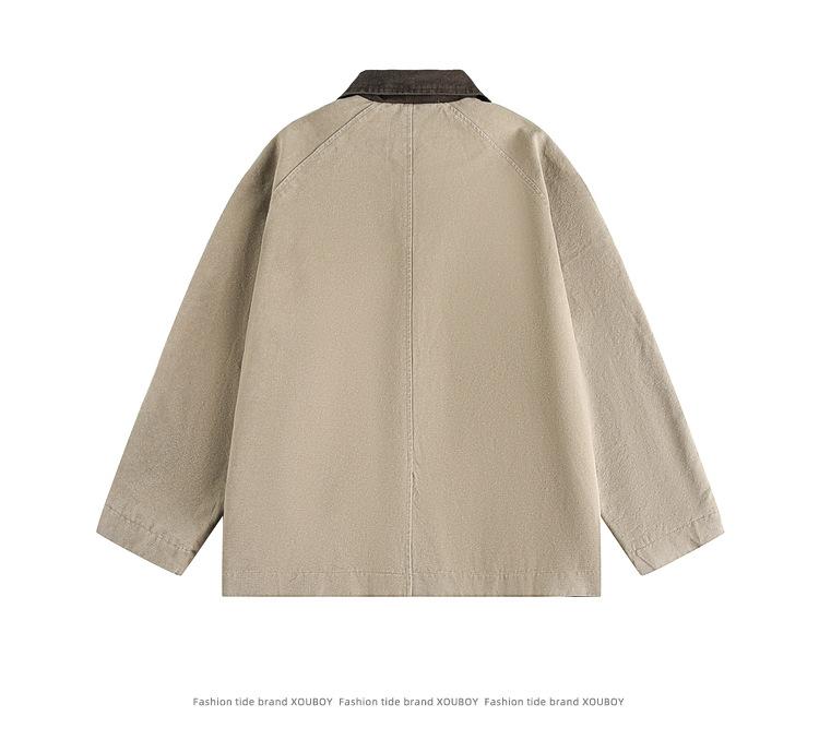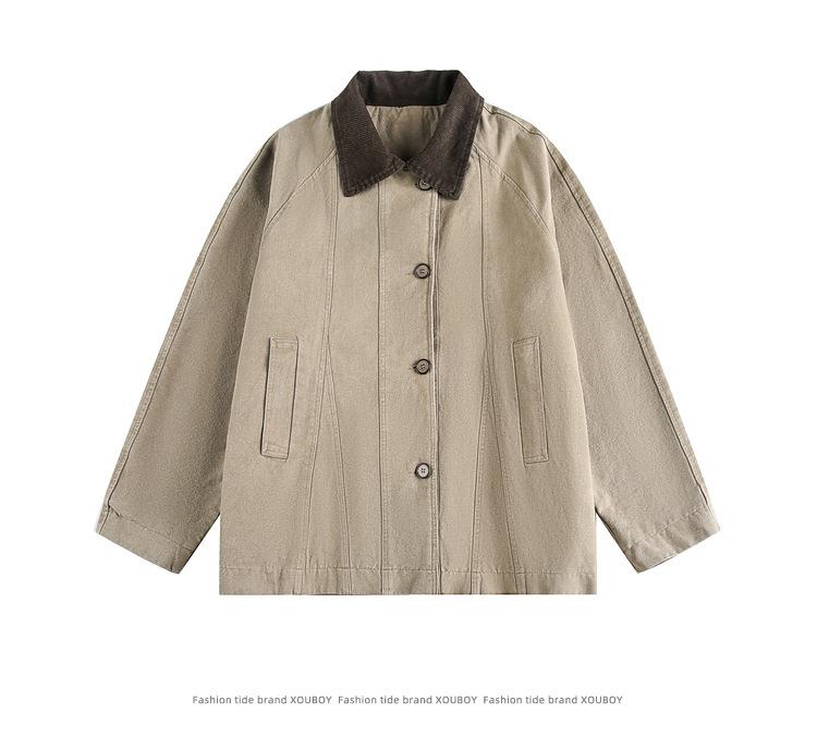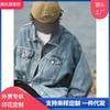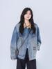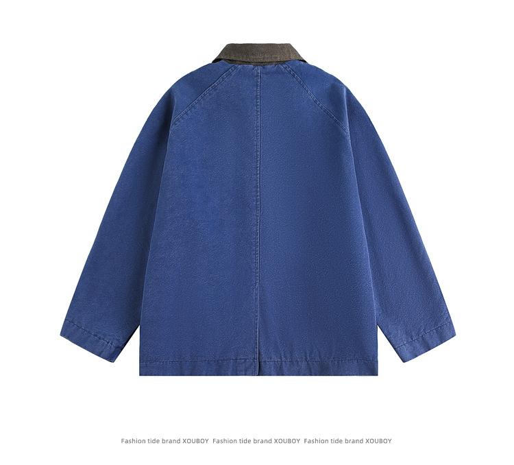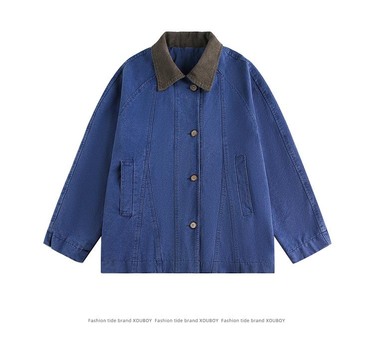 Chamarra de mezclilla retro americana lavada con efecto desgastado para hombre y mujer, holgada, con diseño de cuello color block, casual, de tendencia