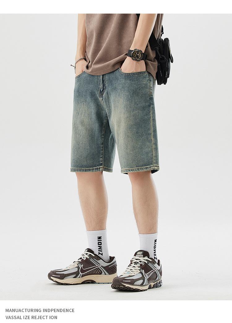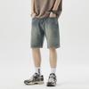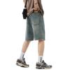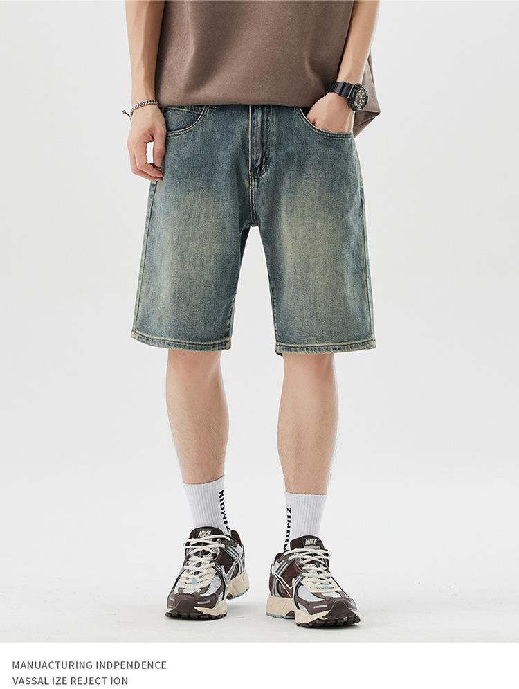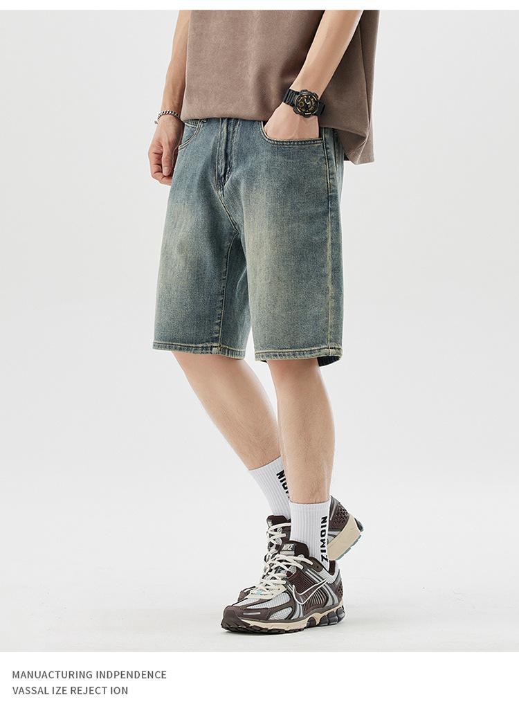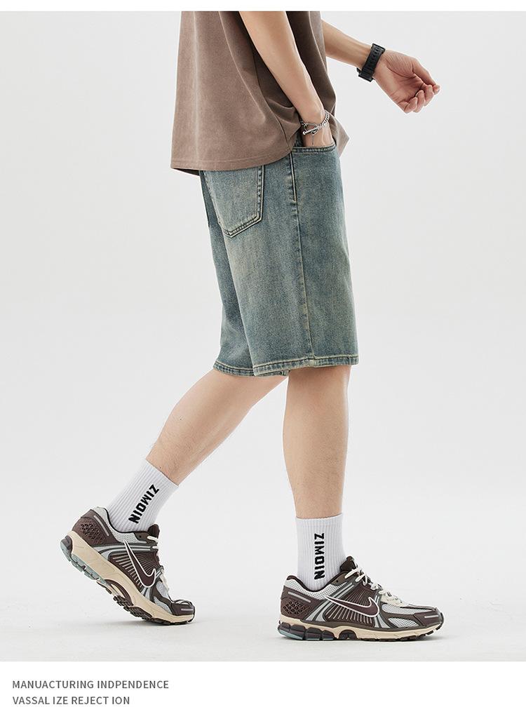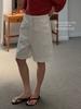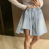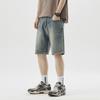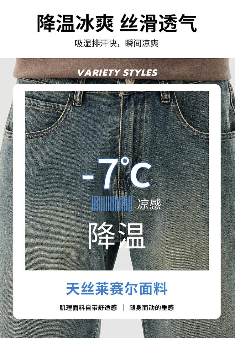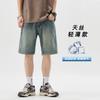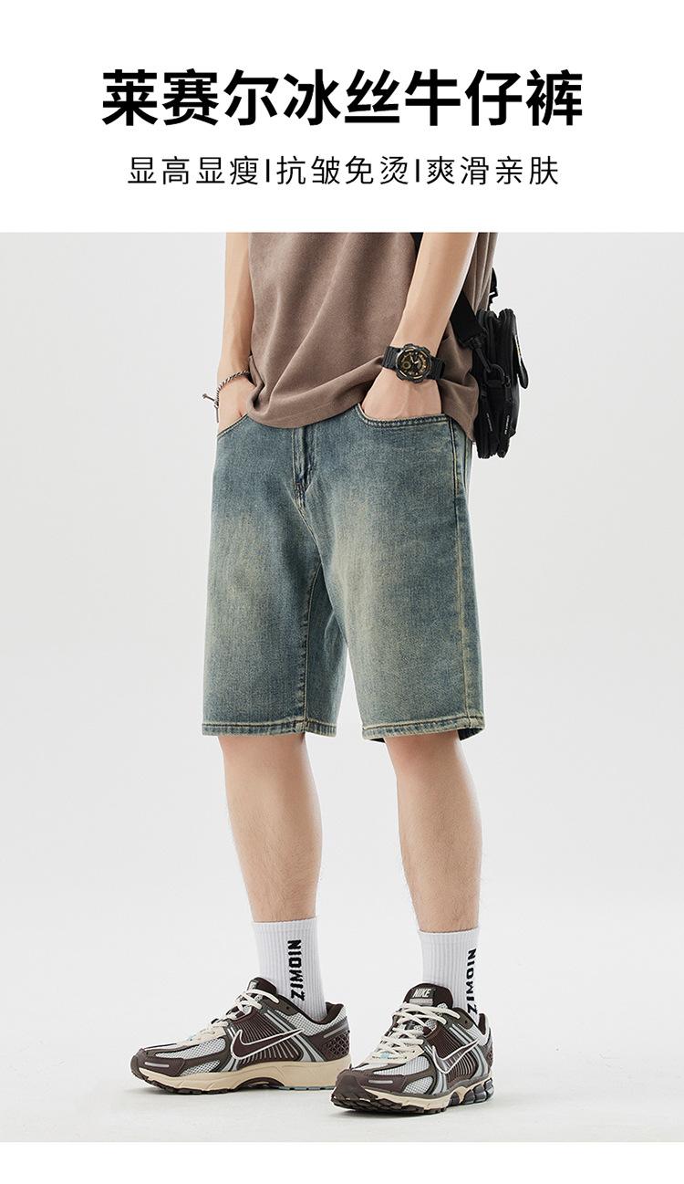 2303-1 Lyocell Tencel Stretch Pantalones Medios Azul Nostálgico Hecho a Mano Estilo Coreano Básico Recto Shorts Pintados a Mano