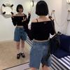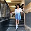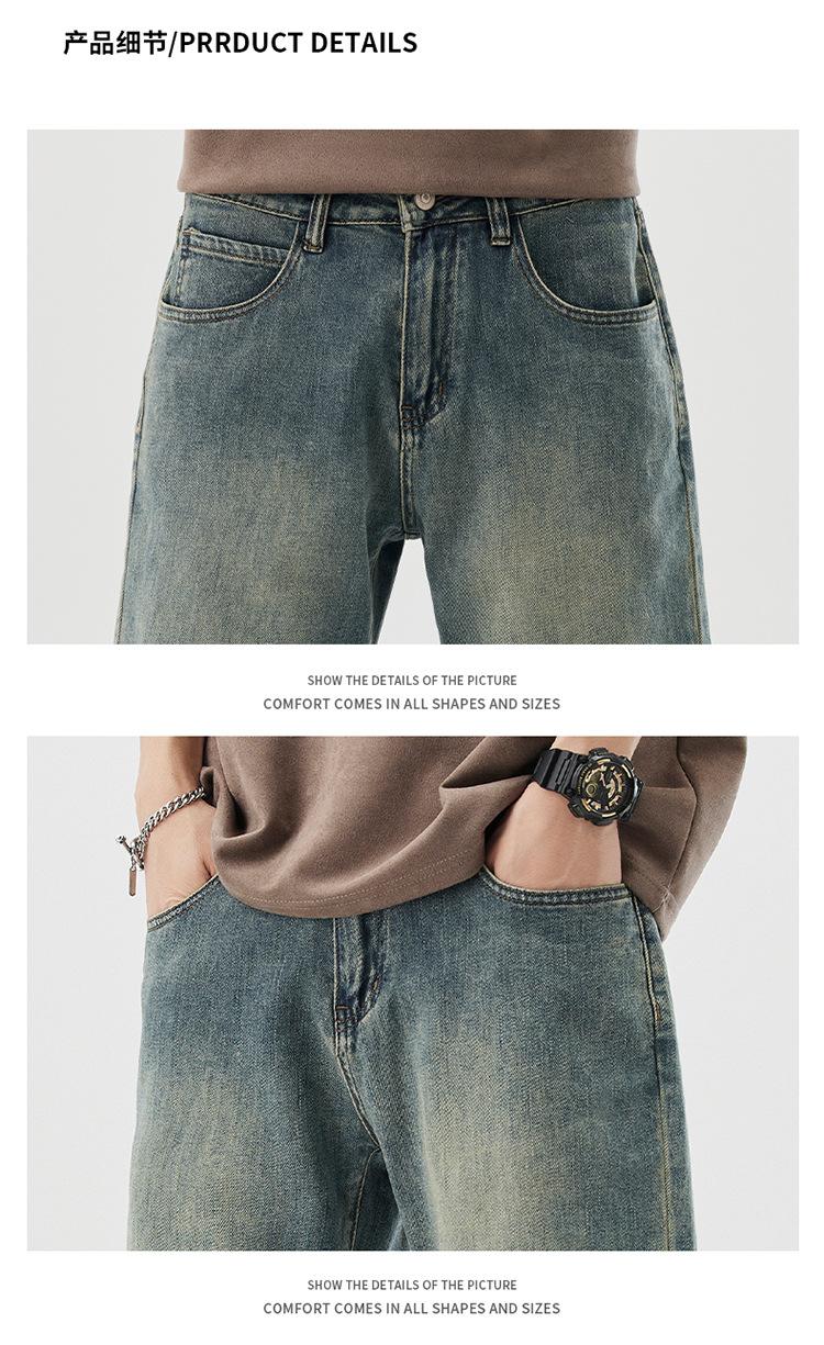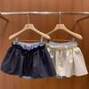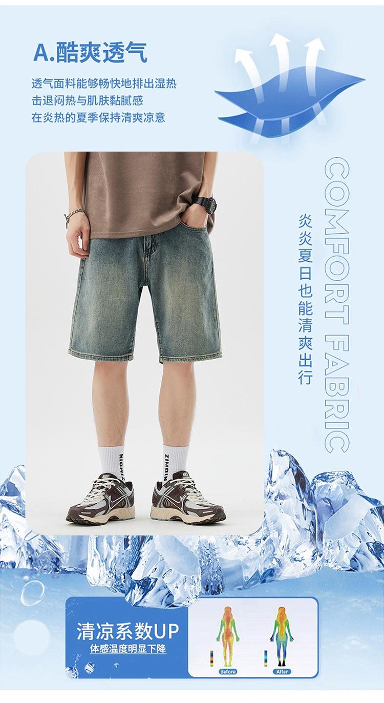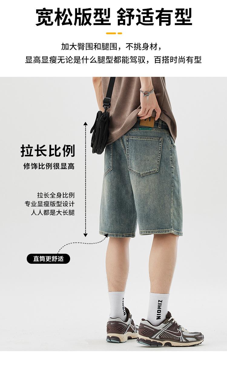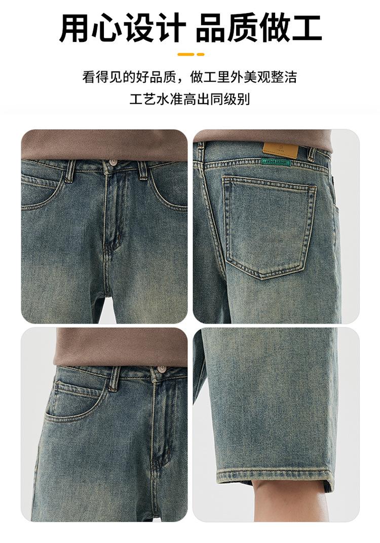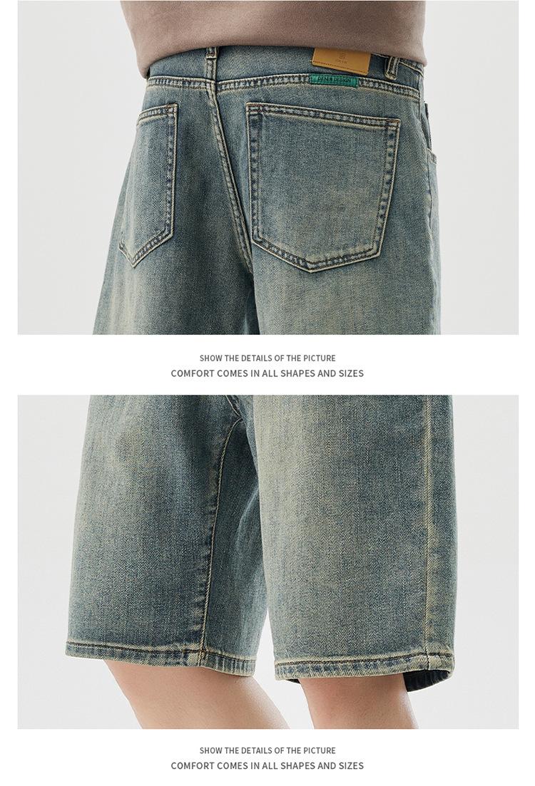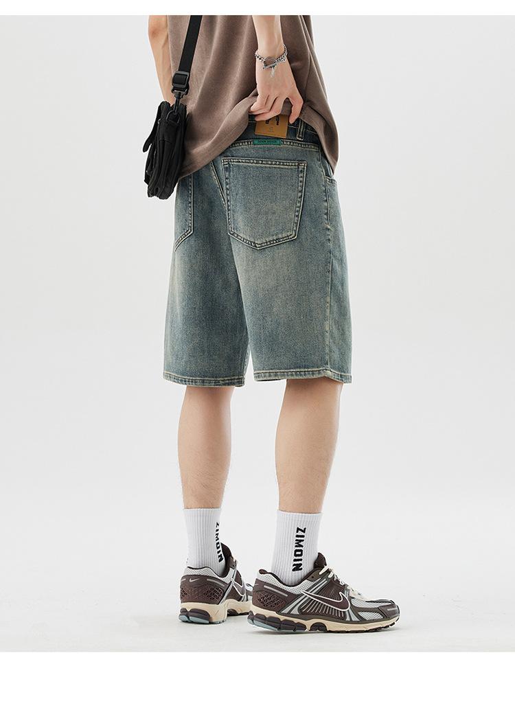 2303-1 Lyocell Tencel Stretch Pantalones Medios Azul Nostálgico Hecho a Mano Estilo Coreano Básico Recto Shorts Pintados a Mano