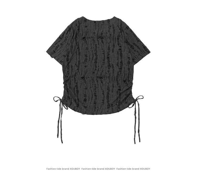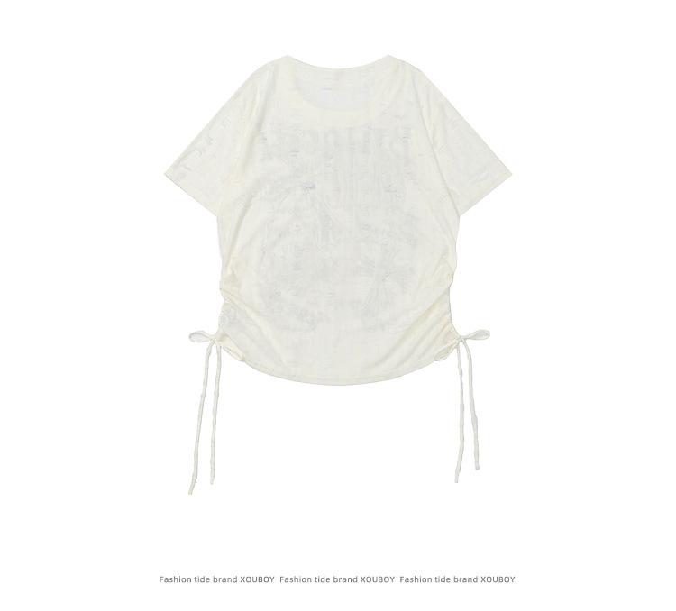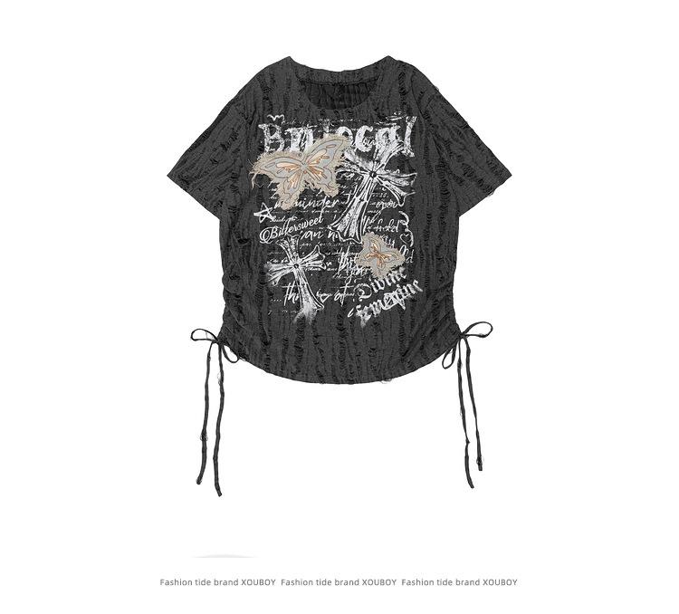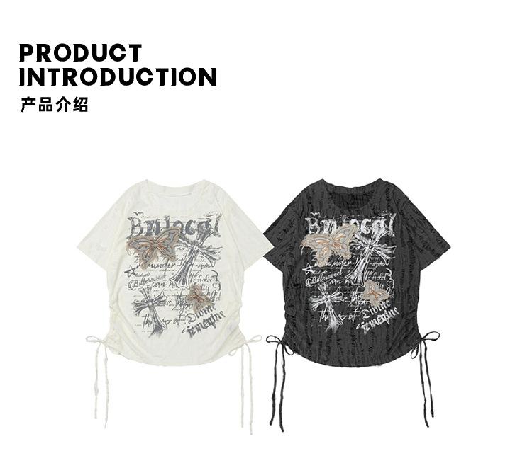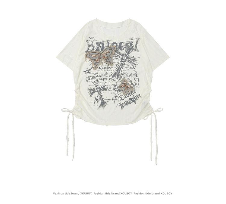 Compra Ropa Camiseta de Manga Corta Estilo Coreano Estilo Holgazán Parche de Mariposa para Hombre Verano para Mujer Top Estilo Sexy Asimétrico con Cordón al por mayor en Joom.pro