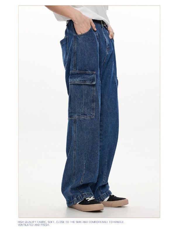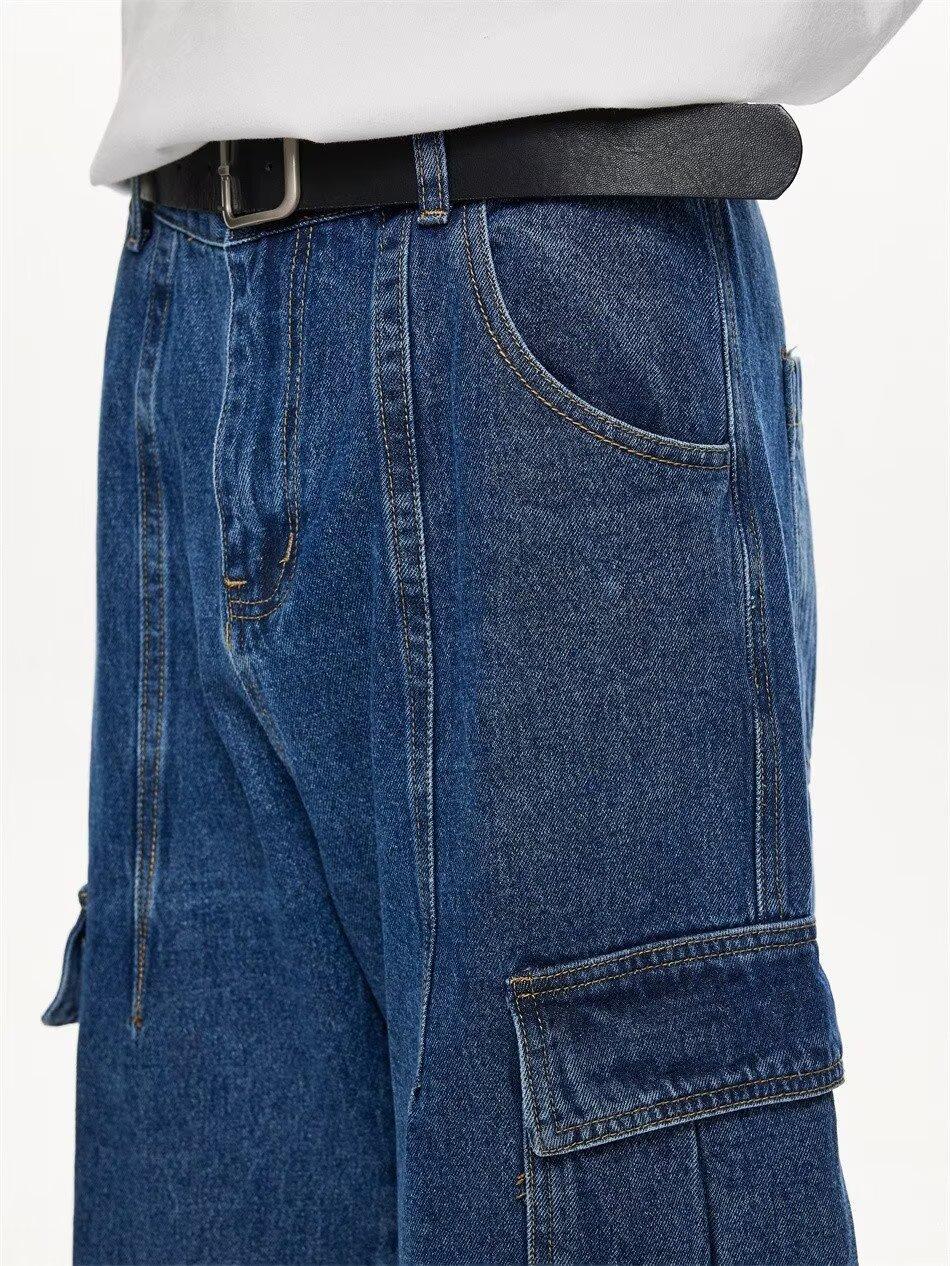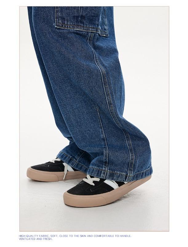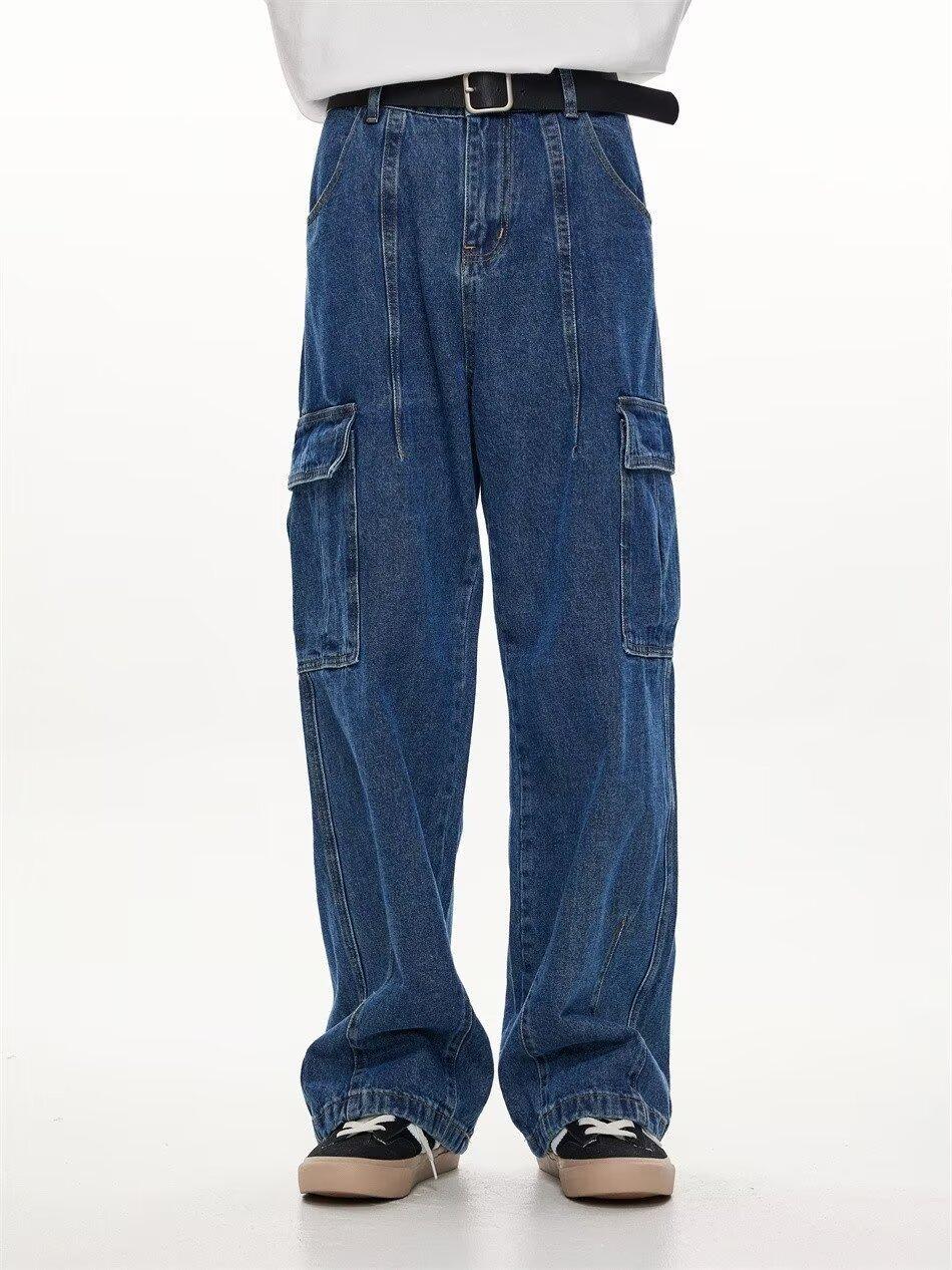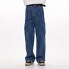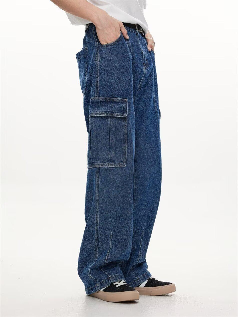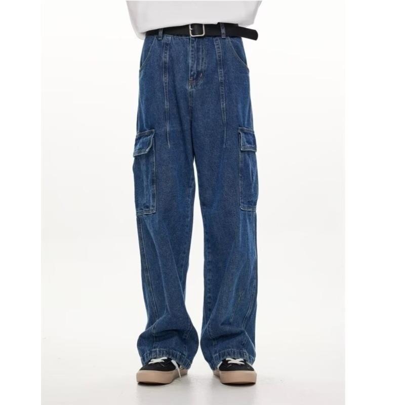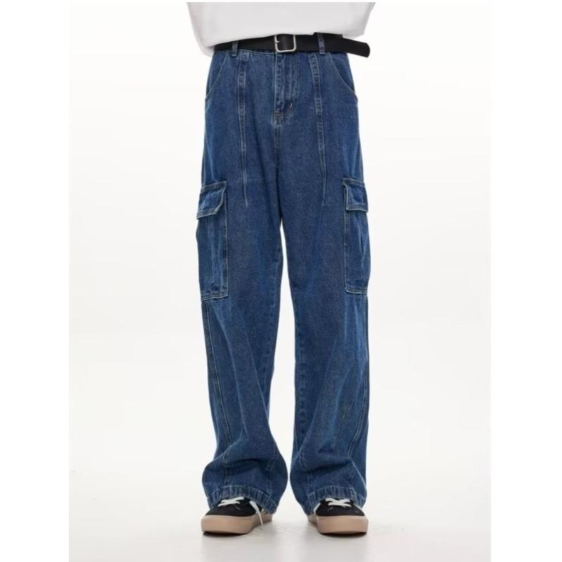 Jeans de Pierna Ancha Rectos Holgados Americanos Retro de Moda Otoño Nuevo Ropa de Trabajo Azul Oscuro para Hombre y Mujer