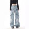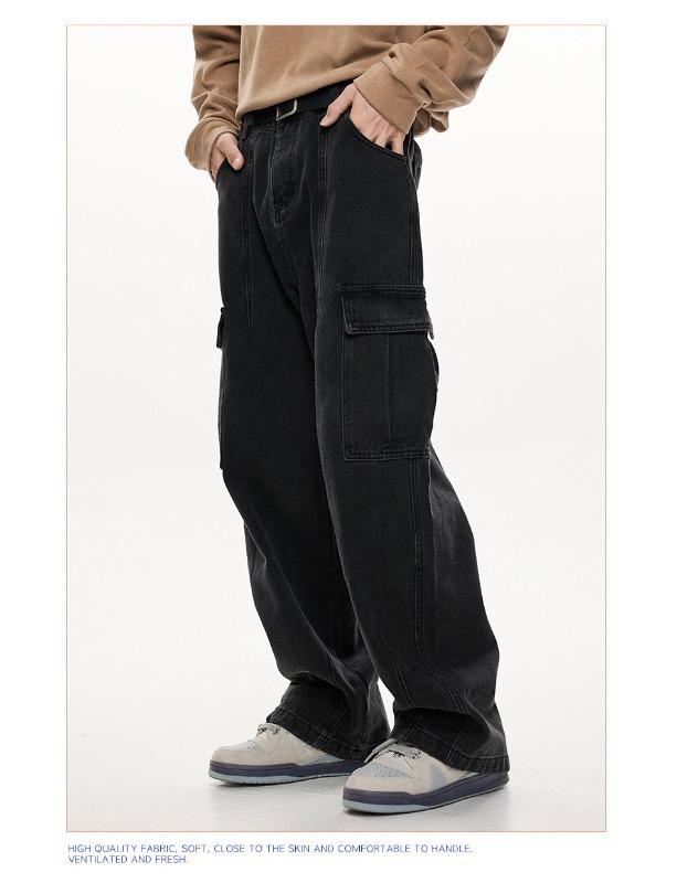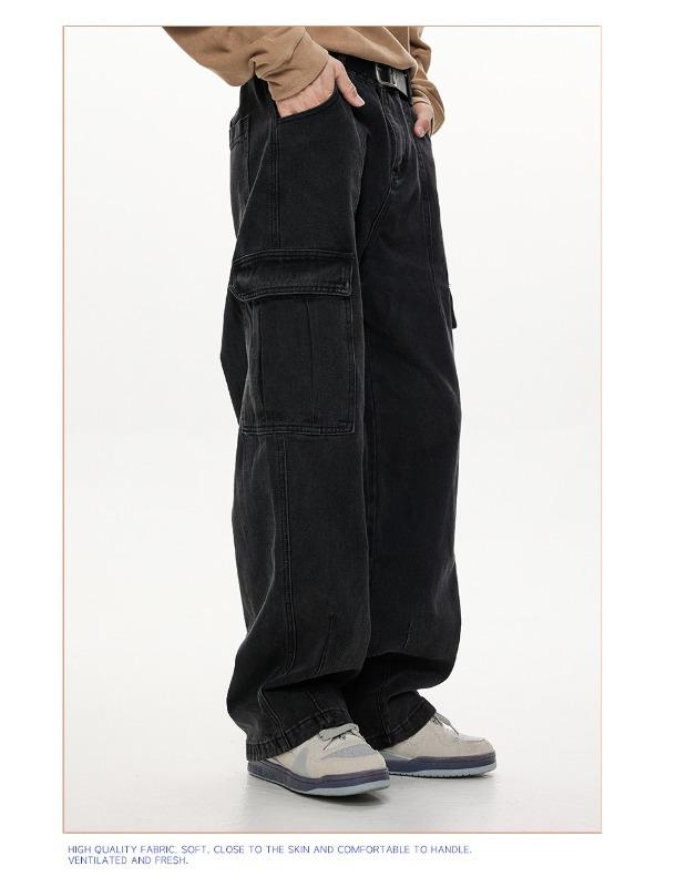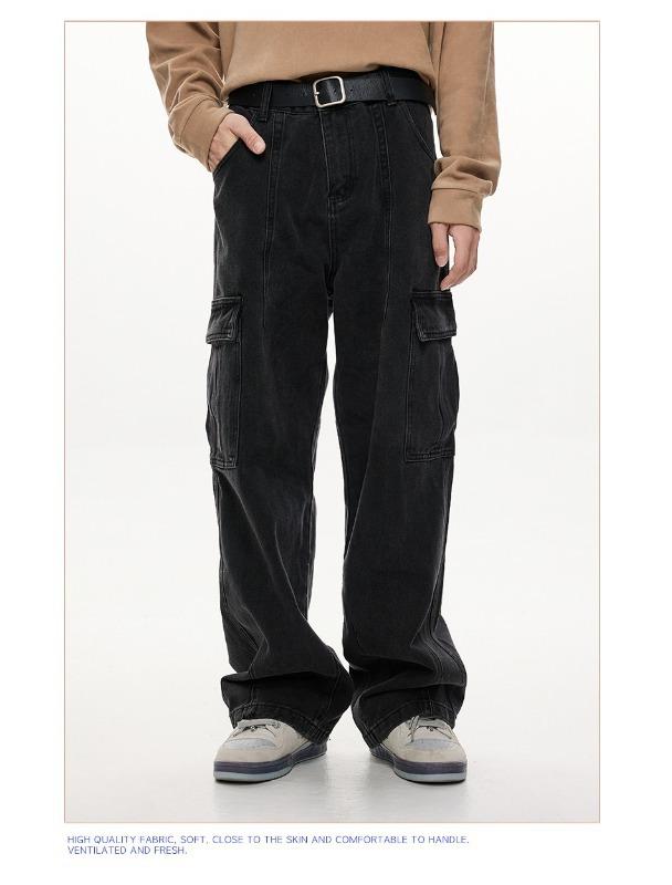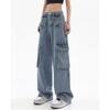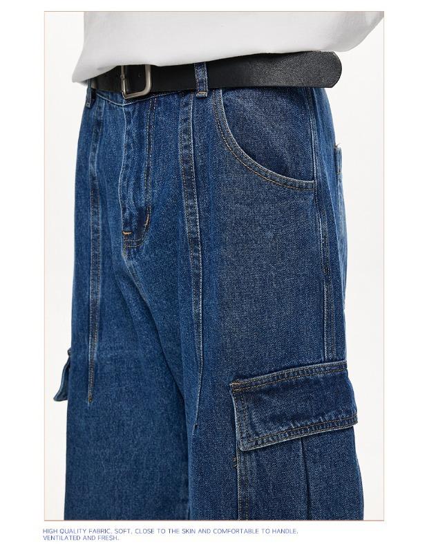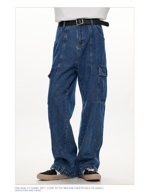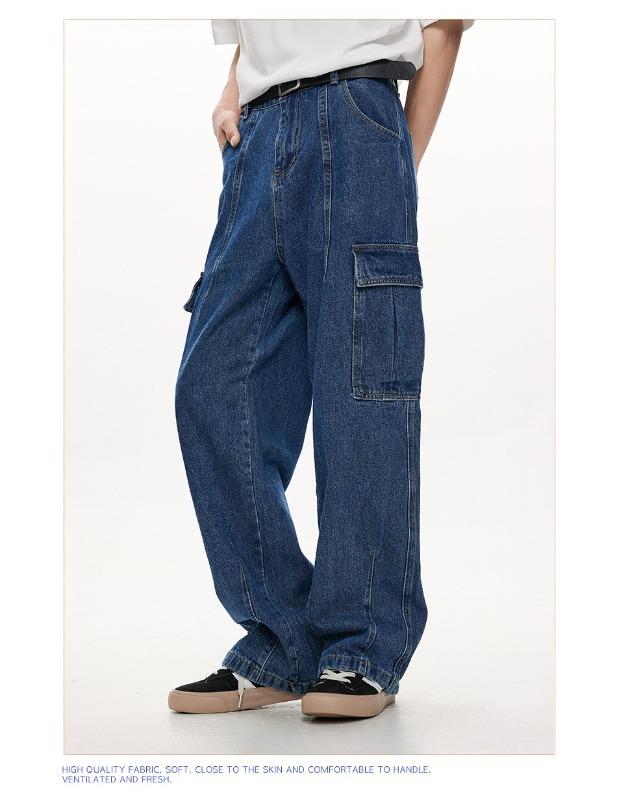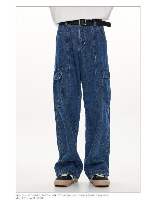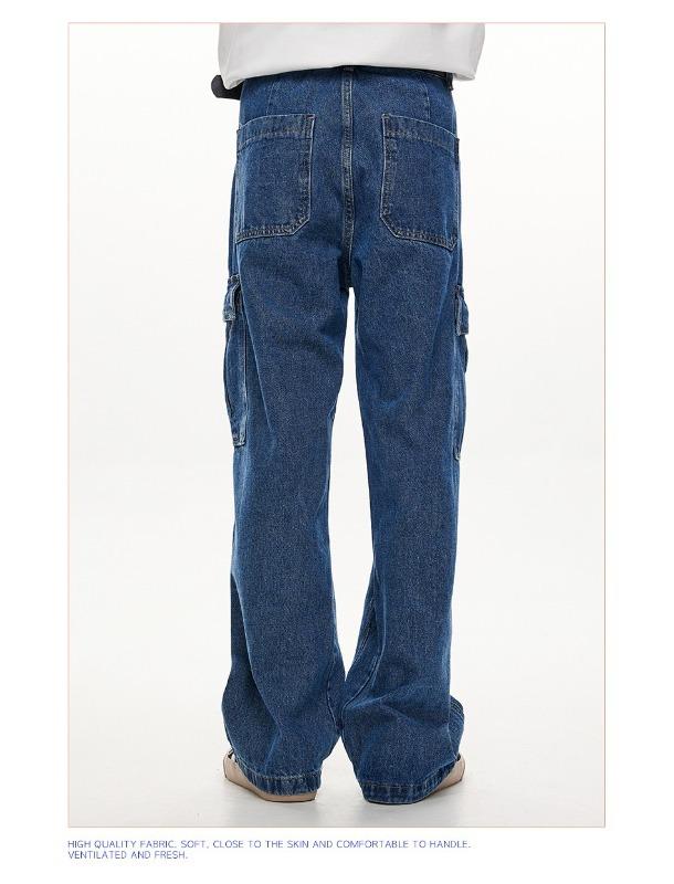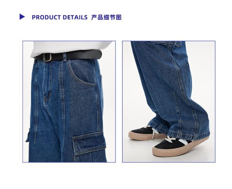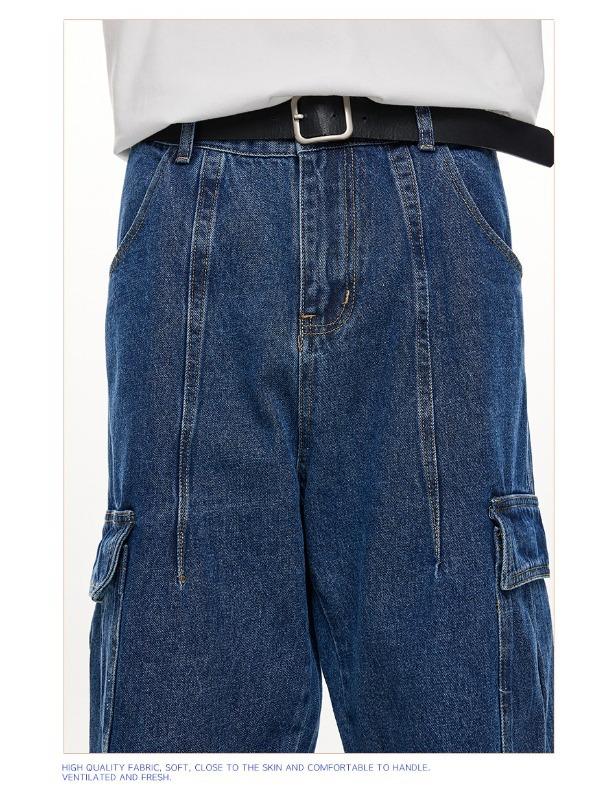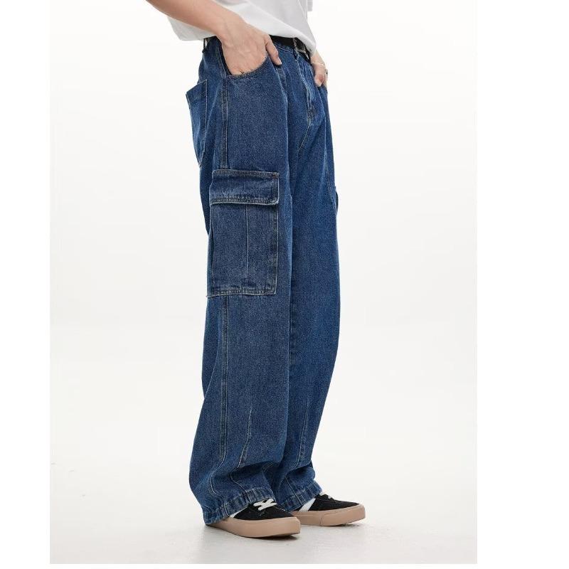 Jeans de Pierna Ancha Rectos Holgados Americanos Retro de Moda Otoño Nuevo Ropa de Trabajo Azul Oscuro para Hombre y Mujer