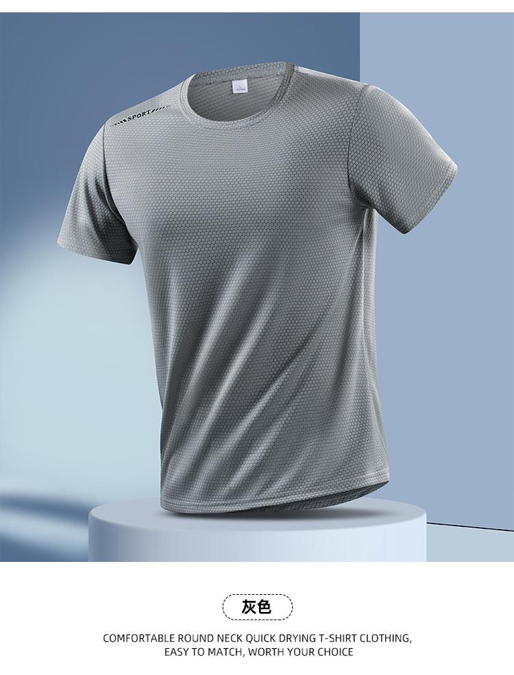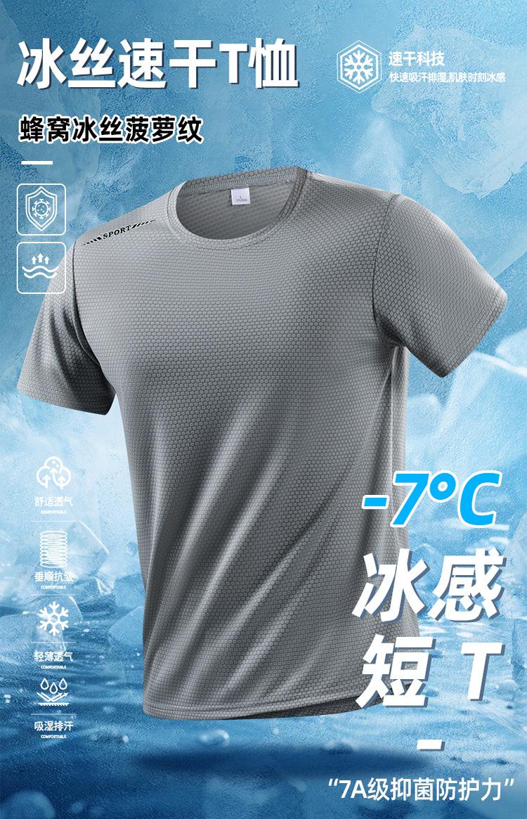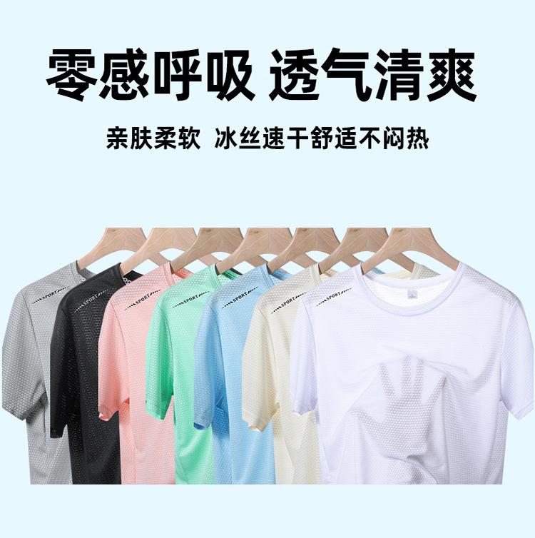 Verano Nueva Camiseta de Seda Helada Estampada para Hombre Deportes Casual Running Fitness Transpirable Manga Corta Ropa para Hombre para Exteriores de Secado Rápido