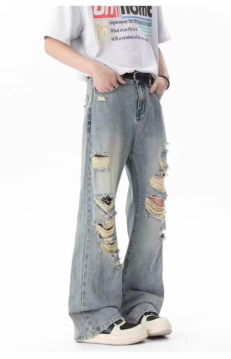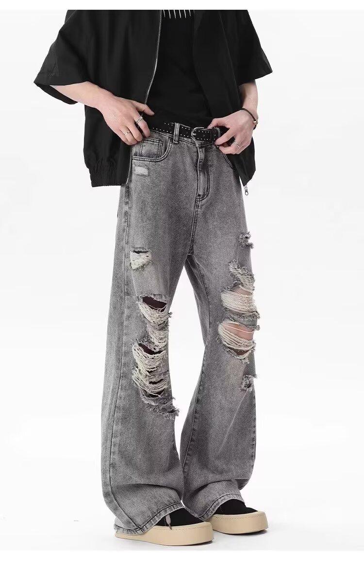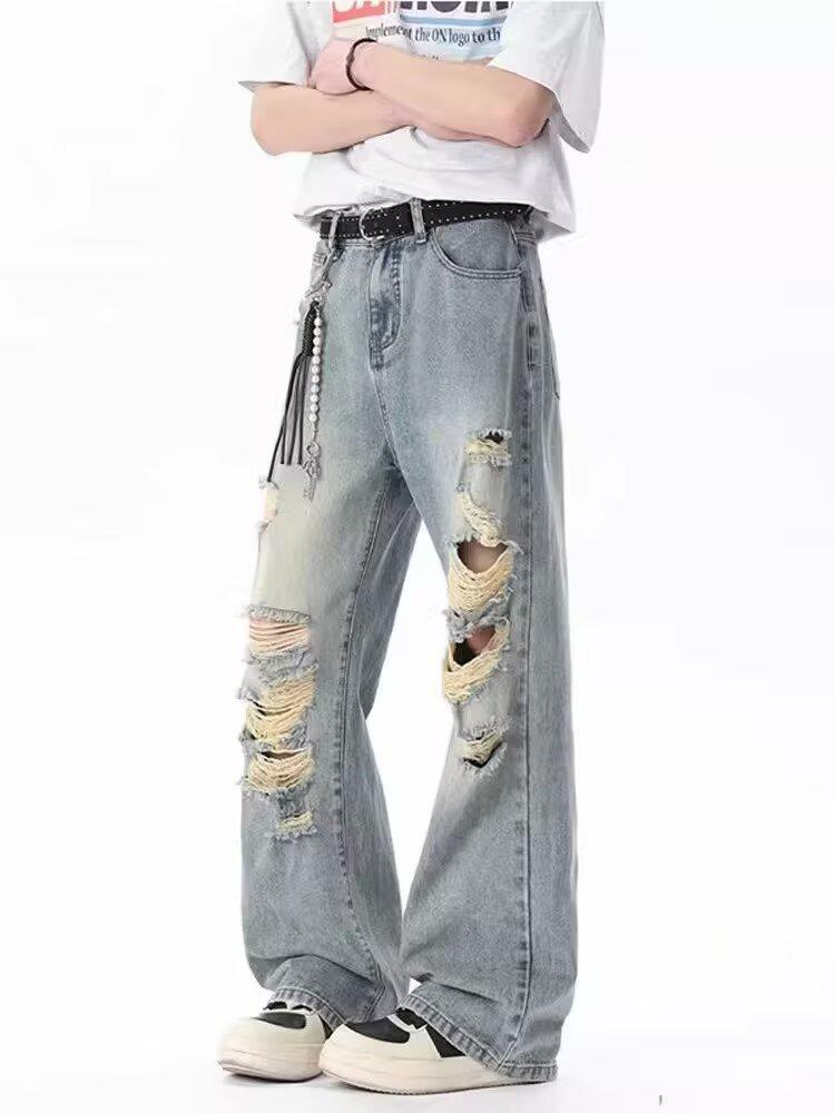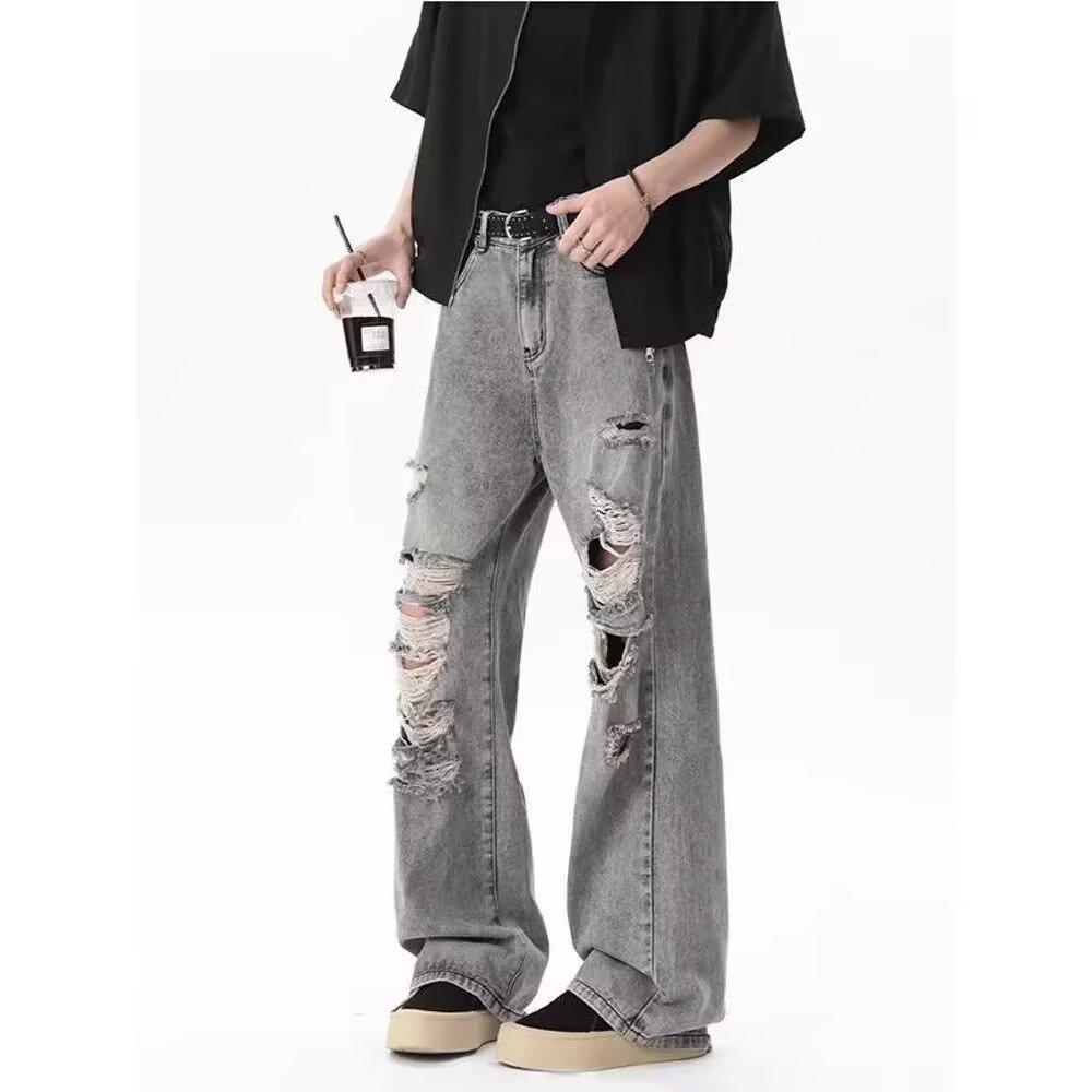 Jeans Rotos Estilo Americano para Hombres y Mujeres 2025 Nuevo Verano High Street Cool Rectos Sueltos Pierna Ancha Delgados
