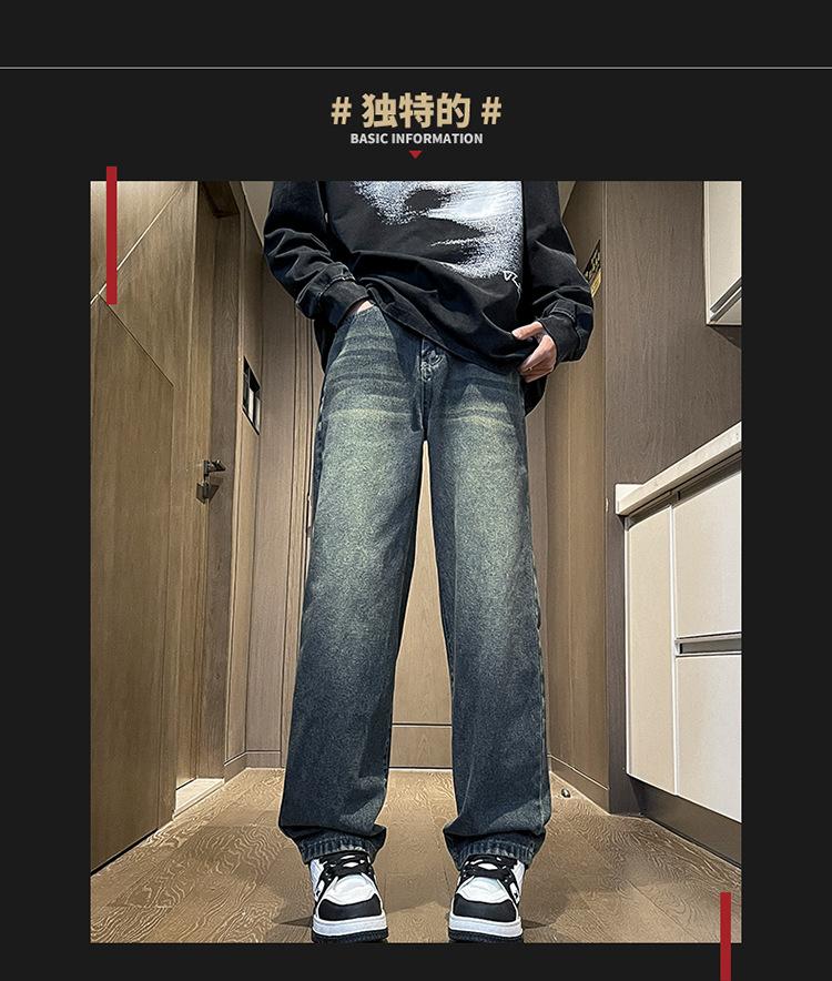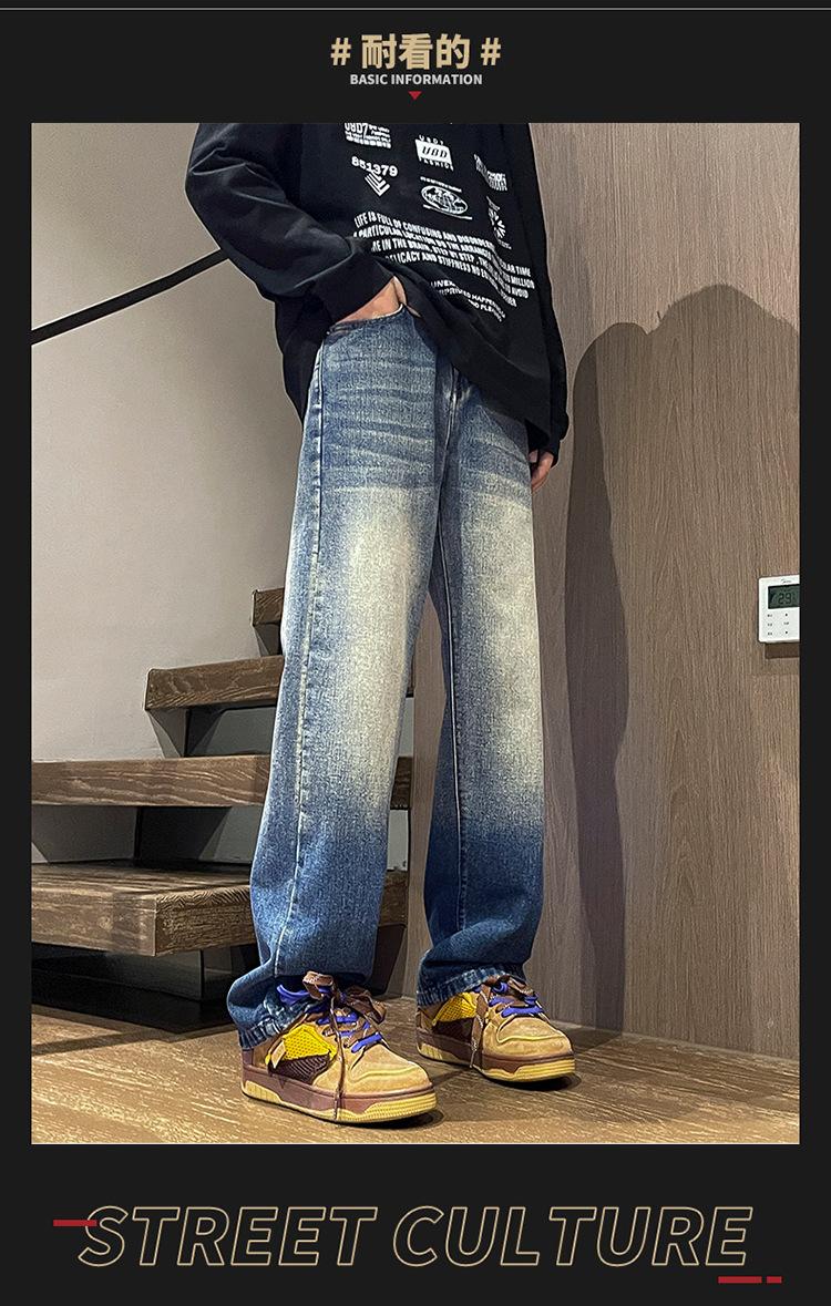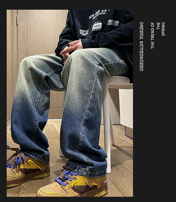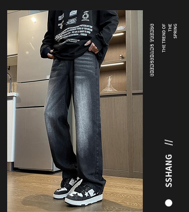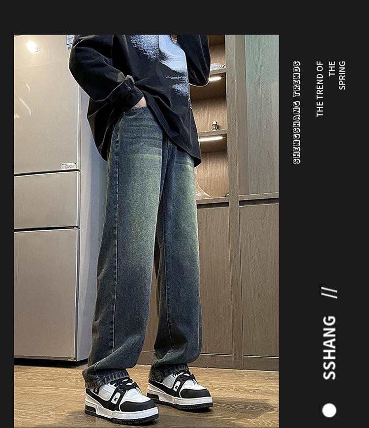 Jeans Retro Americanos Primavera y Otoño Pantalones de Hombre Tendencia Versátil 2025 Nuevo Versátil Pierna Recta Suelto Pantalón Largo