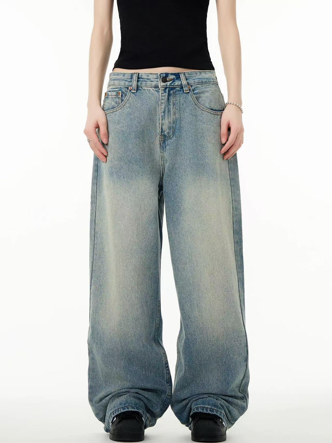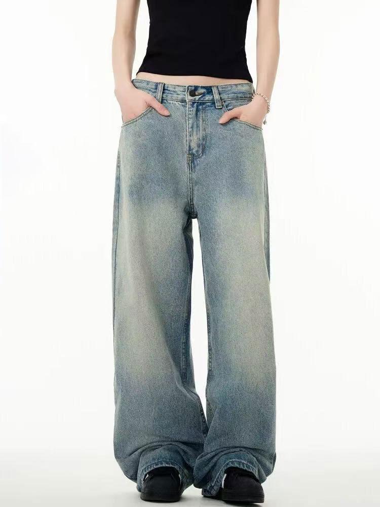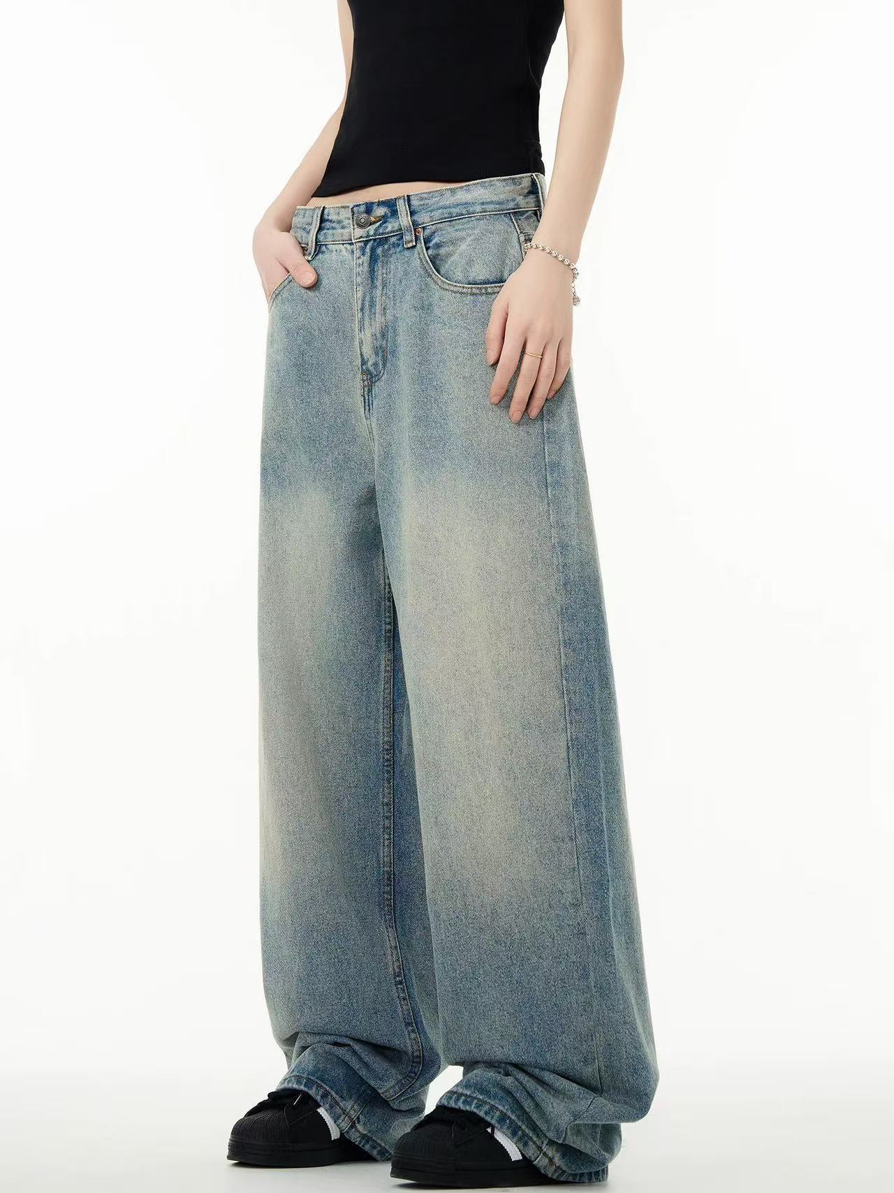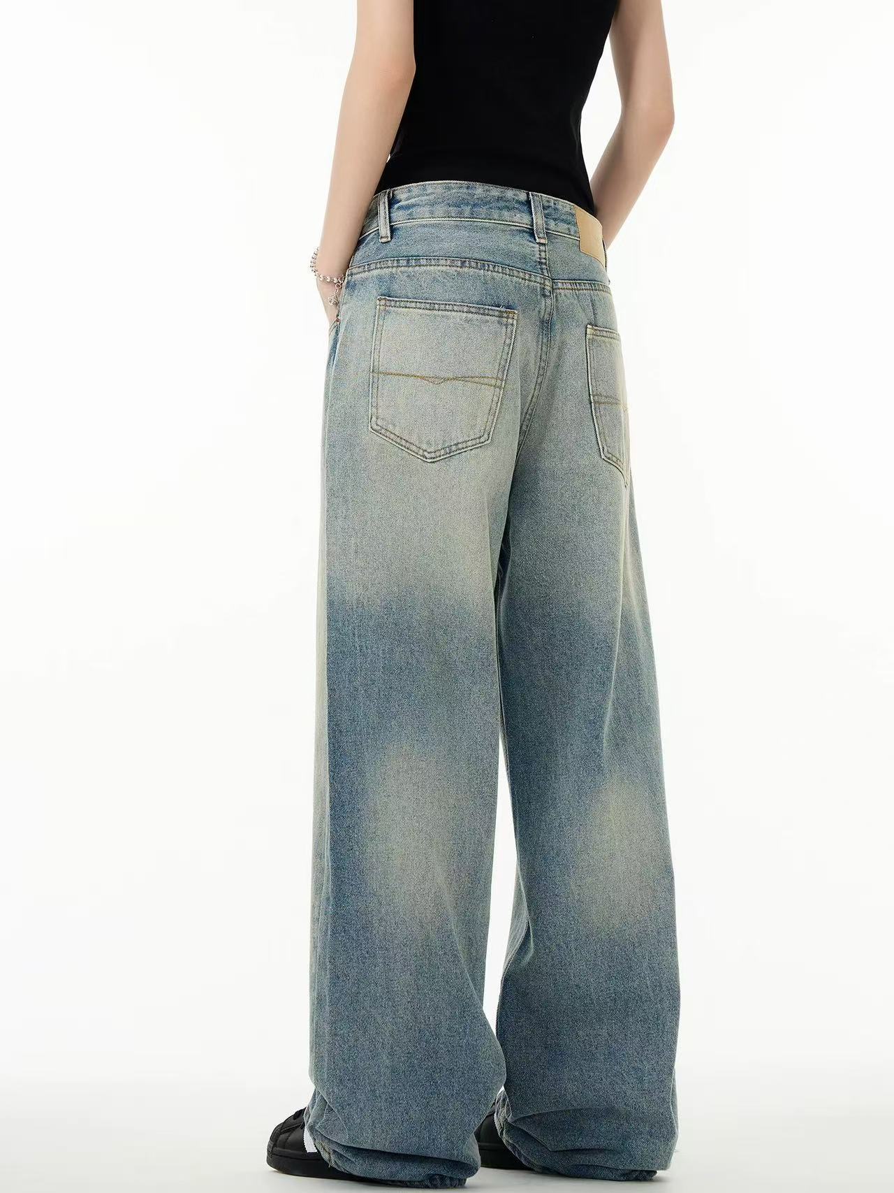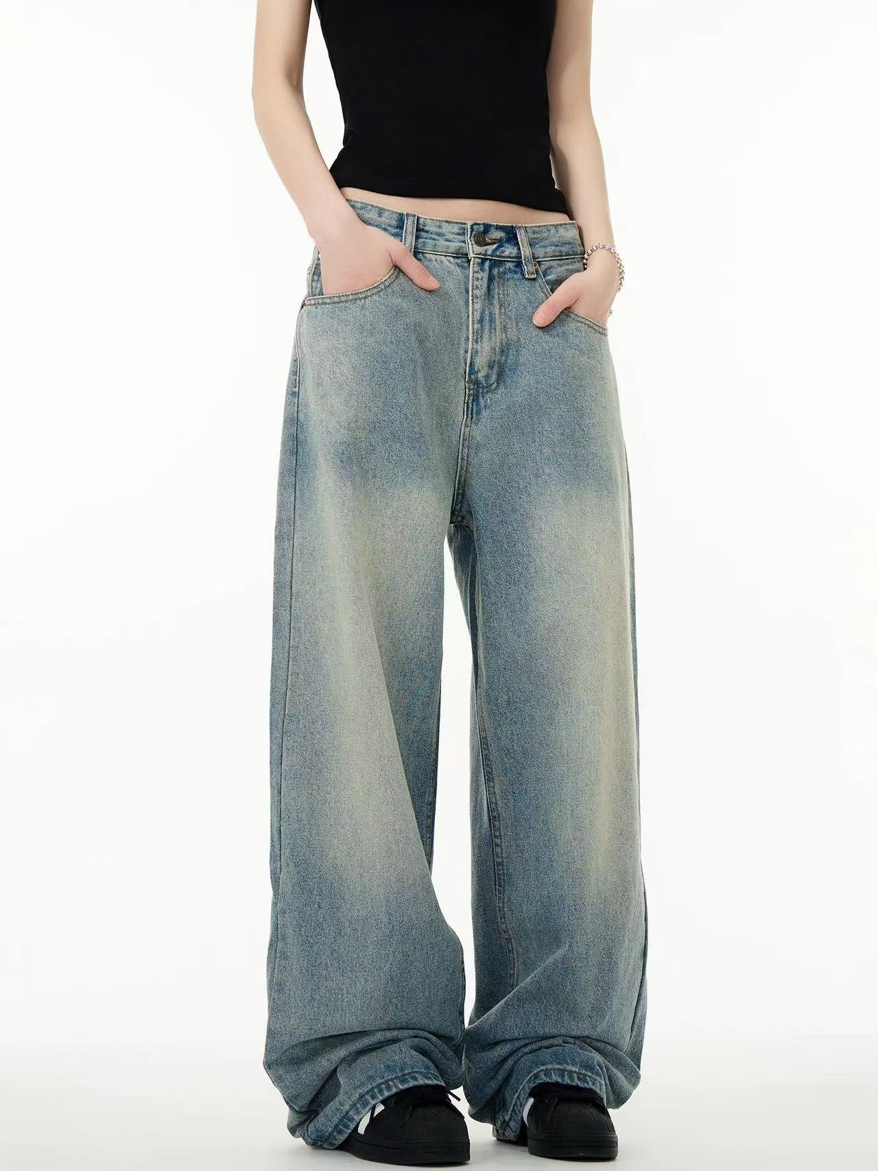 Jeans Vintage Estilo Americano Vintag Unisex Sueltos Anchos Pierna Ancha cleanfit Rectos Marca de Moda
