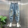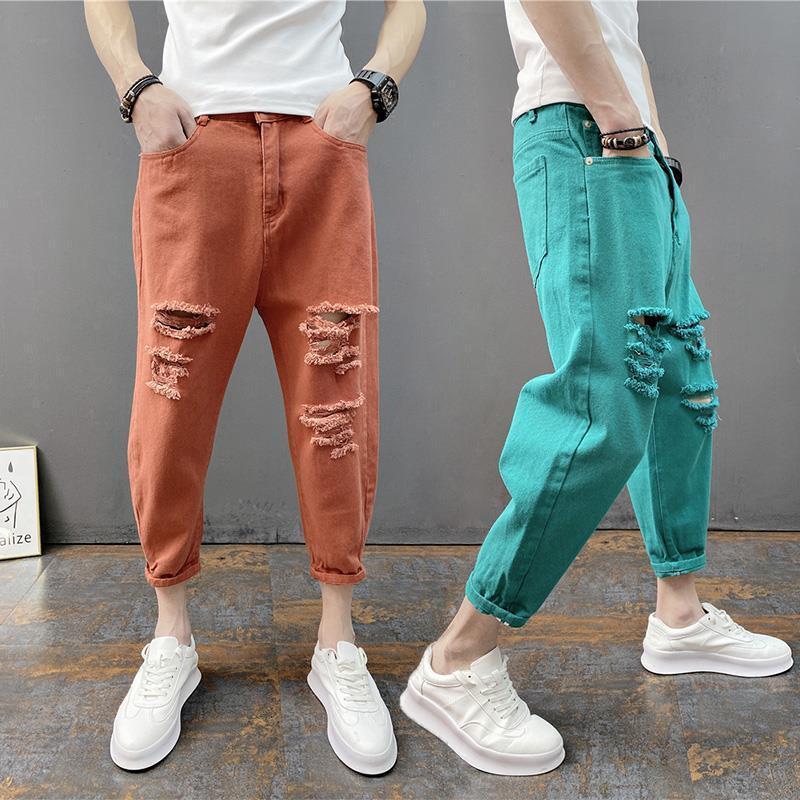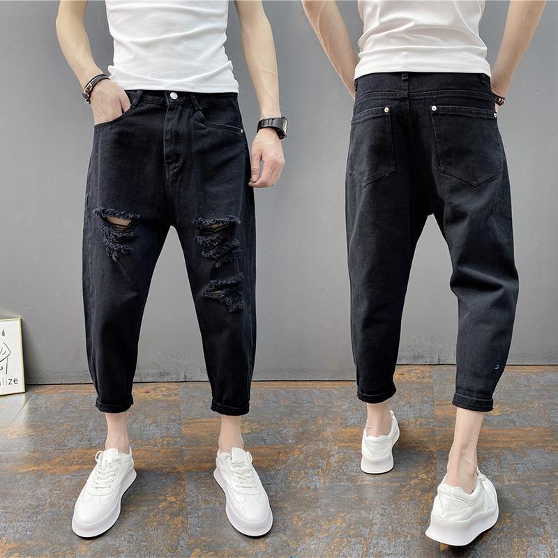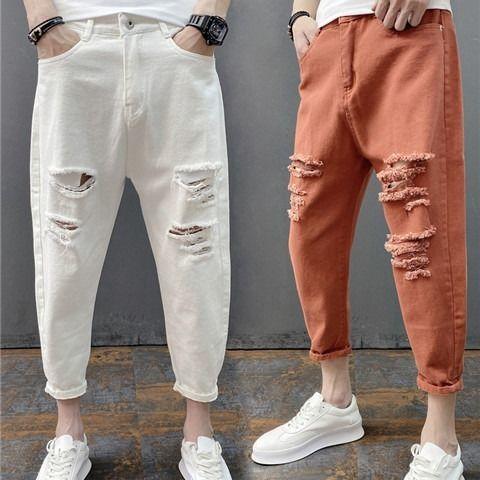 2025 Nuevos Jeans Skinny Rotos Grandes para Hombre Estilo Coreano Moderno Pantalones Siete Puntos Ajustados para Pareja Joggers Pantalones Harem