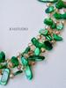 Cuentas de Resina Premium: Base verde esmeralda + cuentas facetadas de oro champán para un brillo refinado