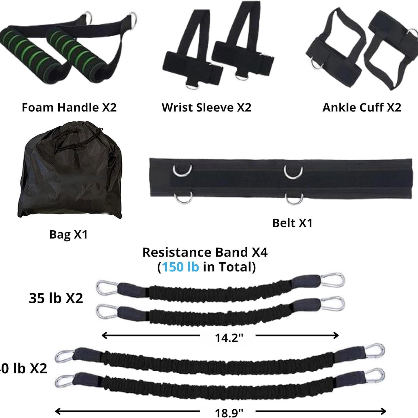 Hecho de materiales altamente elásticos y resistentes al desgaste, puede proporcionar una resistencia moderada y estable y fortalecer con precisión los músculos de las piernas y la cintura.. El diseño de ajuste único puede adaptarse a diferentes alturas y necesidades de intensidad de entrenamiento.. Las correas para las piernas se ajustan a la curva del tobillo, y las correas de fijación de la cintura son ajustadas y controlables, asegurando estabilidad y que no se resbalen durante el entrenamiento.. Puede mantener un buen ajuste incluso en movimientos dinámicos como golpes rápidos, paradas de emergencia y saltos.