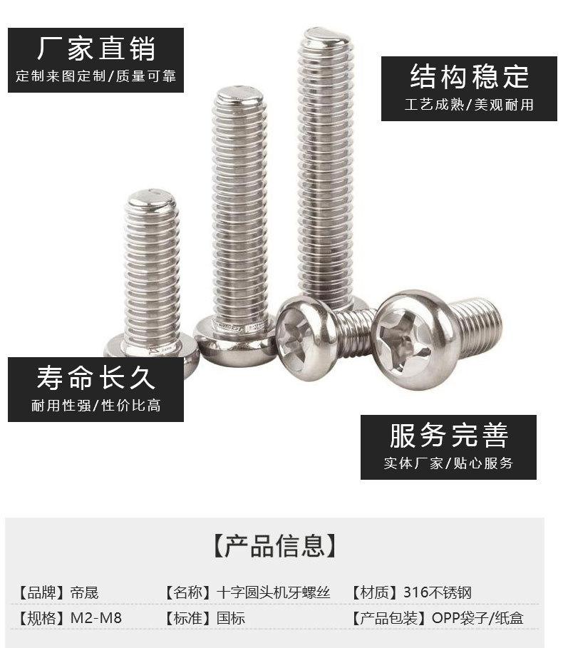 Acero Inoxidable 316 PM Tornillo de Cabeza Redonda Phillips Tornillo de Cabeza Pan Tornillo de Máquina M2.5M3M4M5M6M8