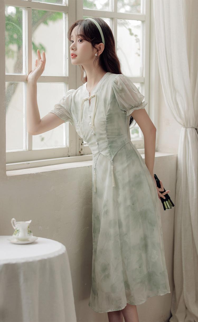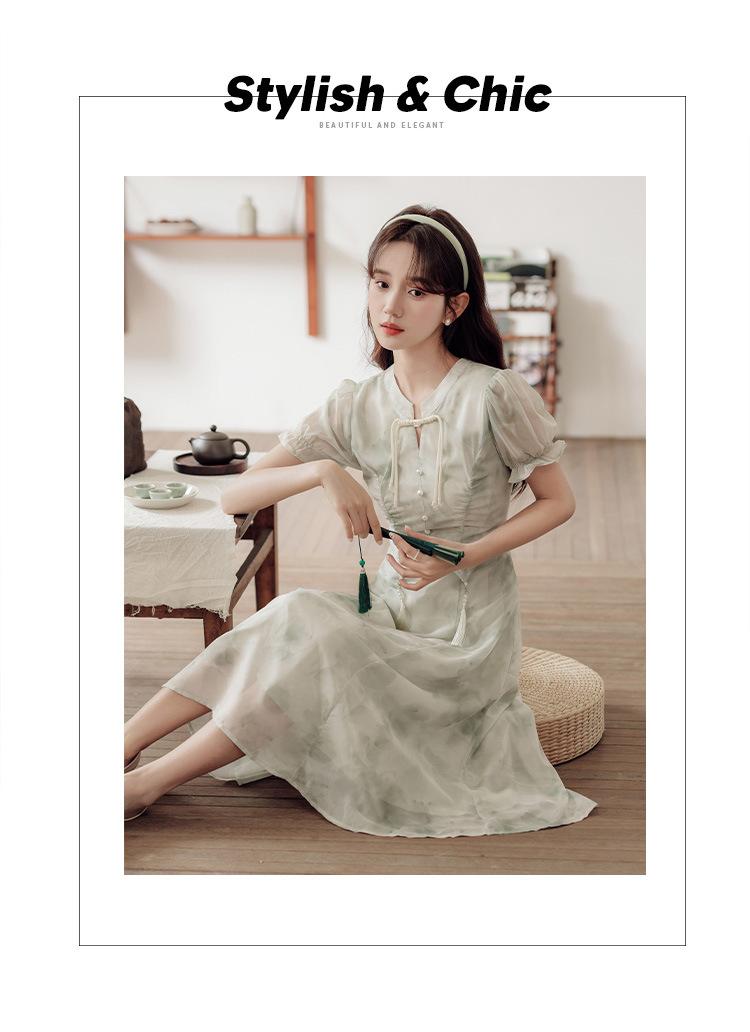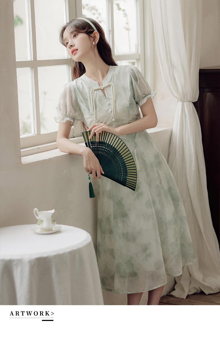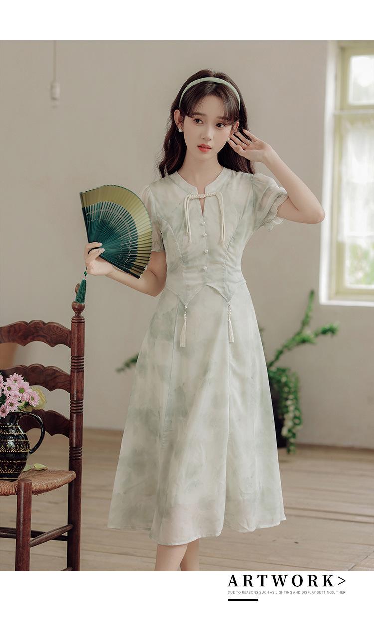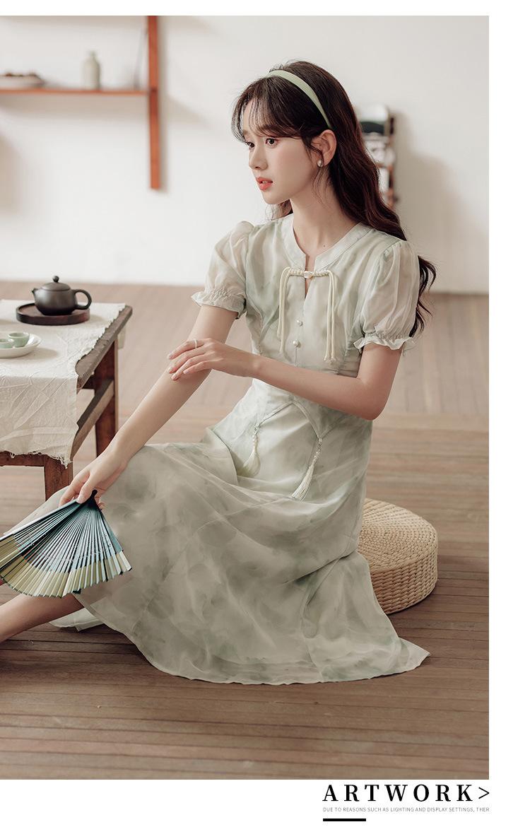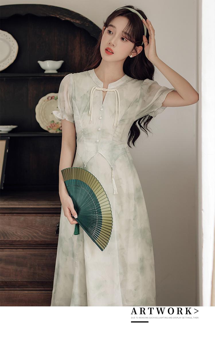 No menos de 145 Nuevo vestido de temperamento estampado estilo qipao chino mejorado