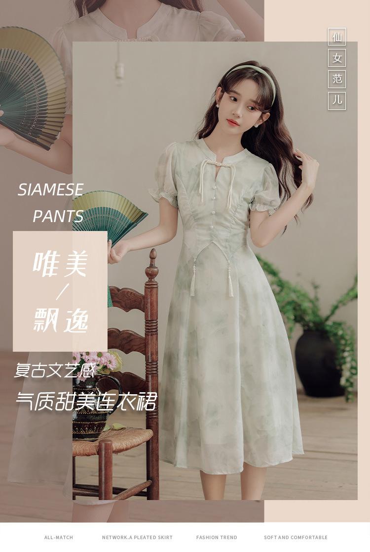 Ropa de Mujer 2025 Verano Trece Líneas Nuevo Retro Nuevo Estilo Chino Estilo Cheongsam Mejorado Vestido Elegante Estampado y Dulce