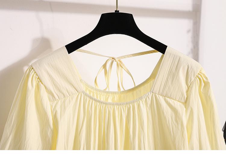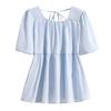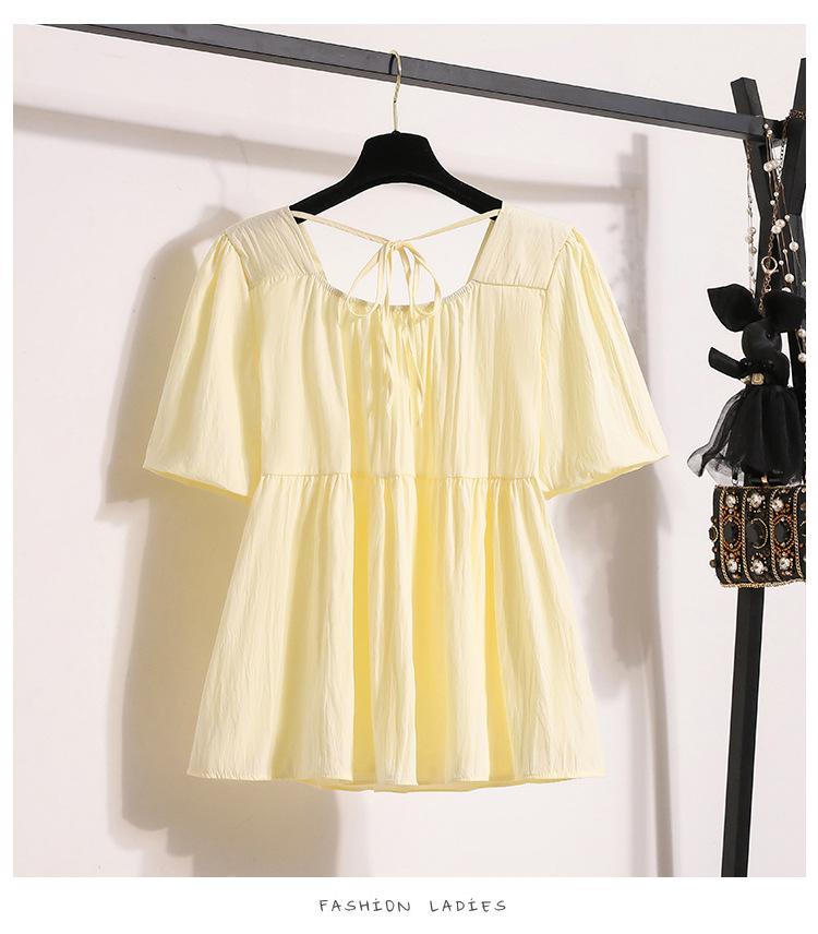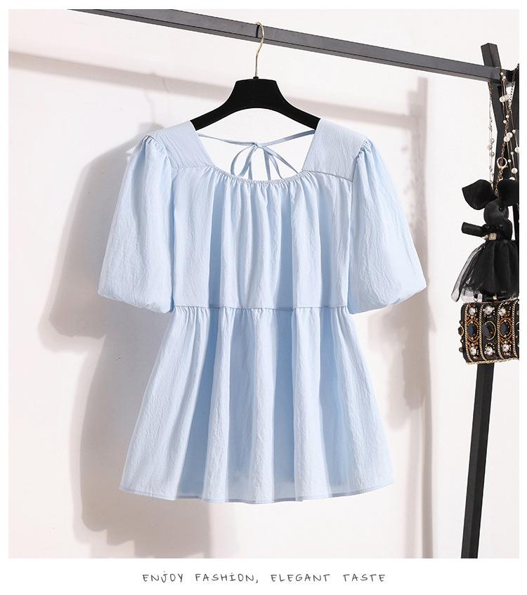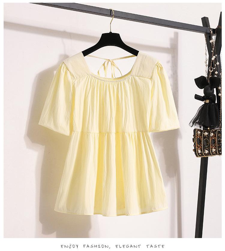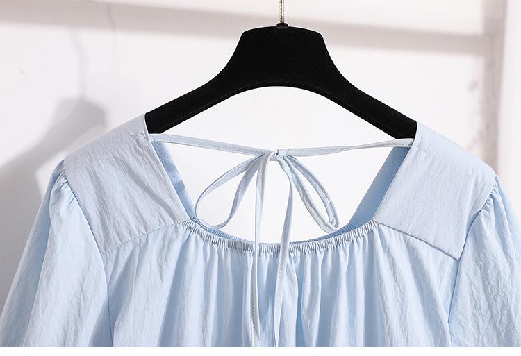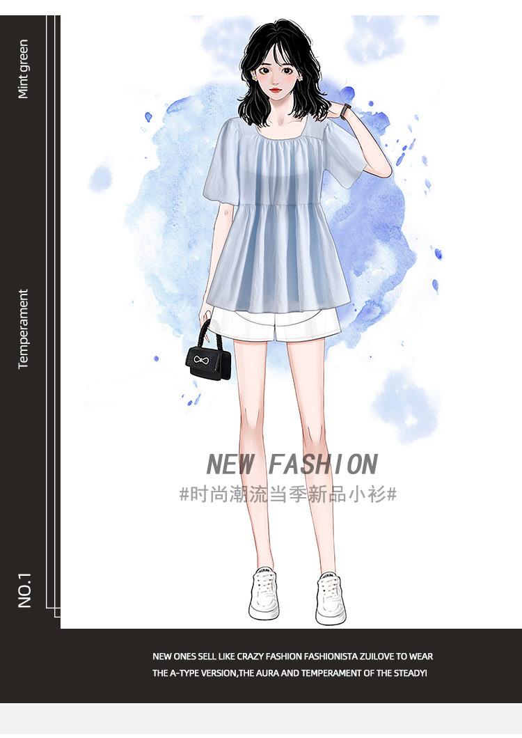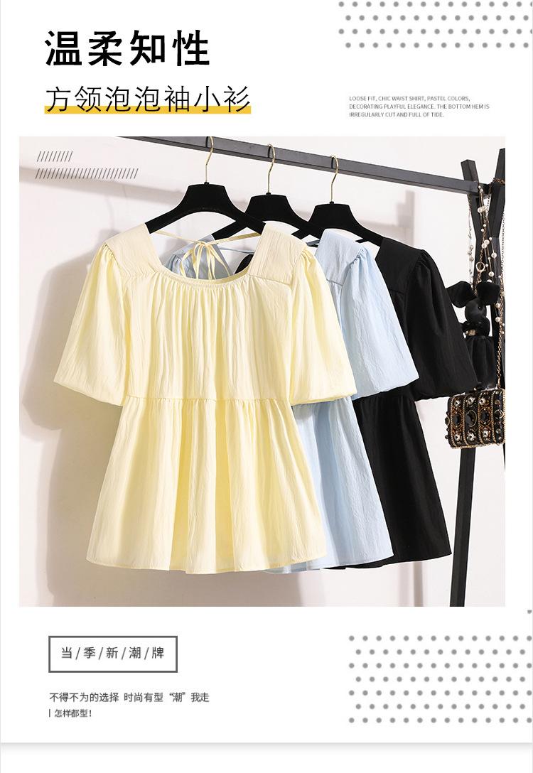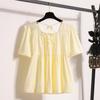 Foto Real de Camisa Francesa Dulce de Cuello Cuadrado para Mujer Verano 2025 Nueva Top Suelto y Versátil Chic de Manga Abullonada