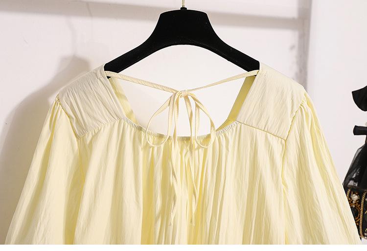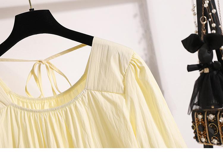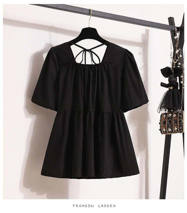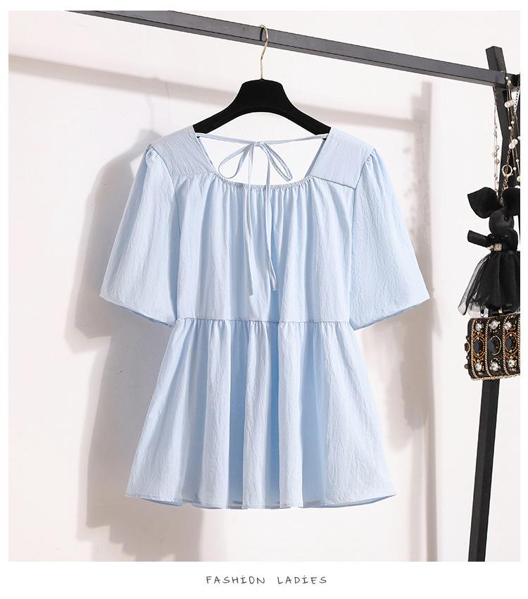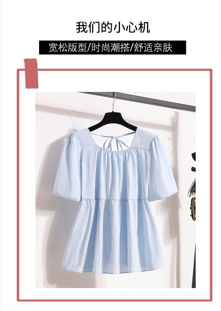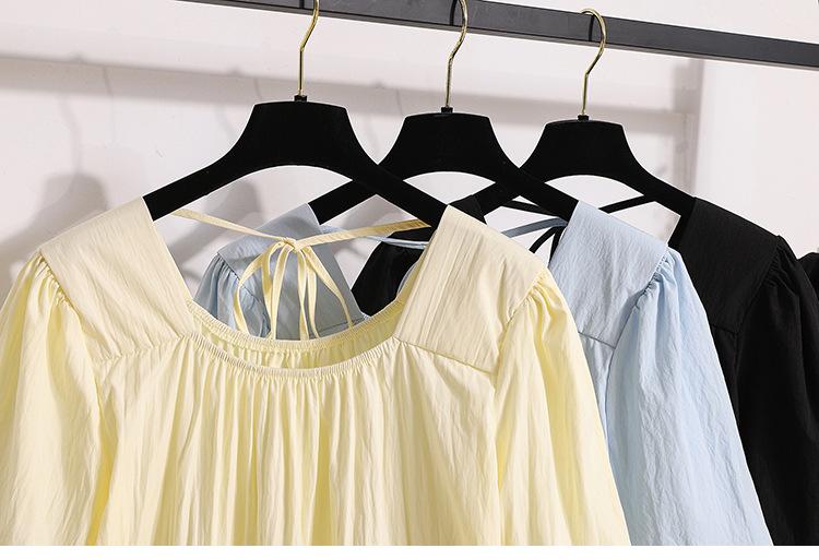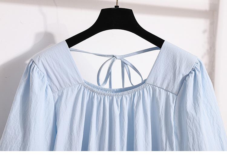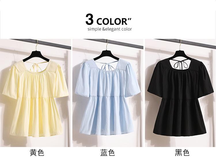 Foto Real de Camisa Francesa Dulce de Cuello Cuadrado para Mujer Verano 2025 Nueva Top Suelto y Versátil Chic de Manga Abullonada