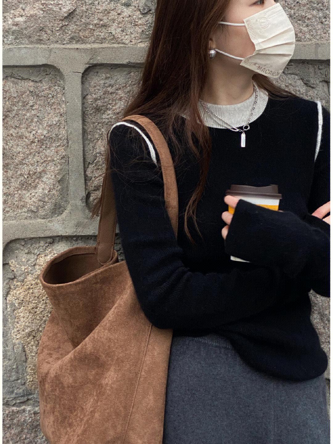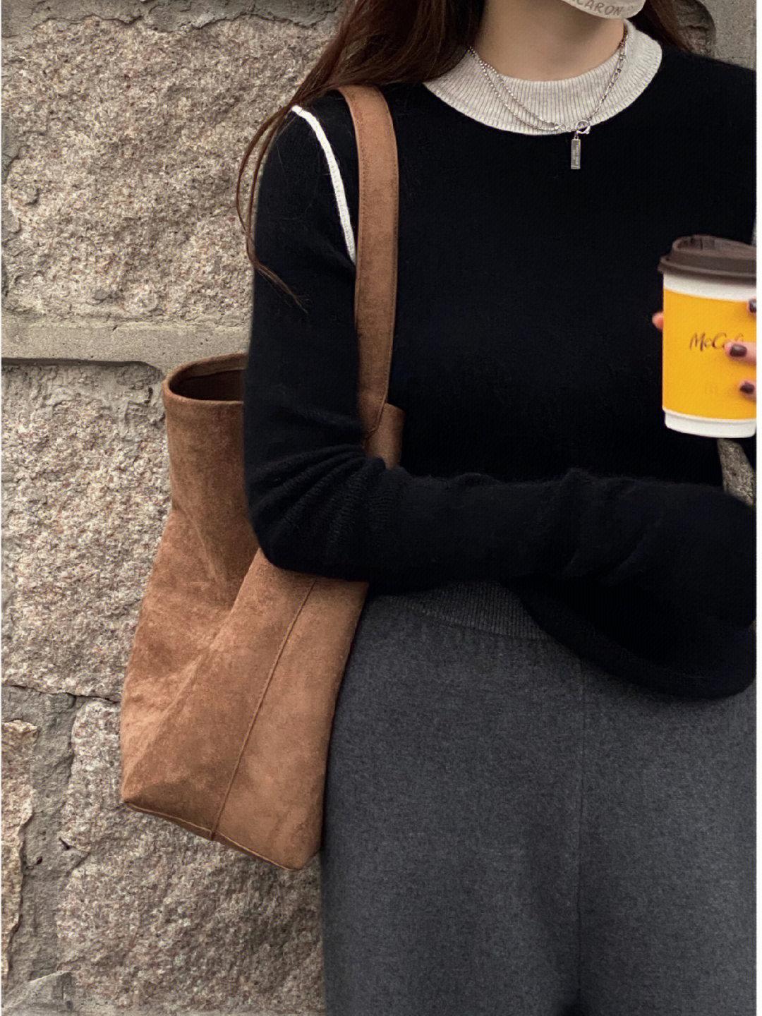 Camiseta Interior de Cuello Redondo para Mujer Otoño e Invierno Camiseta de Punto Gruesa Suéter Ajustado Camiseta de Punto Top de Manga Larga