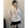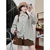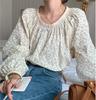 Estilo Coreano Nuevo Cuello Redondo Encaje Bordado de Industria Pesada Holgado Edición Grande Cárdigan para Mujer Camisa de Manga Larga