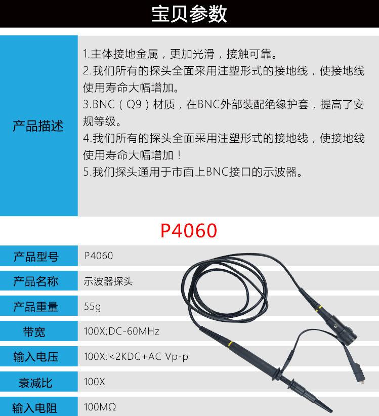 100:1 sonda de osciloscopio P4 100 100 MHZ tensión soportada 2KV sonda de alta tensión sonda/sonda/sonda