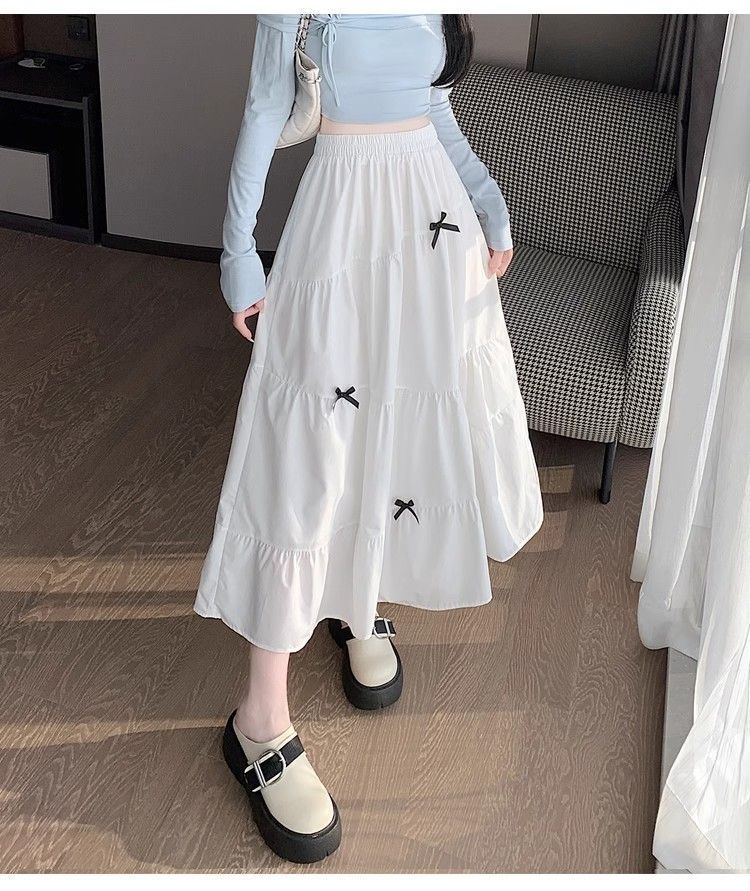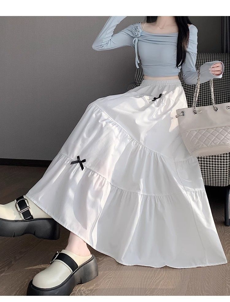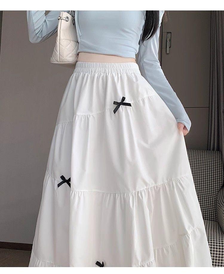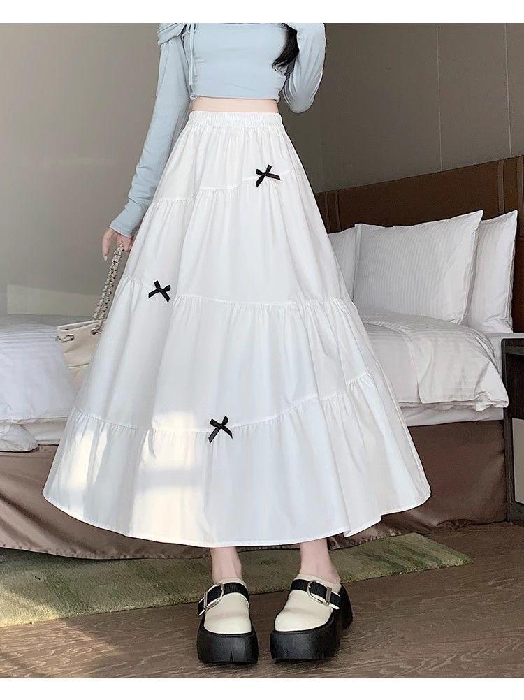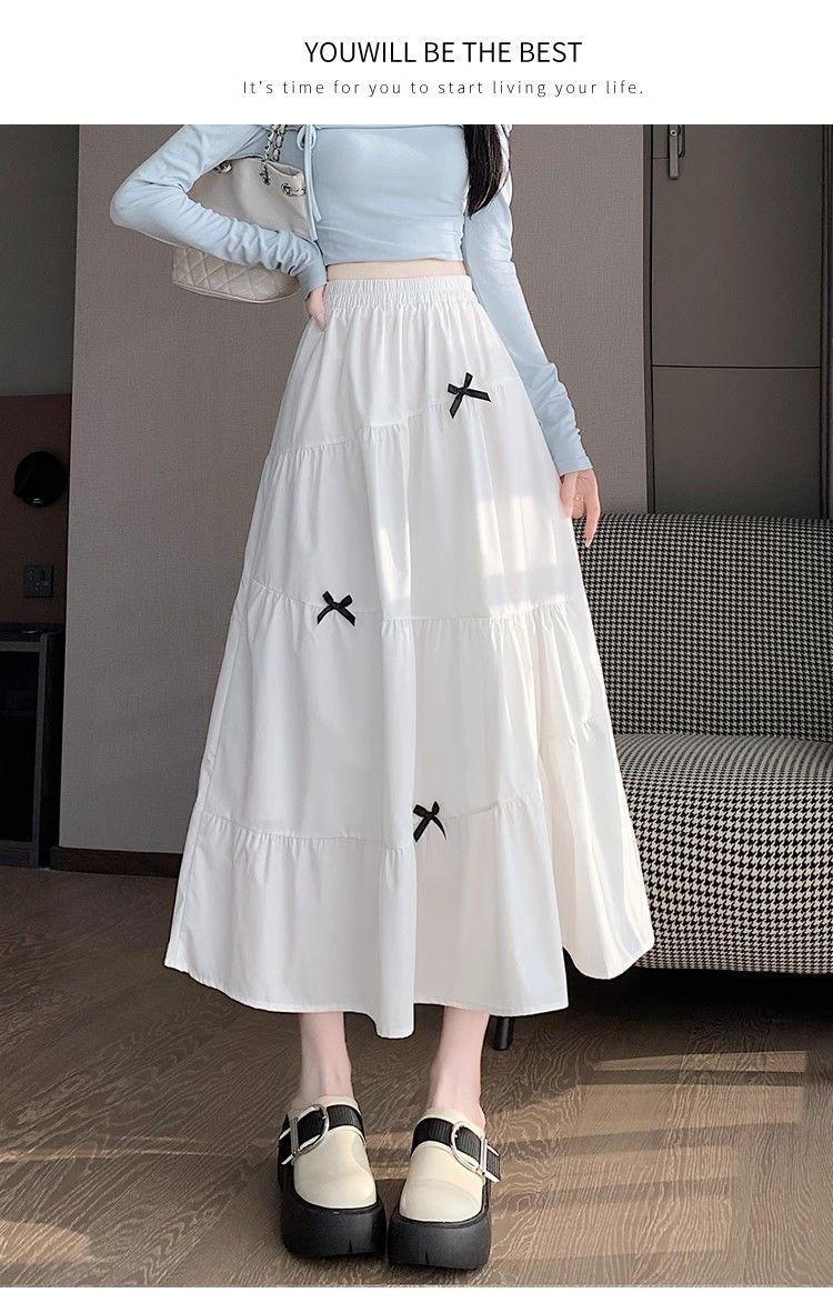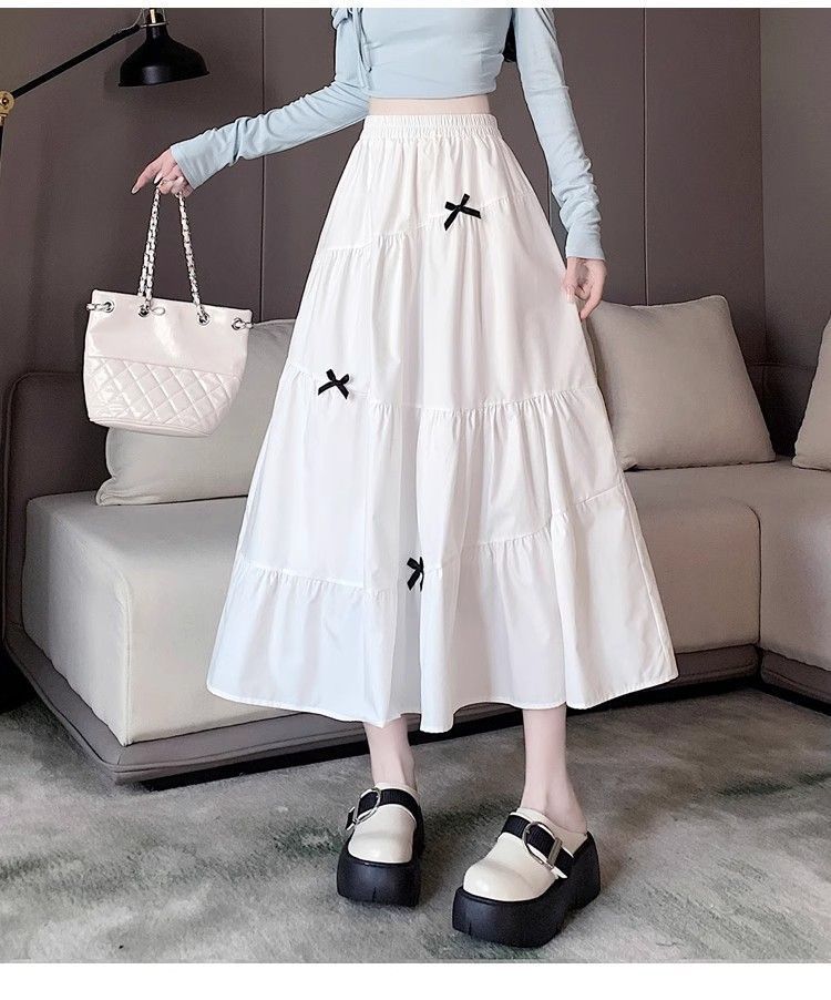 Falda Midi con Lazo Estilo Francés Primavera y Otoño 2025 Petite Cintura Alta Línea A Falda Abullonada Adelgazante Grande Acampanada Paraguas