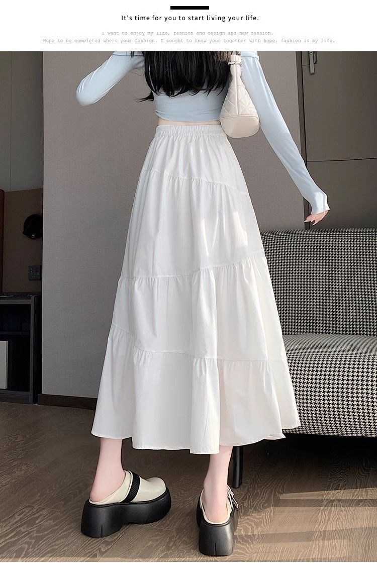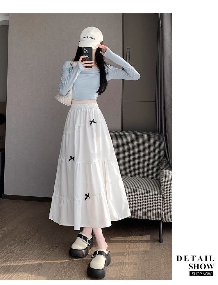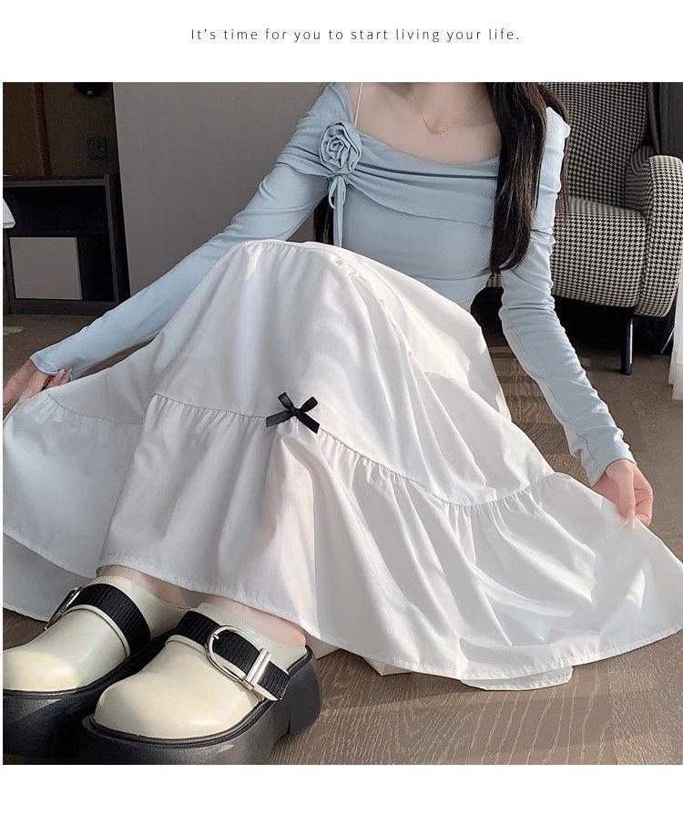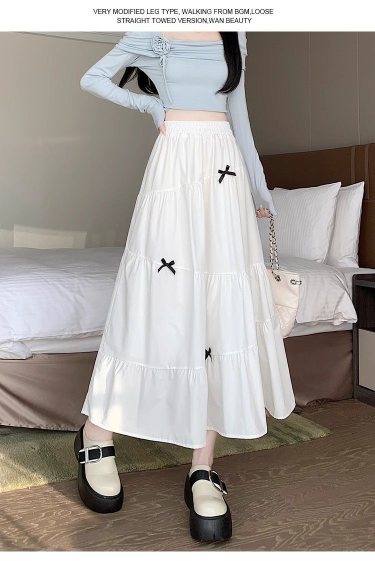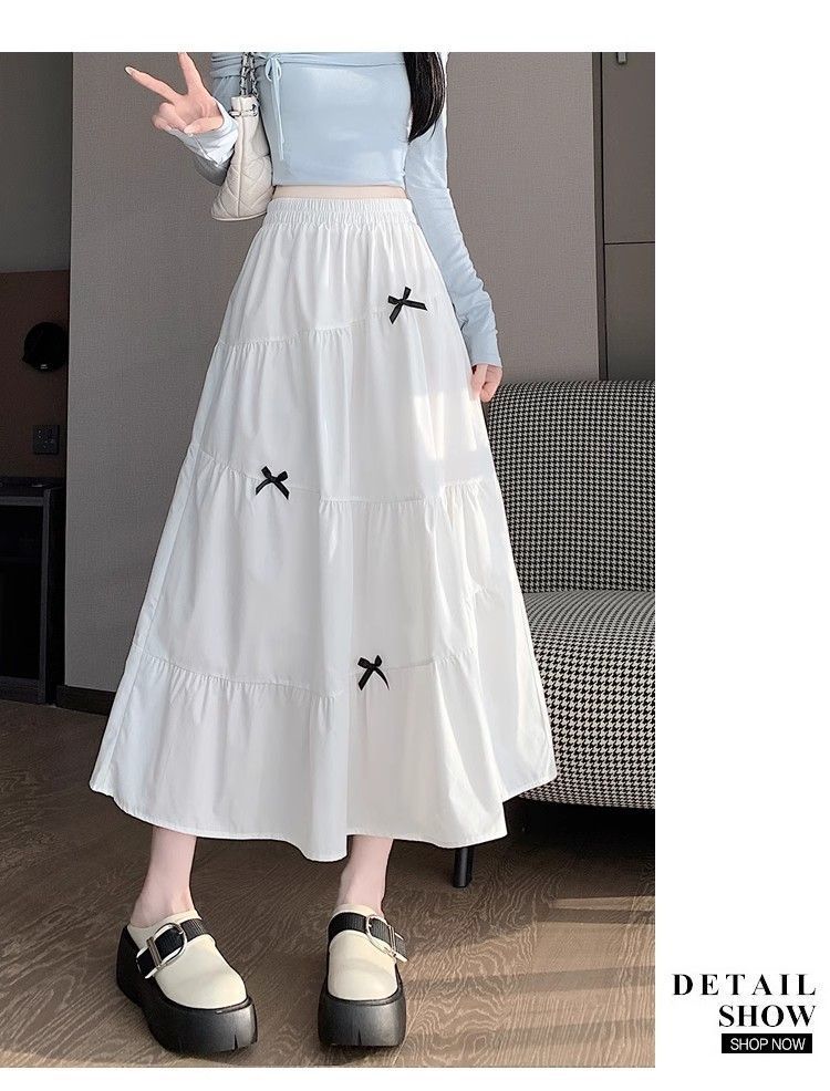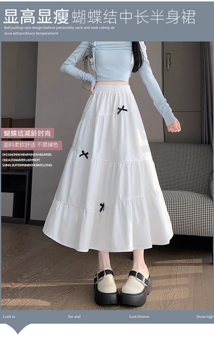 Falda Midi con Lazo Estilo Francés Primavera y Otoño 2025 Petite Cintura Alta Línea A Falda Abullonada Adelgazante Grande Acampanada Paraguas