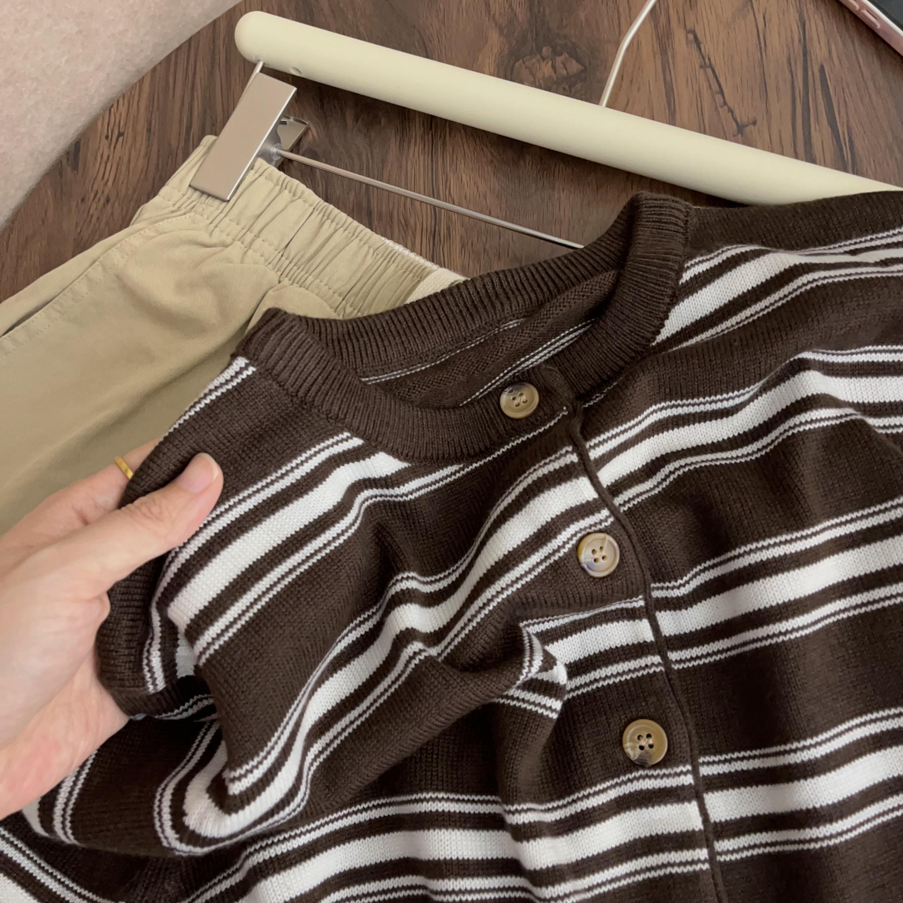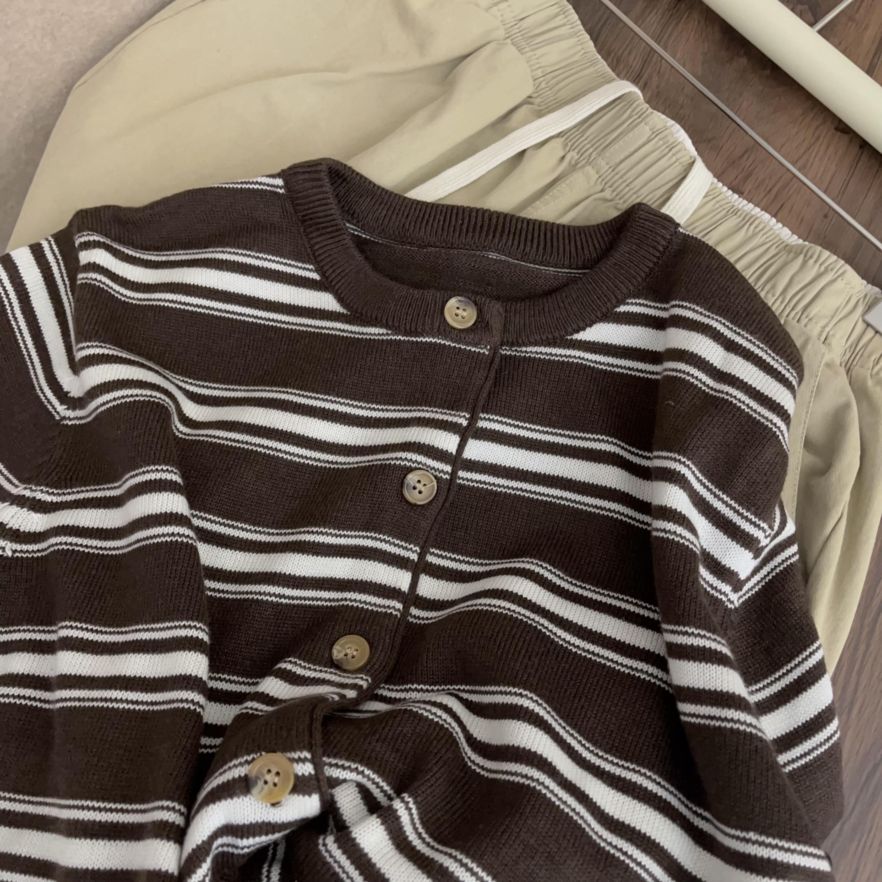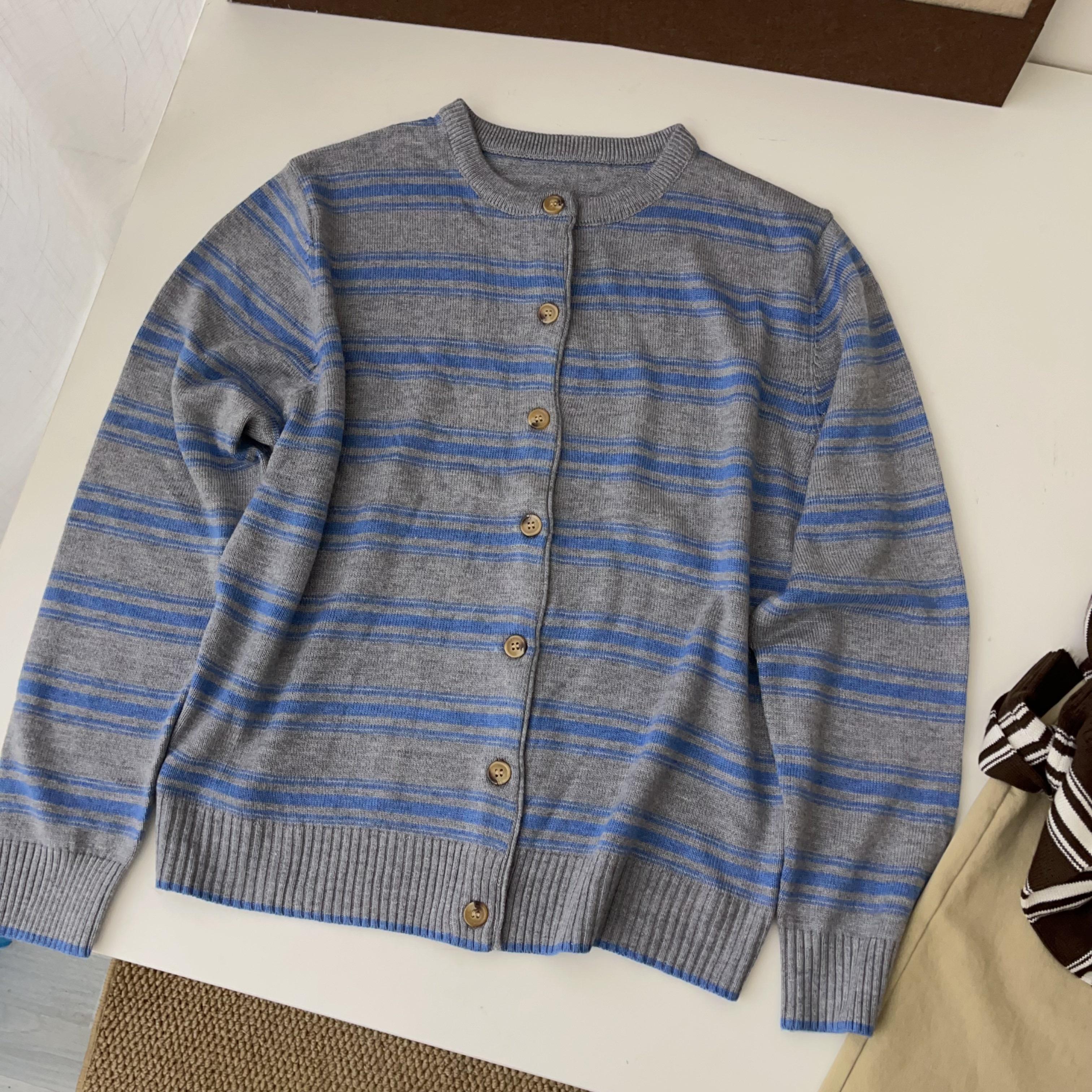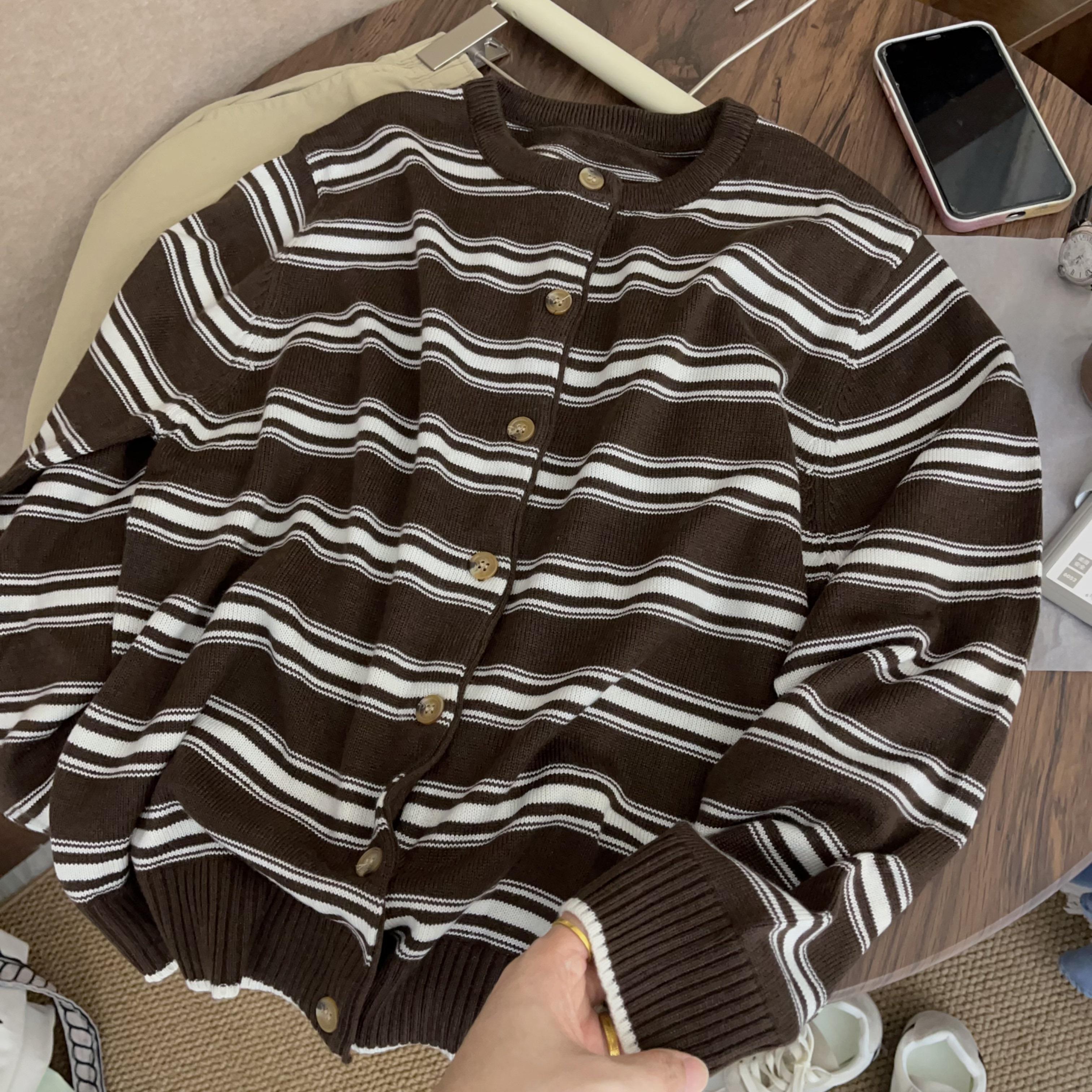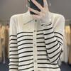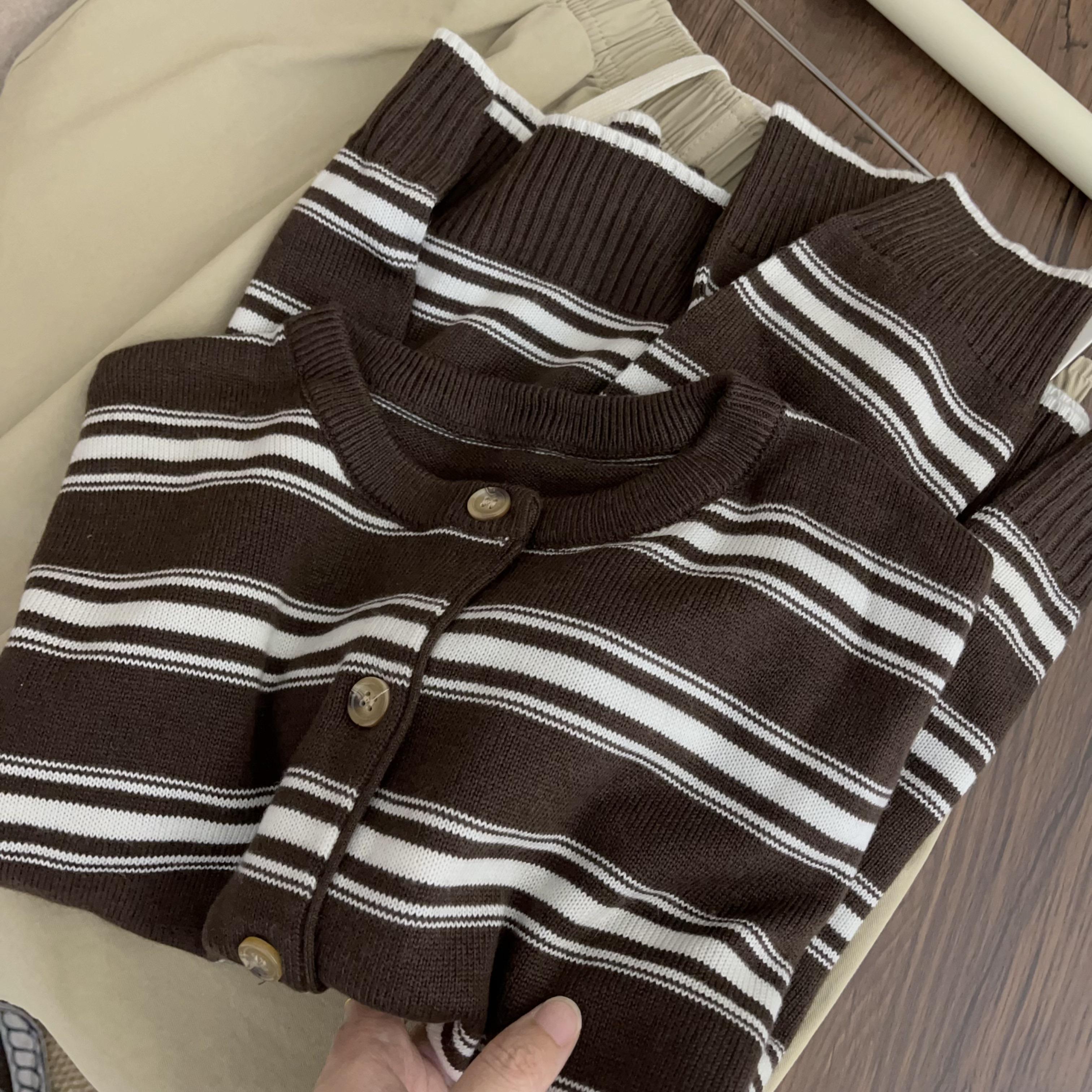 Cárdigan de Punto Rayado Estilo Otoño Temprano Abrigo de Manga Larga para Mujer Top Temperamental con Bloque de Color Rayado Ropa Exterior para Superponer