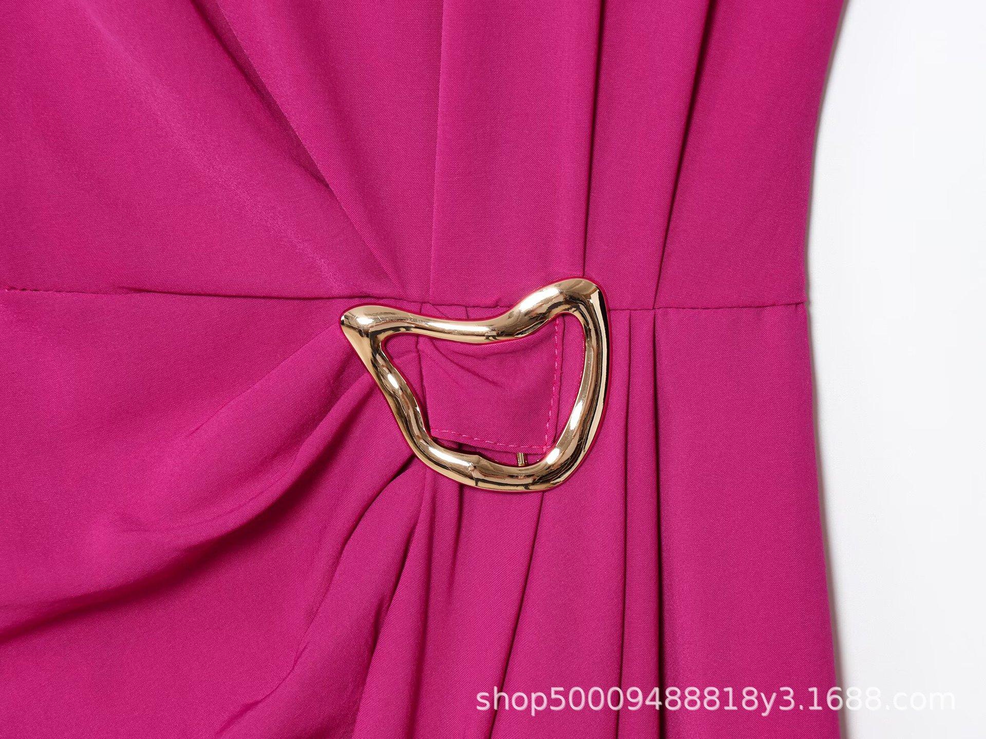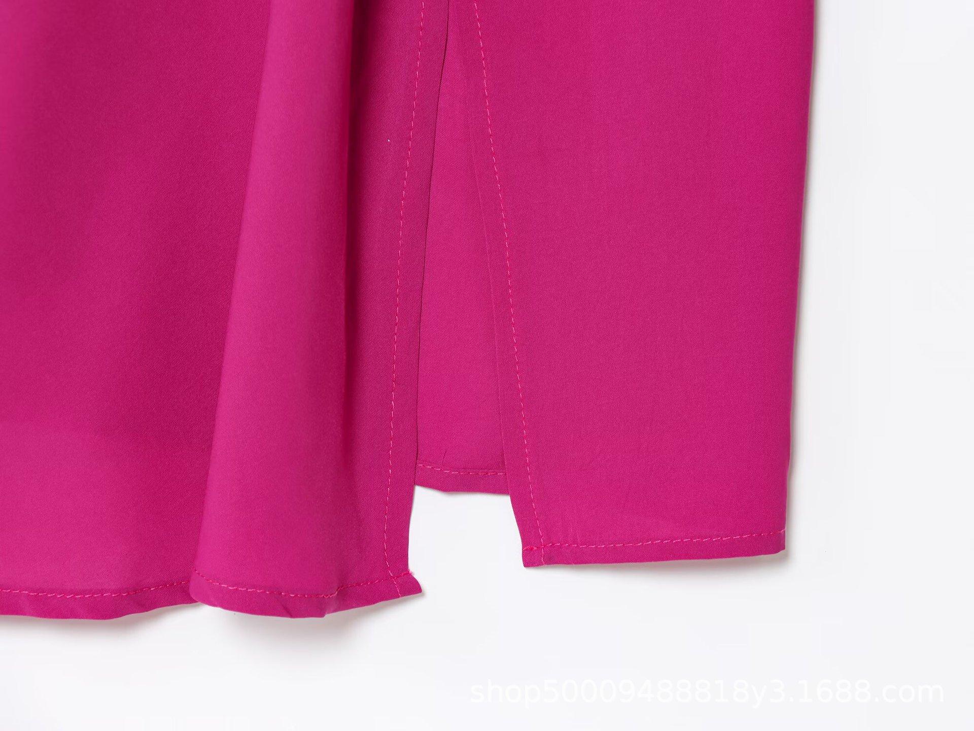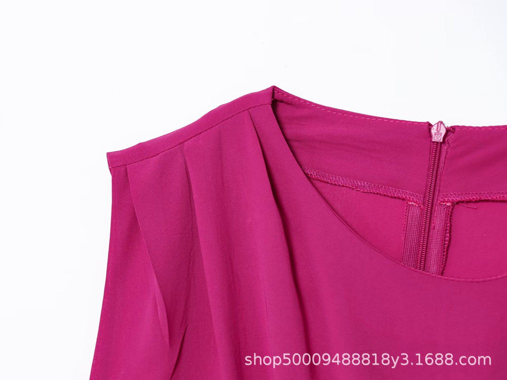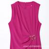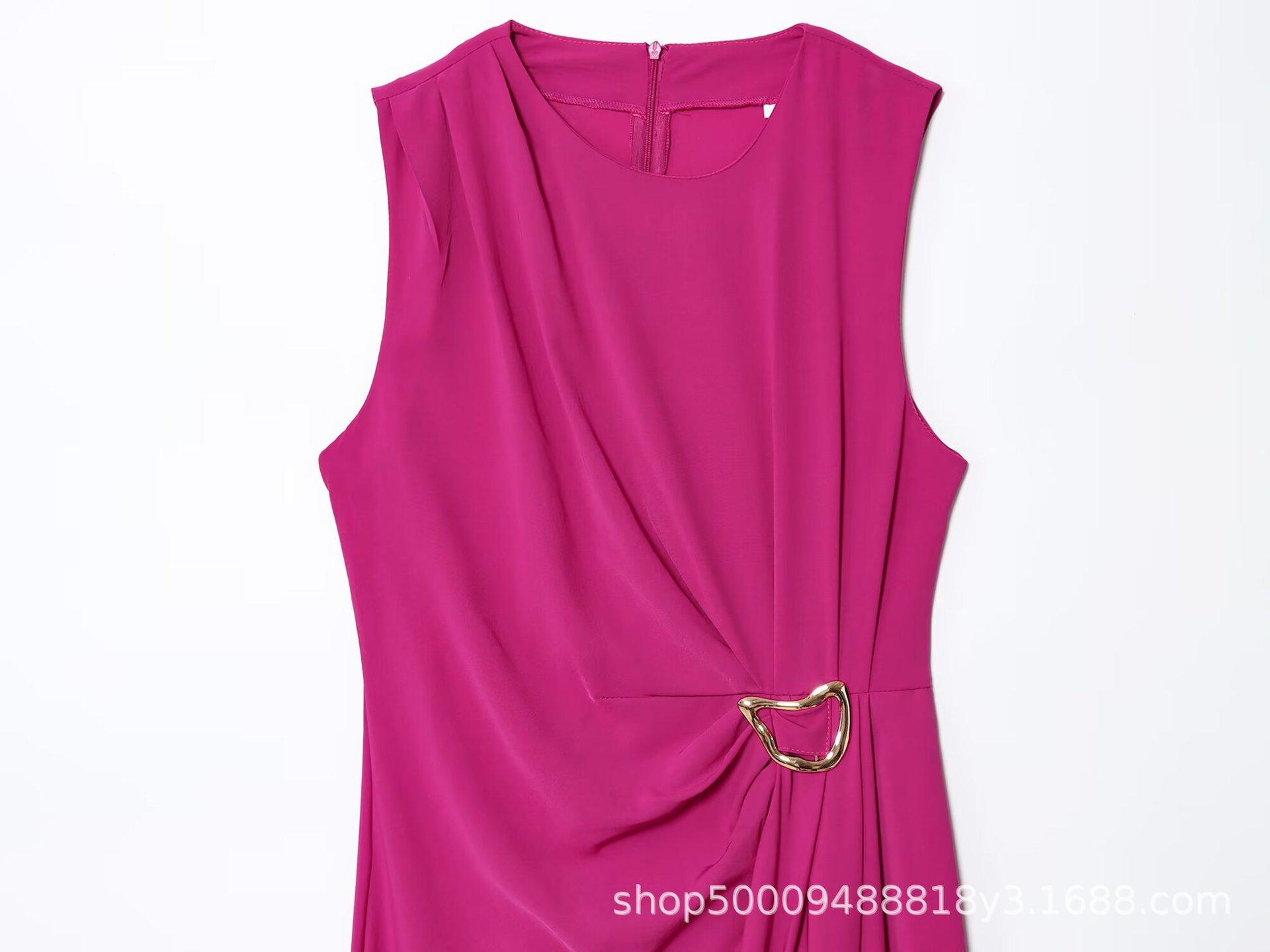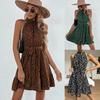 Amazon Mayoreo Verano Nuevo Jersey de Mujer Cuello Redondo Sin Mangas Decoración de Volantes Botón Abertura Vestido Largo