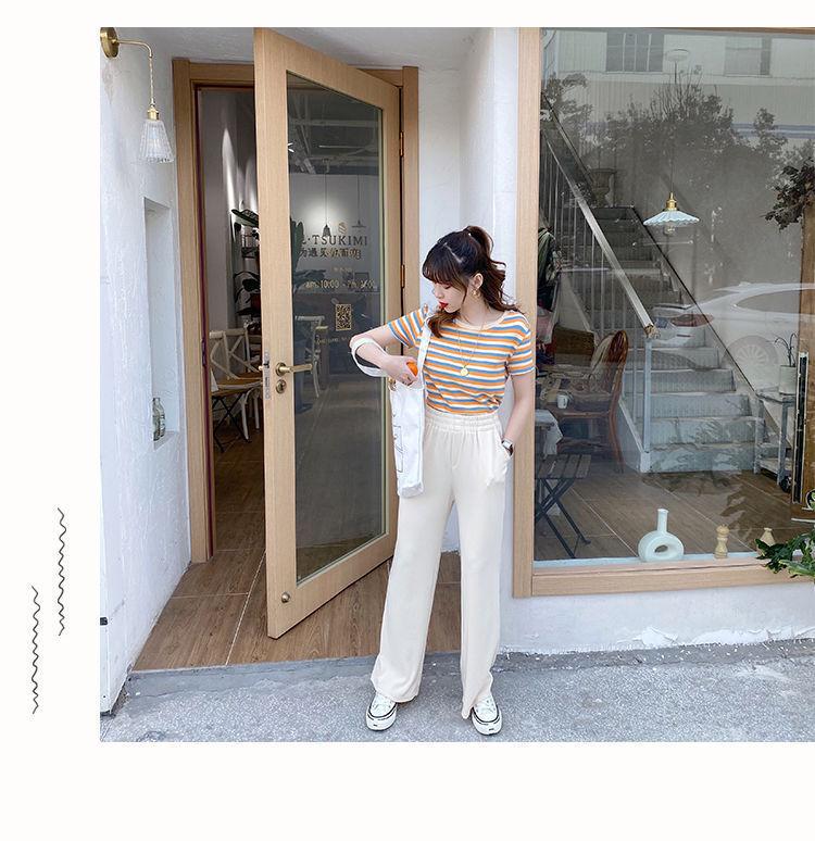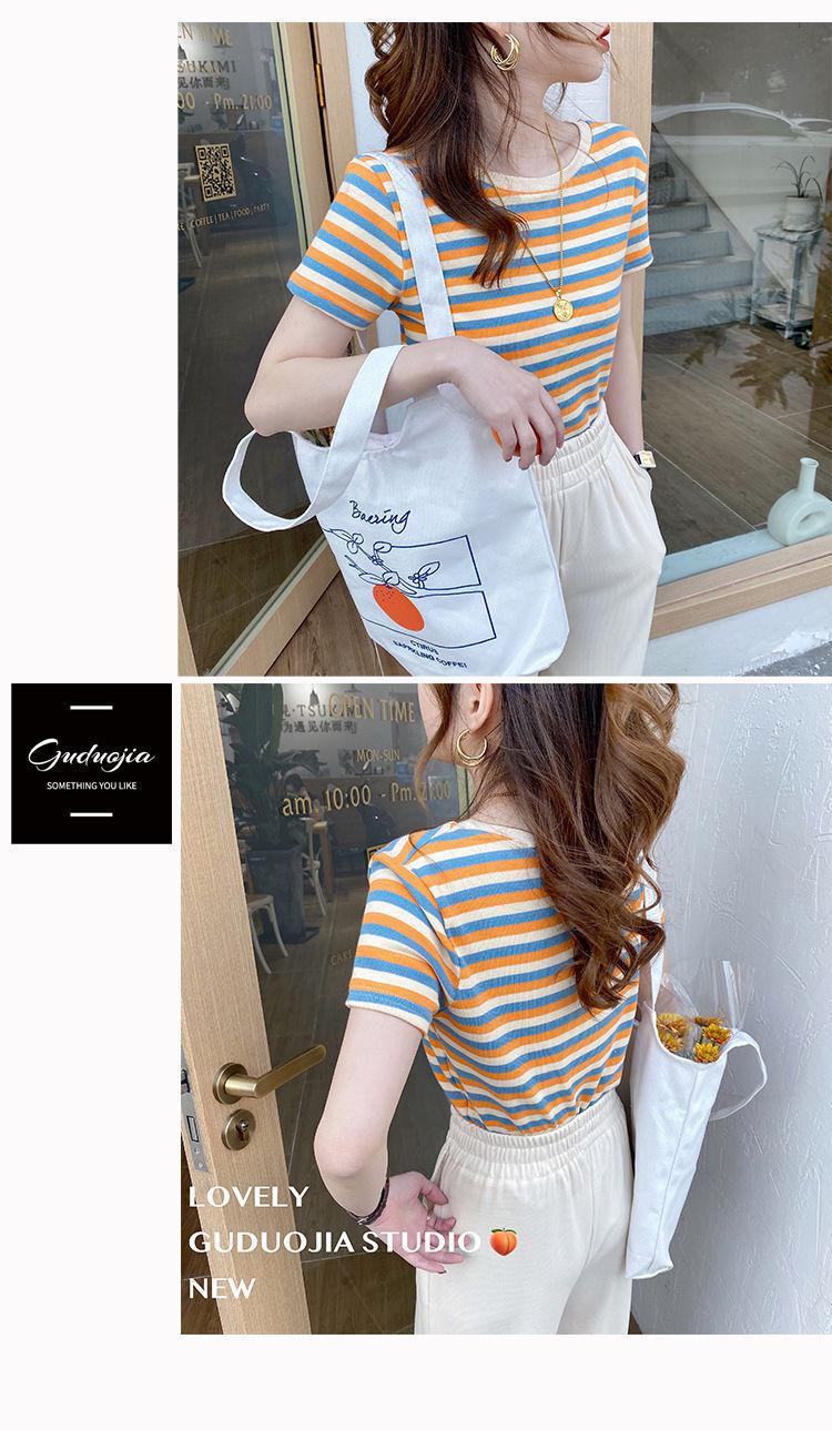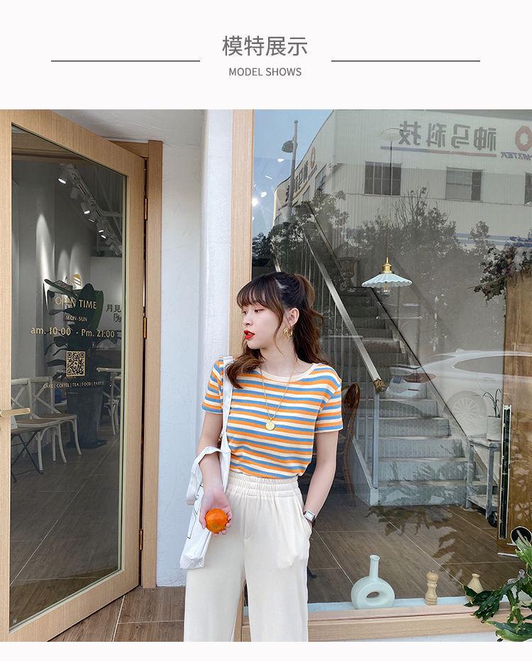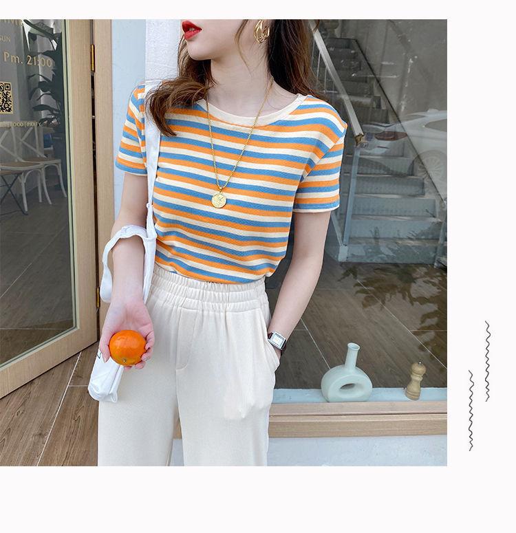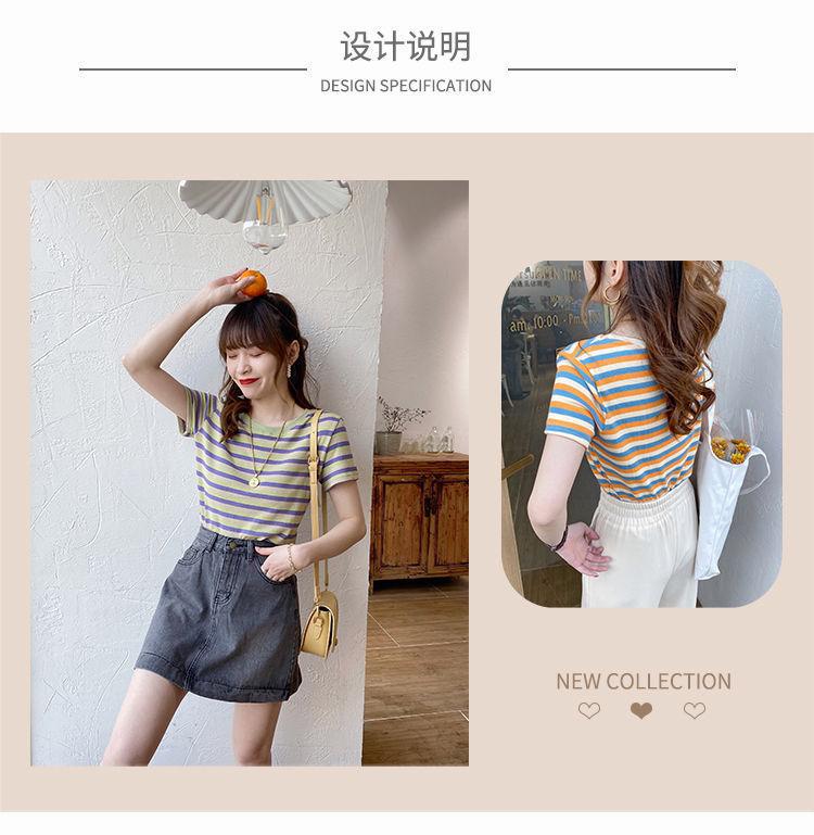 Camiseta de manga corta a rayas de celebridades de Internet para mujer, novedad de verano 2021, tops ajustados para mujer, camiseta de fondo de versión coreana para estudiantes