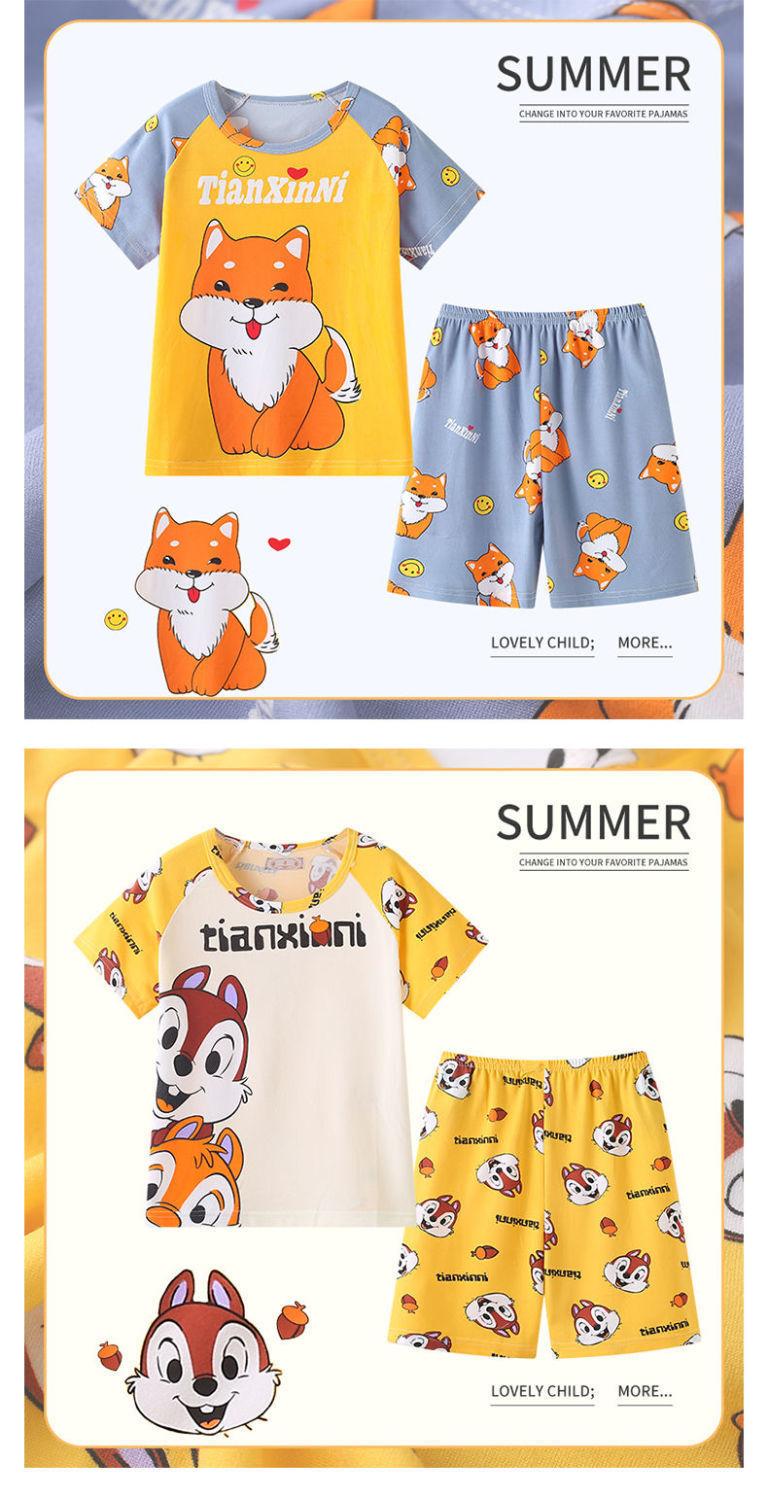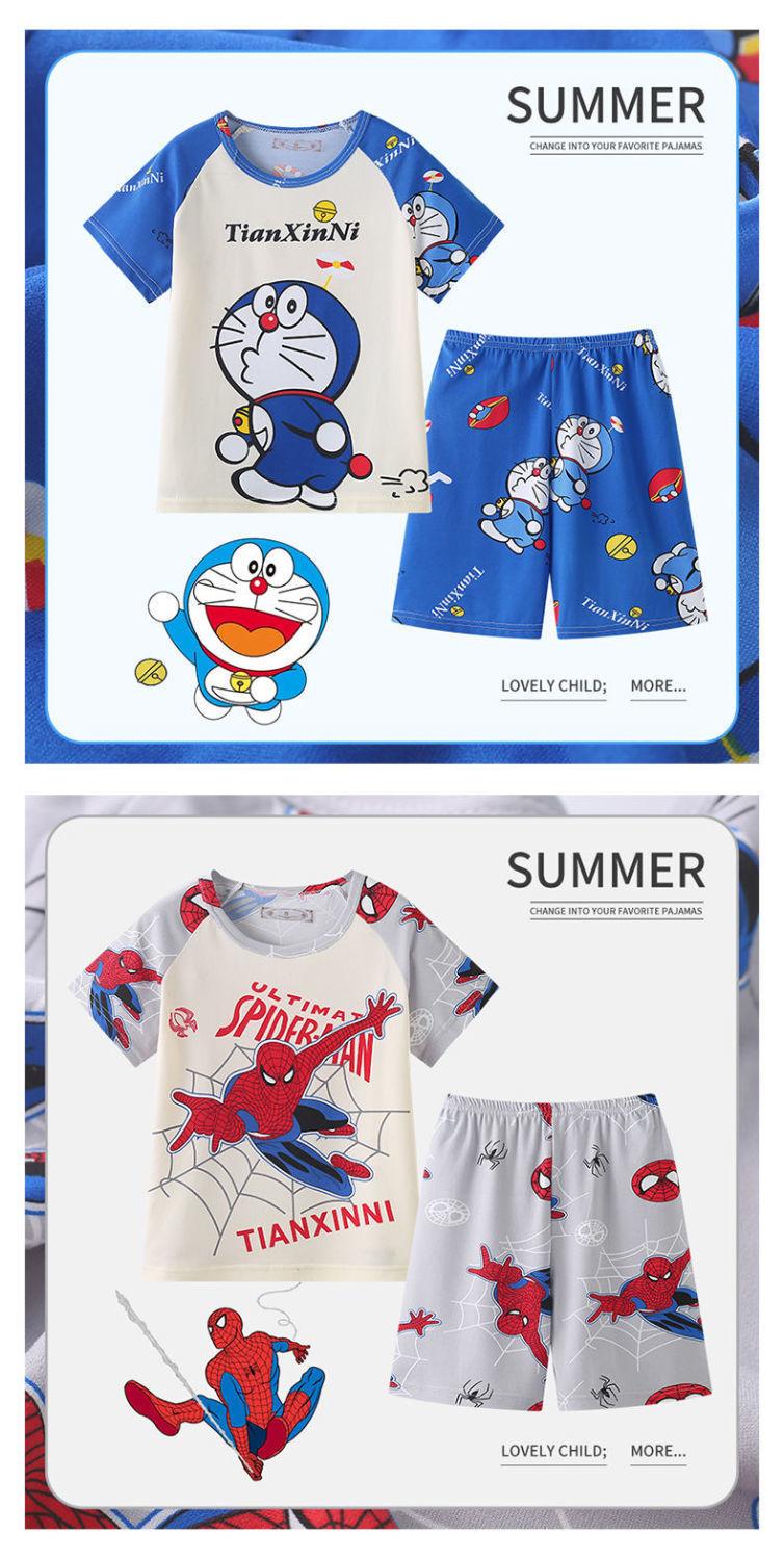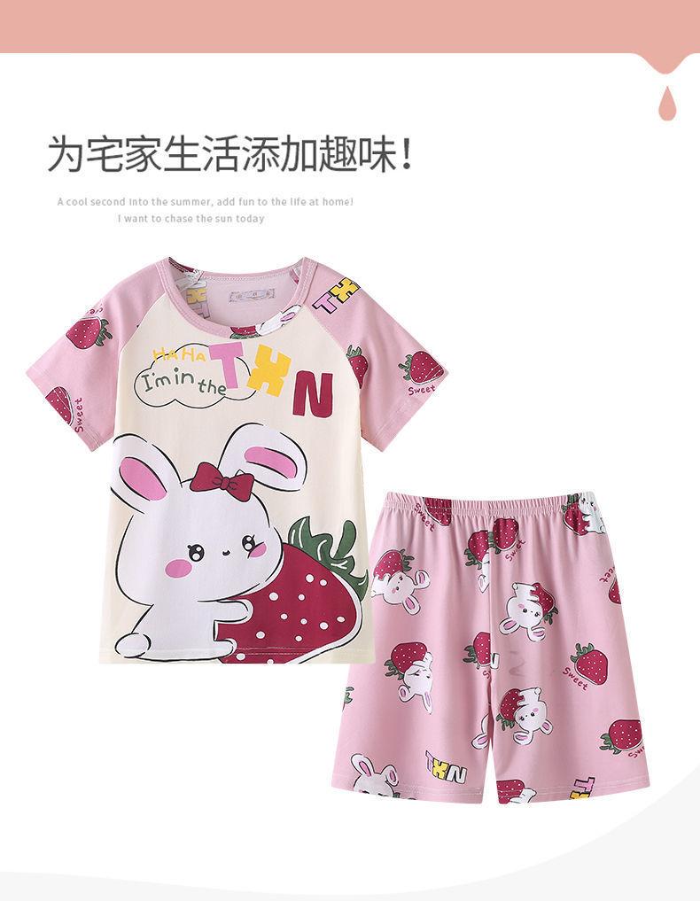 Pijamas de verano delgadas para niños, ropa de aire acondicionado para niñas y niños, ropa para el hogar de manga corta para niños medianos y grandes