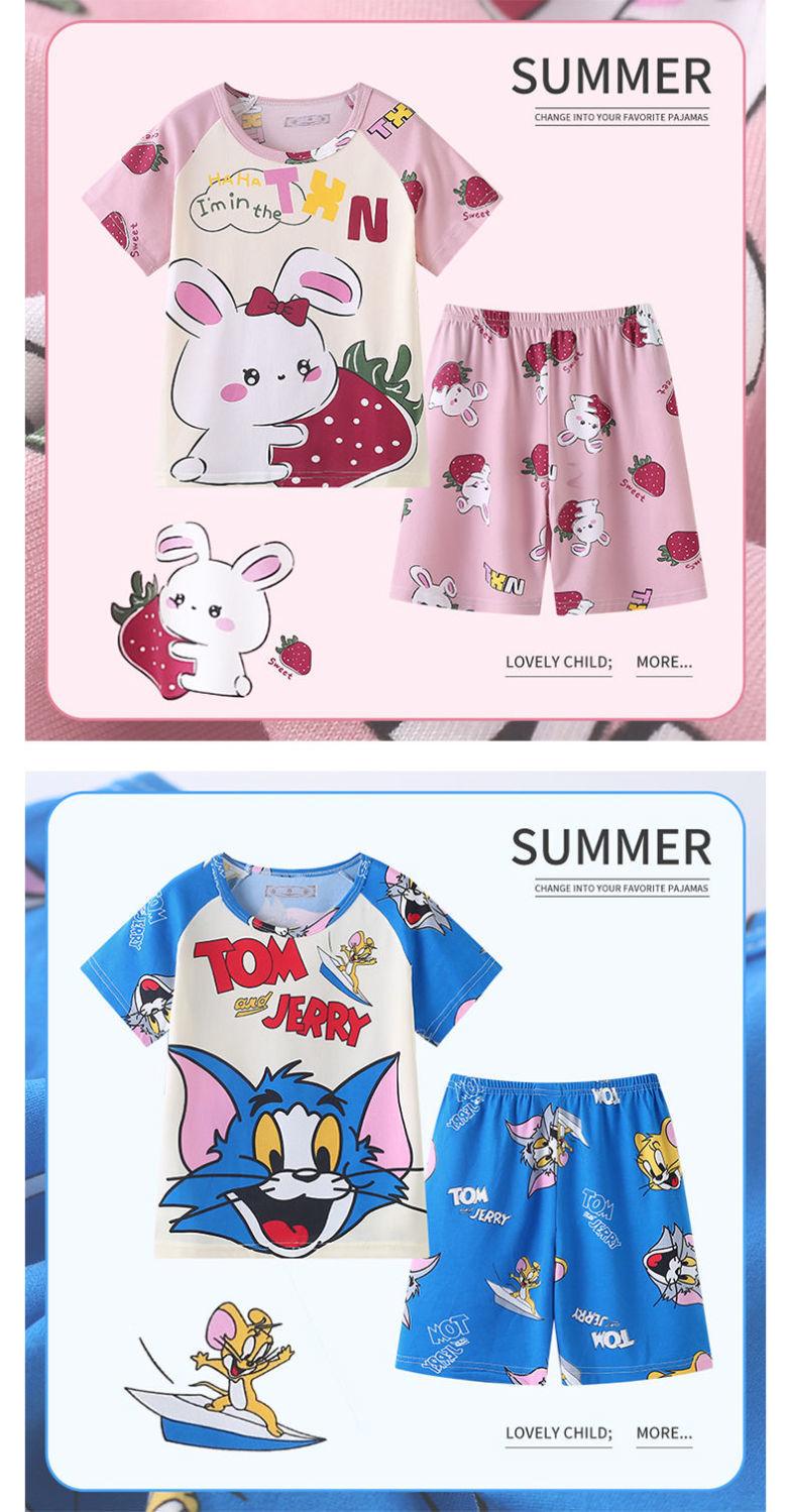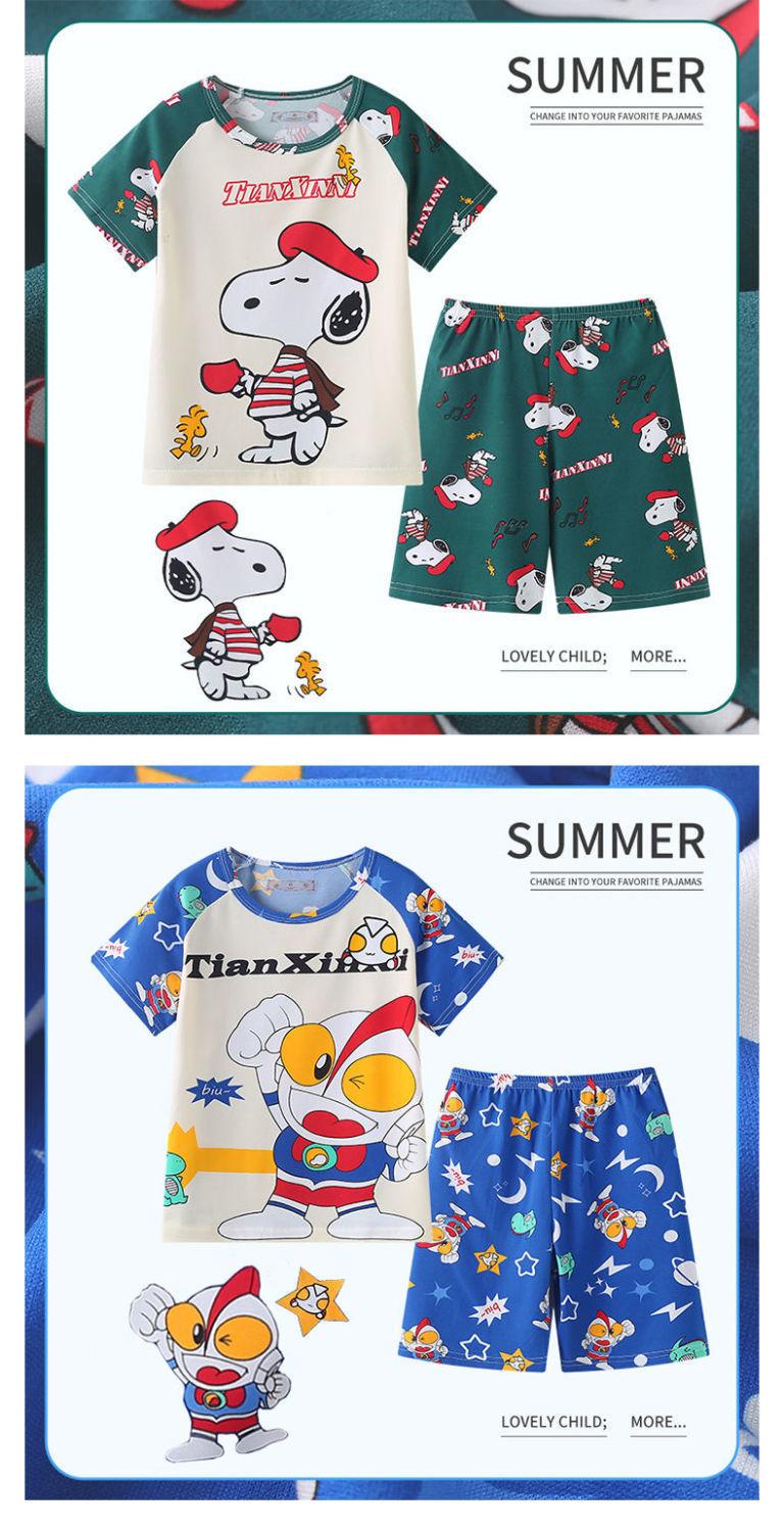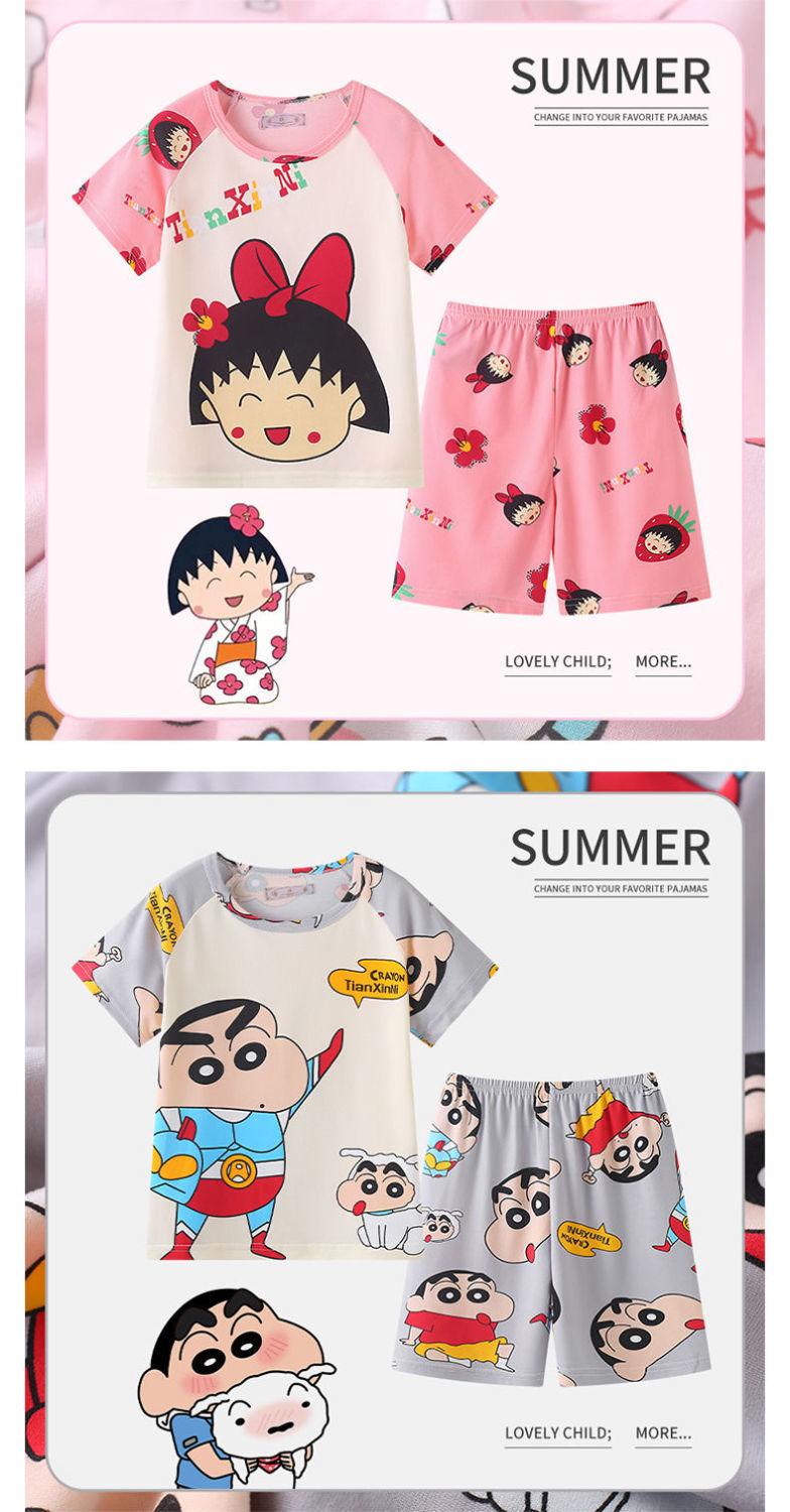 Pijamas de verano delgadas para niños, ropa de aire acondicionado para niñas y niños, ropa para el hogar de manga corta para niños medianos y grandes