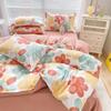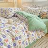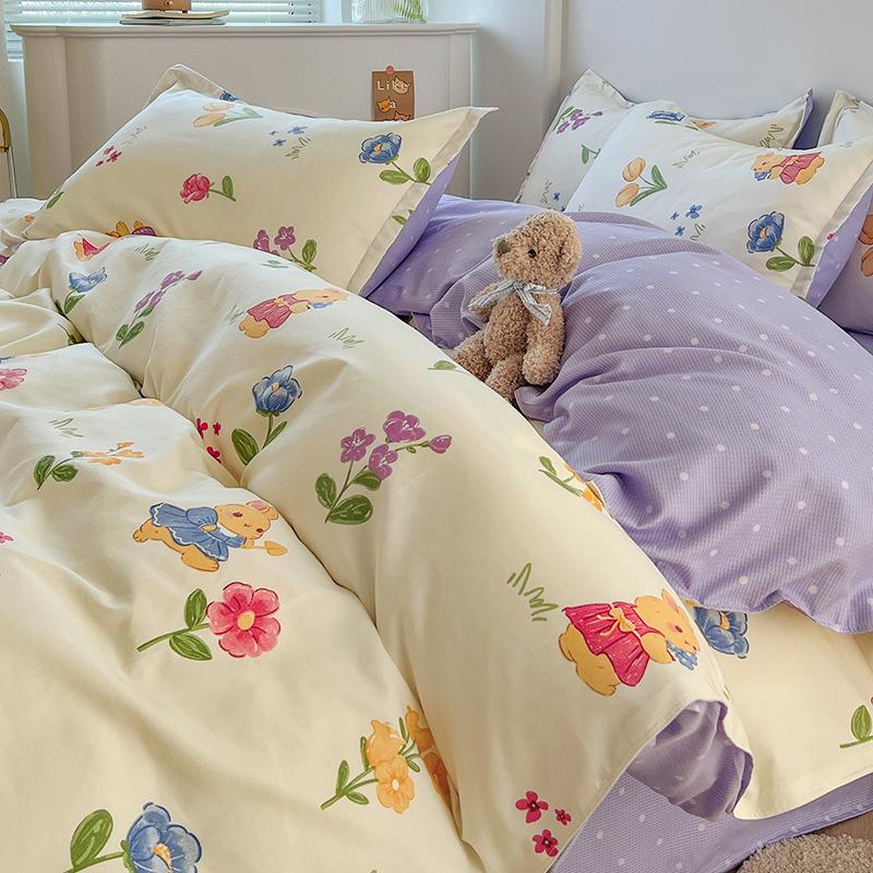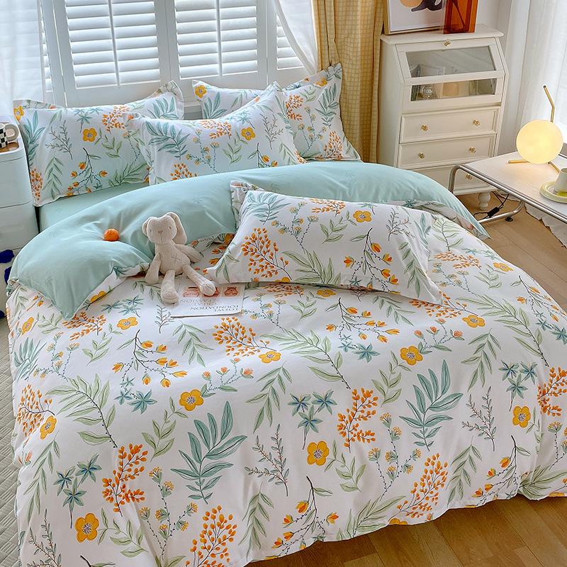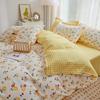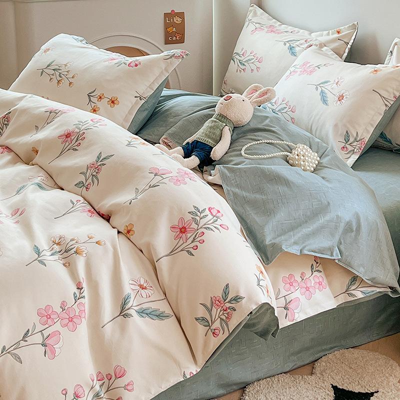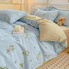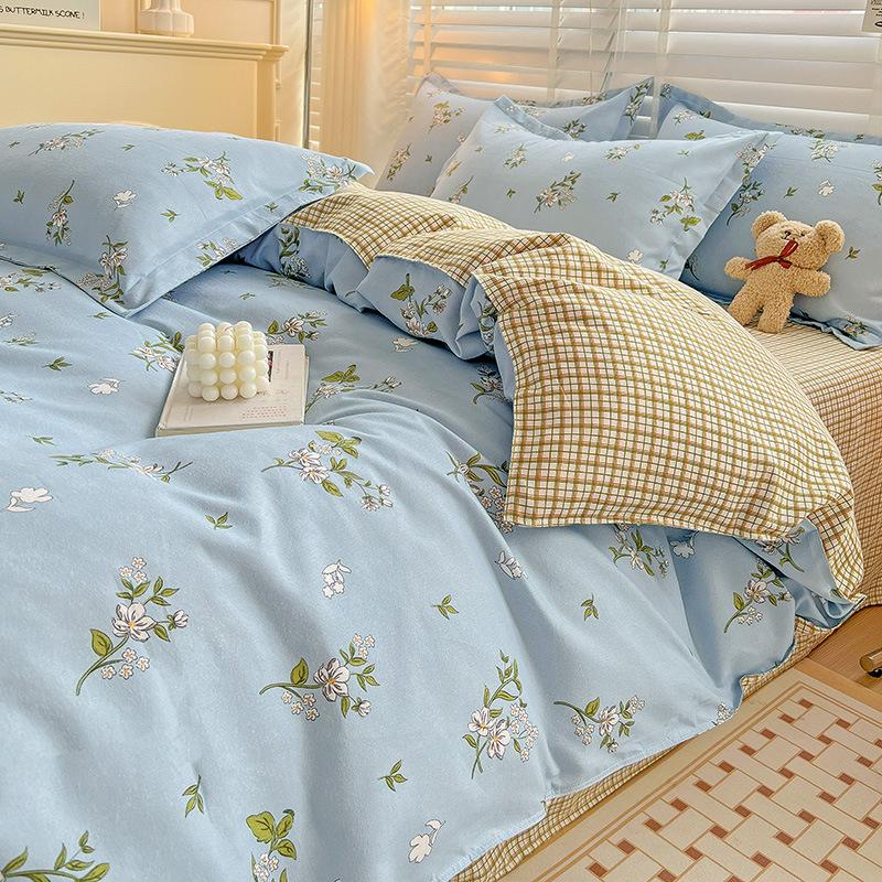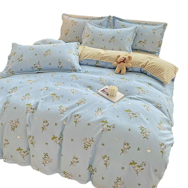 Juego de cuatro piezas pequeño y fresco de algodón puro cepillado, sábanas y fundas de edredón de algodón lavado engrosado, juego de cama de tres piezas para dormitorio