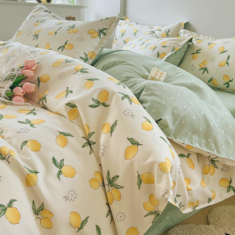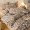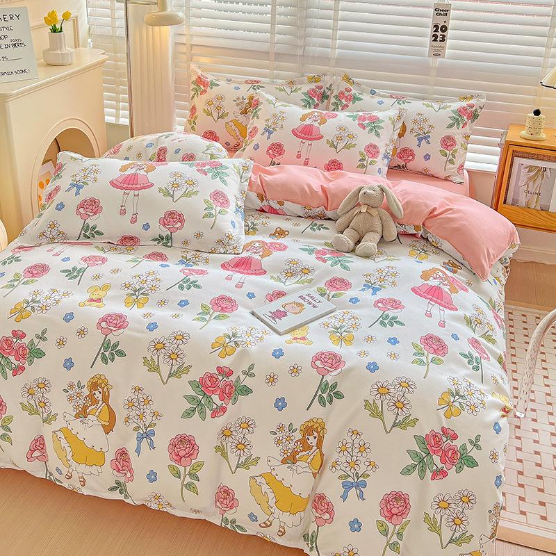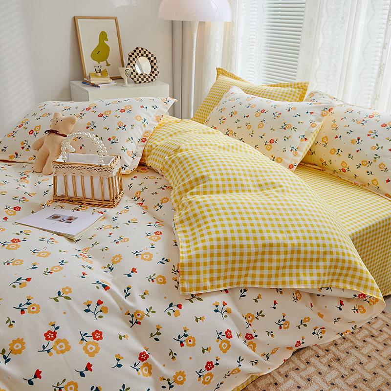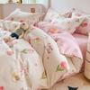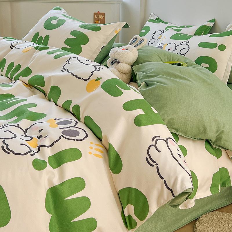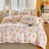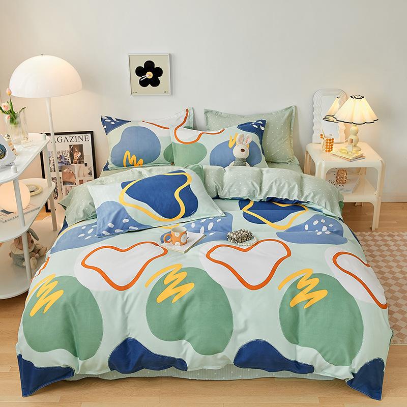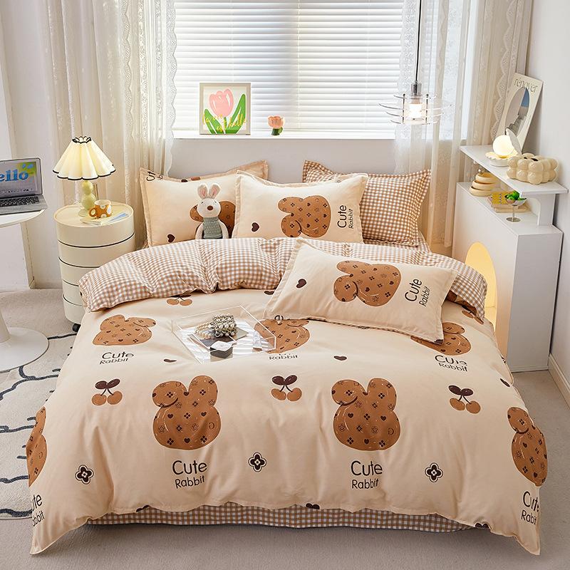 Juego de cuatro piezas pequeño y fresco de algodón puro cepillado, sábanas y fundas de edredón de algodón lavado engrosado, juego de cama de tres piezas para dormitorio