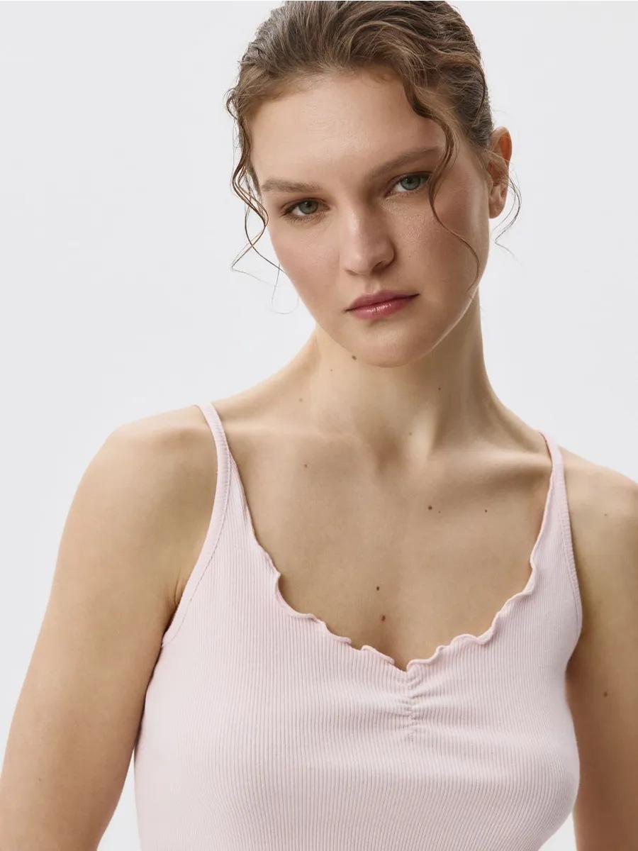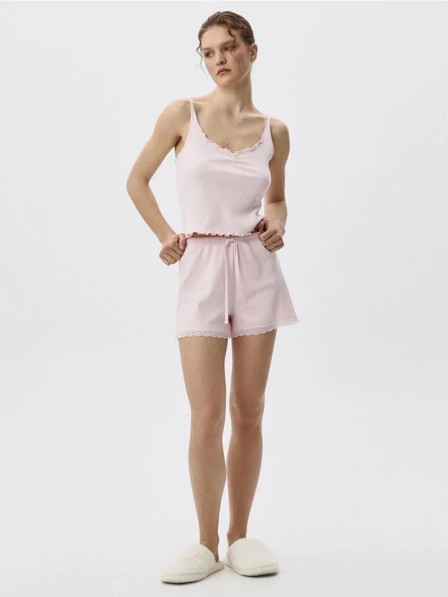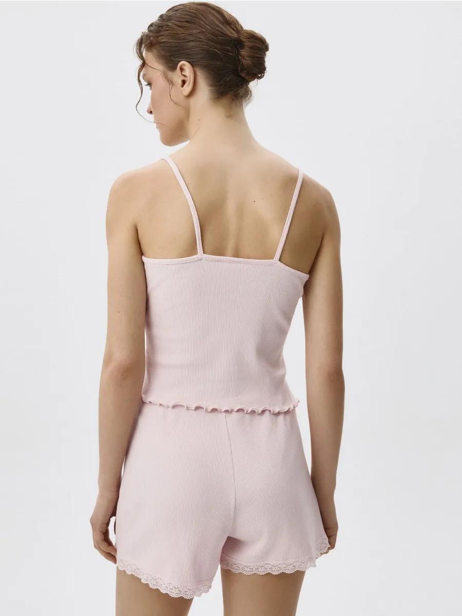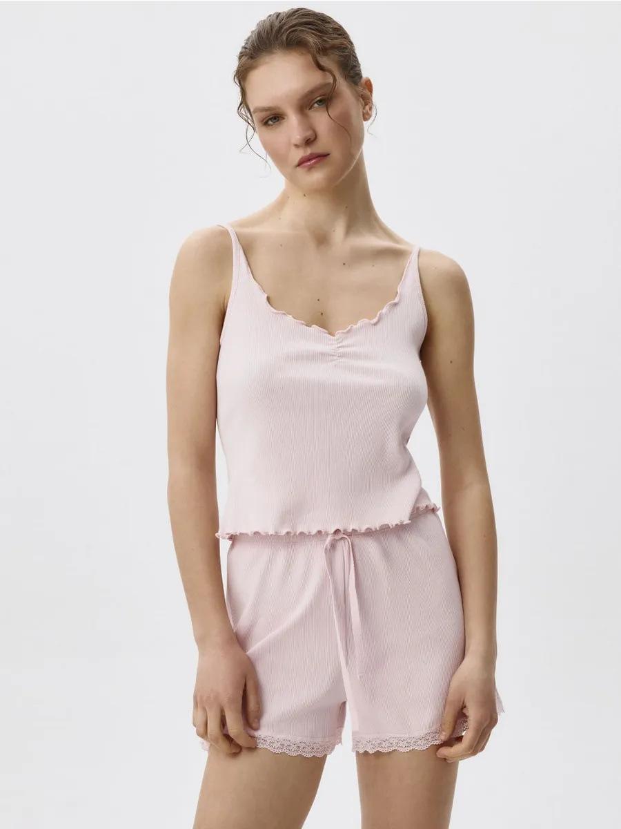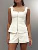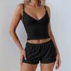 Camisola Corta para Mujer Primavera 2025 Nueva Color Sólido Ajuste Delgado Sin Mangas con Volantes Elegante Top y Shorts de Chica Caliente