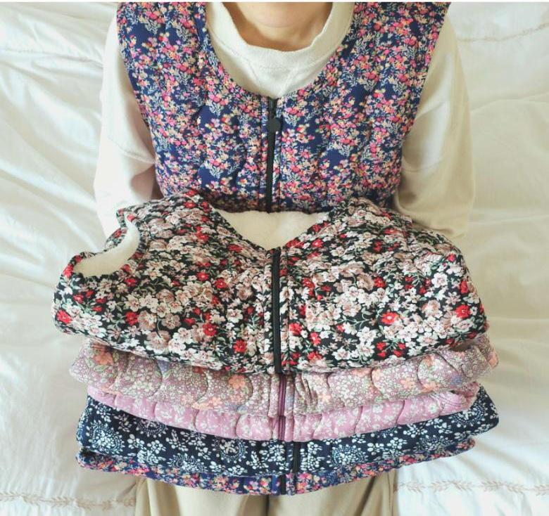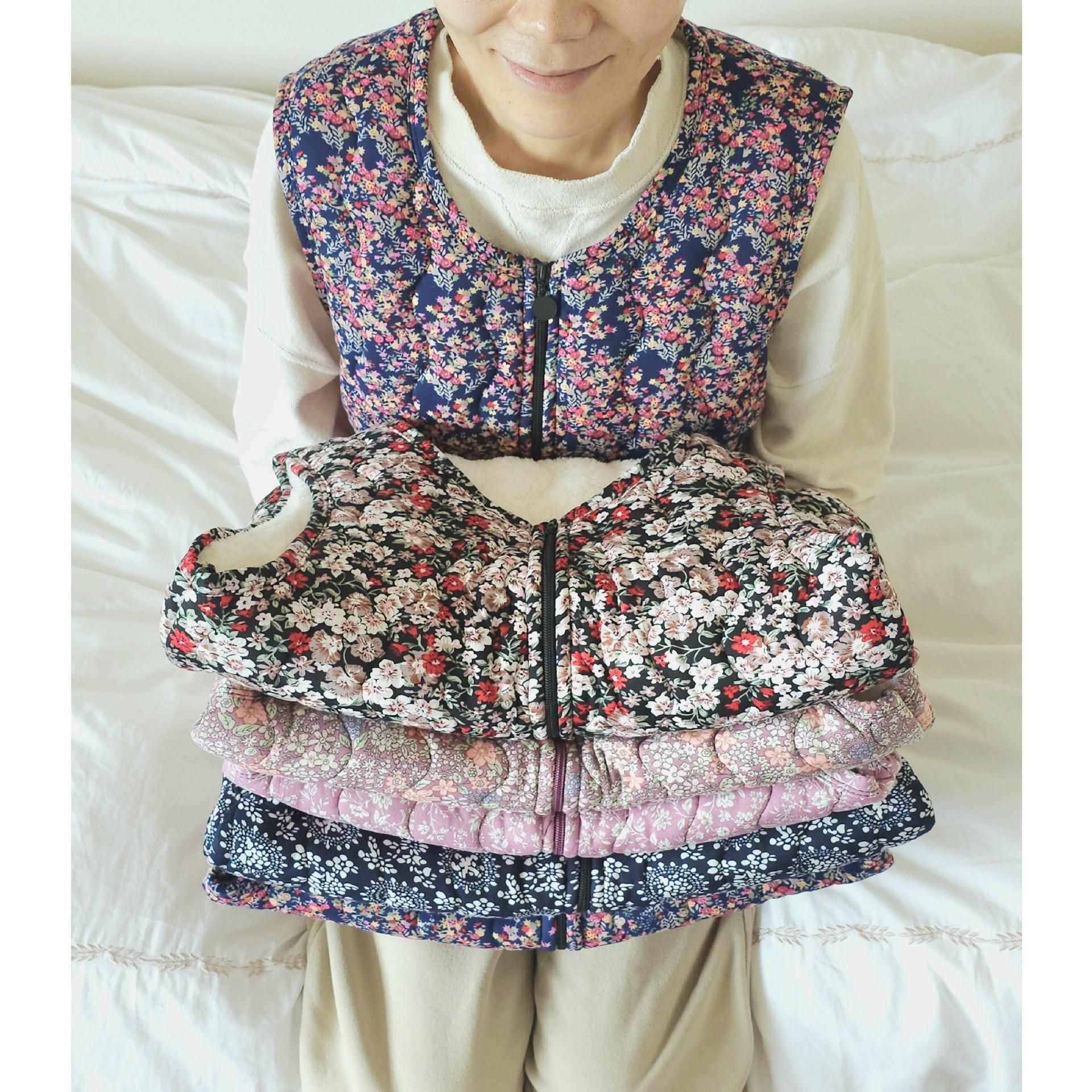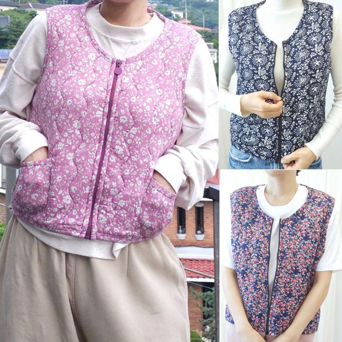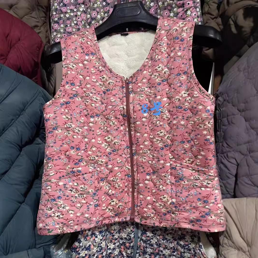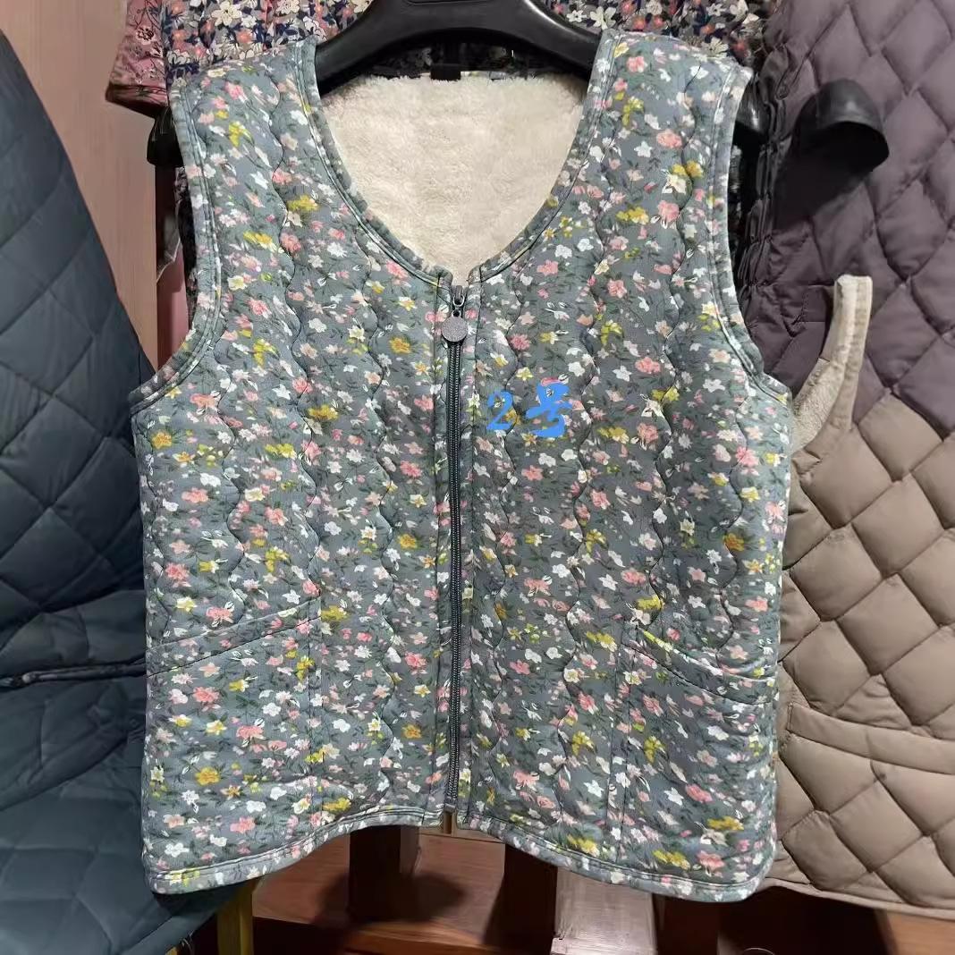 Chaleco Cálido para Madre Estilo Coreano para Edad Media y Adultos Mayores, Chaleco de Terciopelo Engrosado, Chaleco de Invierno para Mujer, Chaleco Floral con Cierre