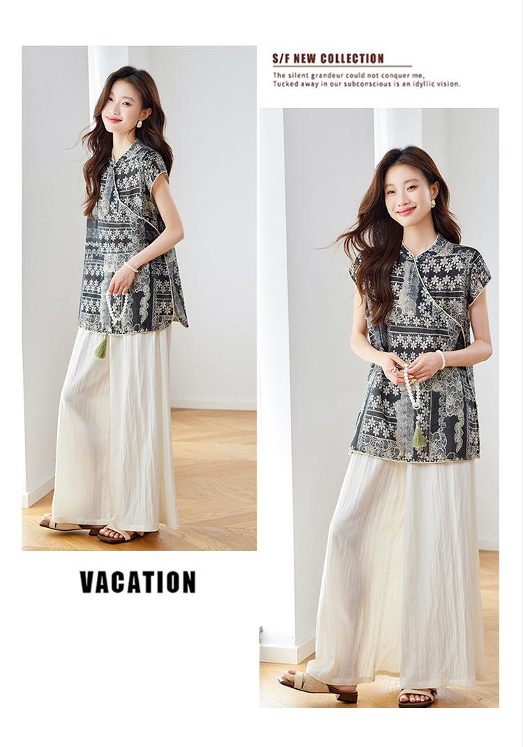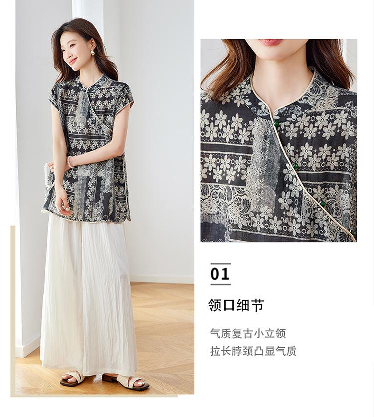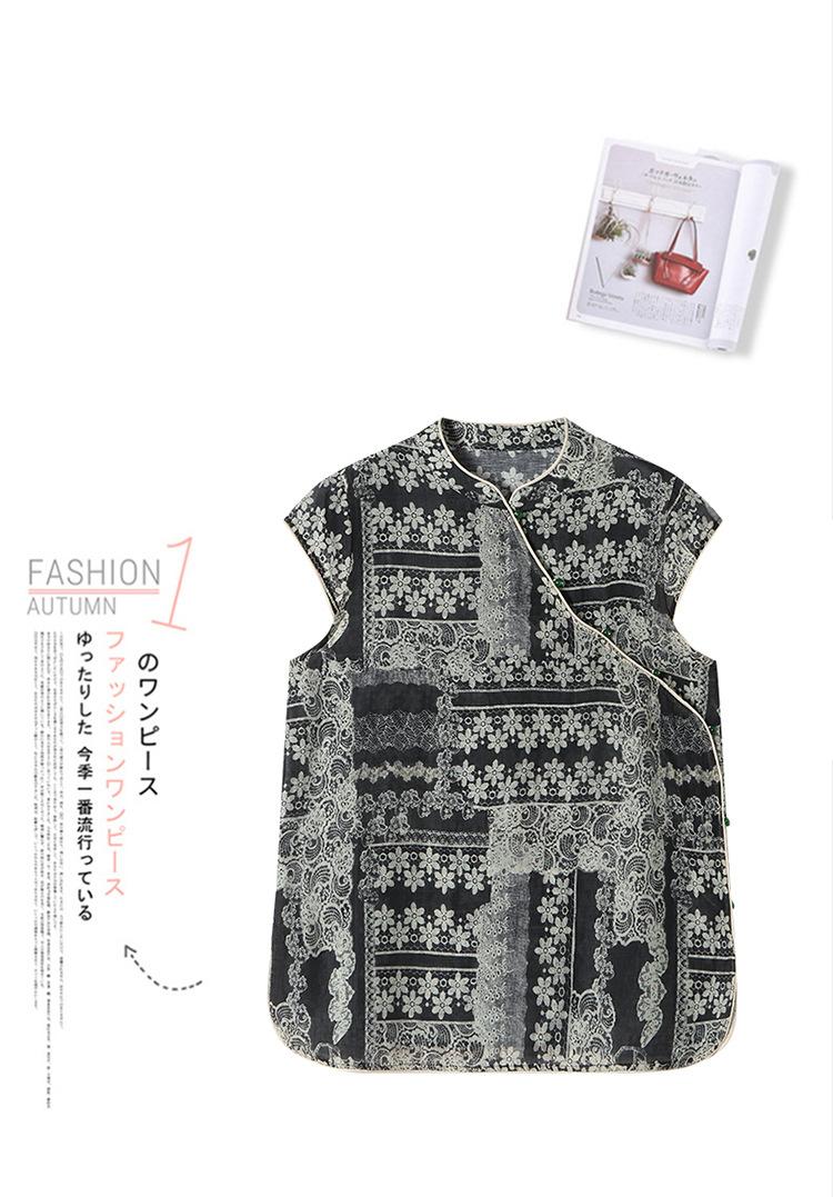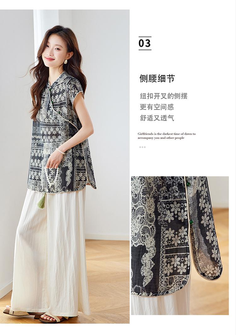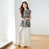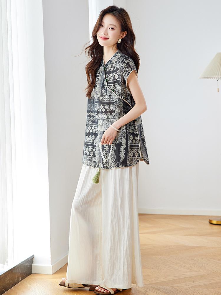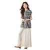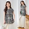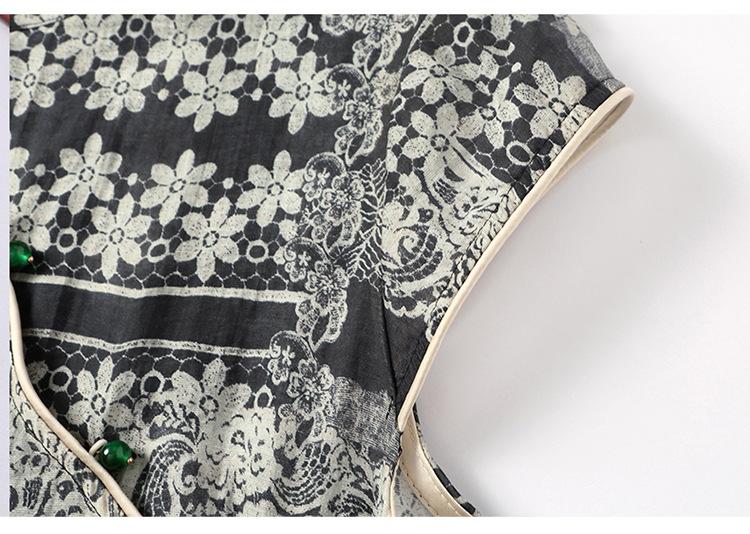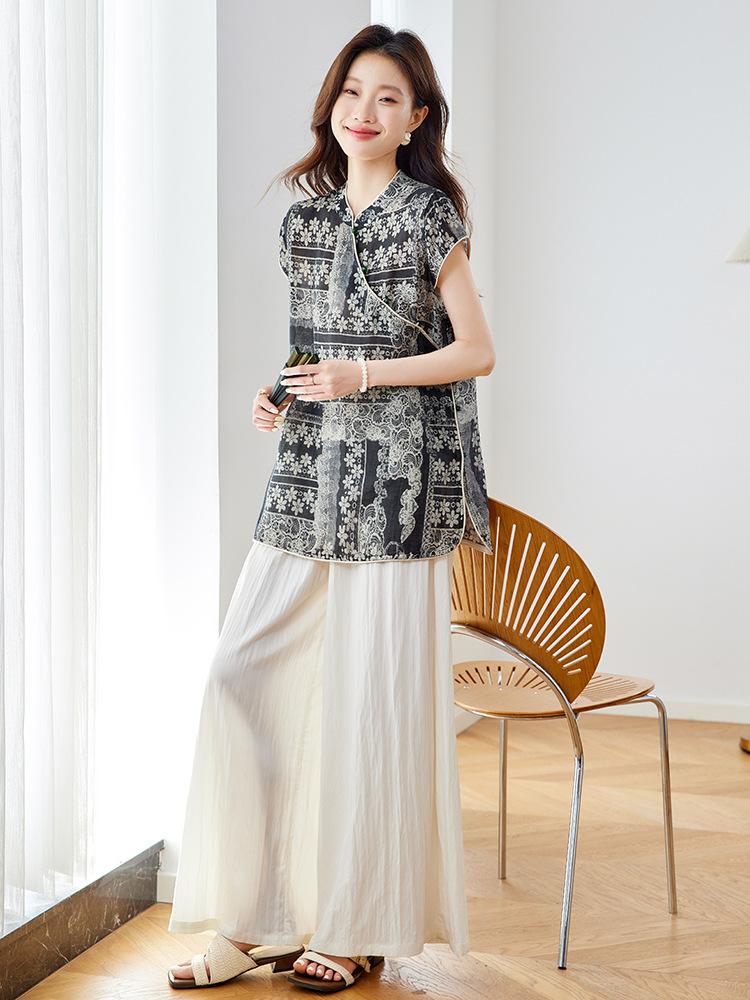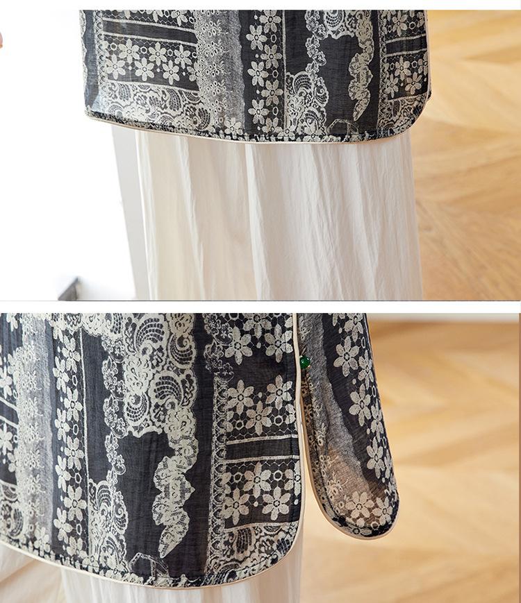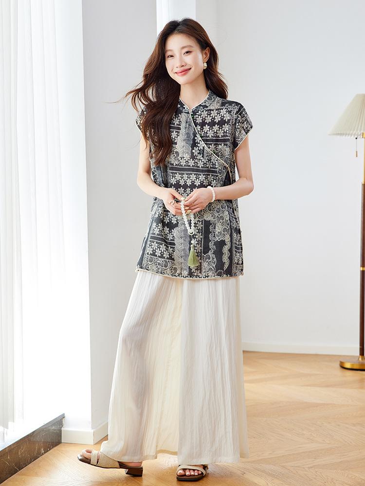 Traje de Estilo Nacional Nuevo 2025 Flor Negra Otro Dulce y Fresco Algodón Empalmado Traje de Falda Falda Midi